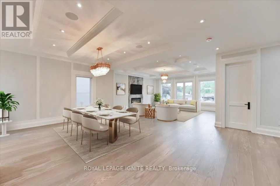 Sheppard/Don Mills/Shaughnessy Magnificent 3-Year-Old Estate Showcasing Architectural Elegance And Modern Functionality In Prestigious Bayview Village. Grand Living And Dining Areas Feature Custom Wall Paneling, Designer Coffered Ceilings, And A Sculptural Chandelier That Together Create A Striking Sense Of Sophistication. A Marble Fireplace Anchors The Formal Living Space, While The Open-Concept Dining Room Is Enhanced By A Backlit Feature Wall. The Designer Kitchen Is A masterpiece, Boasting Custom Cabinetry In Rich Contrasting Tones, Stone Countertops, And A Sculptural Waterfall Island With Breakfast Bar Seating. An Impeccably Designed, Timeless Floor Plan Offers Superior Craftsmanship And Quality Finishes Throughout. Expansive Windows And Skylights Flood The Home With Natural Light. The Gourmet Kitchen Includes A Spacious Breakfast Area And Premium Appliances. The Luxurious Primary Suite Features A Seven-Piece, Spa-Inspired Ensuite With Heated Marble Flooring. All Bedrooms Include Private Ensuites For Unparalleled Comfort And Privacy. Additional Highlights Include Pot Lights Throughout, And A Professionally Finished Walk-Up Basement Featuring 12-Foot Ceilings, Heated Marble Flooring, Two Bedrooms, Two Bathrooms, And A Separate Laundry Room Ideal For Multi-Generational Living Or Rental Potential. The Home Also Features Two Laundry Rooms, An Automated Sprinkler System, And Interlocking Stonework At Both The Front And Rear (id:27476)