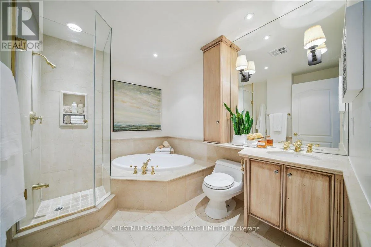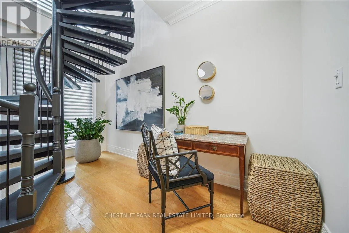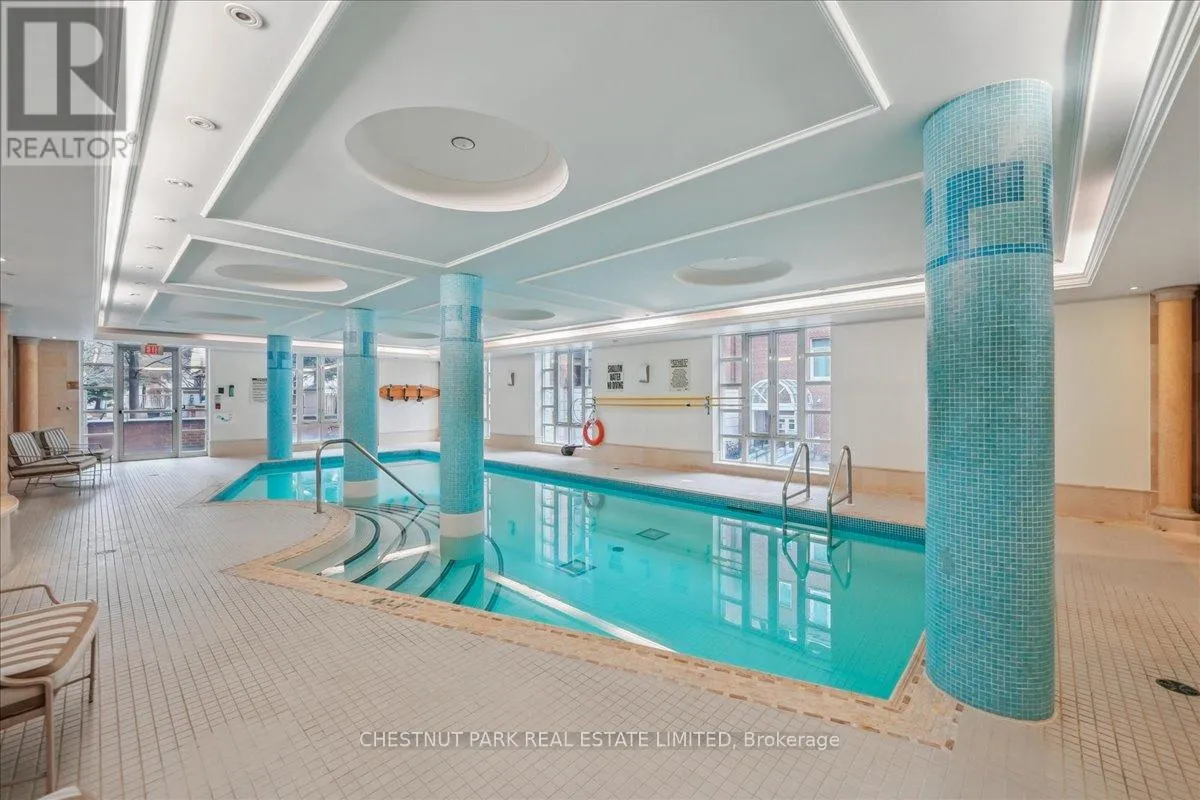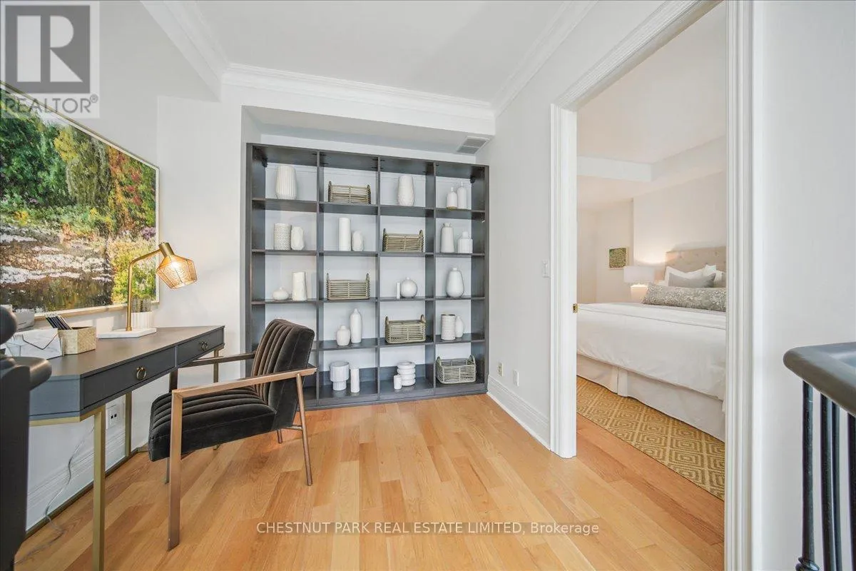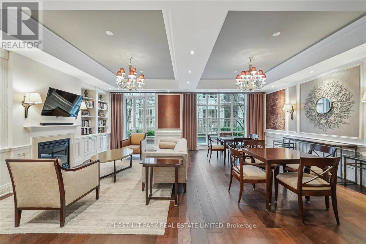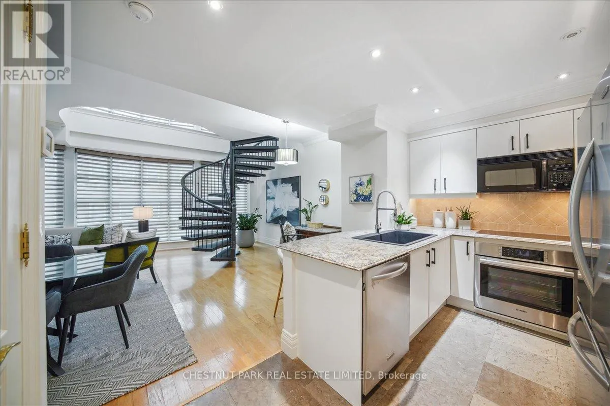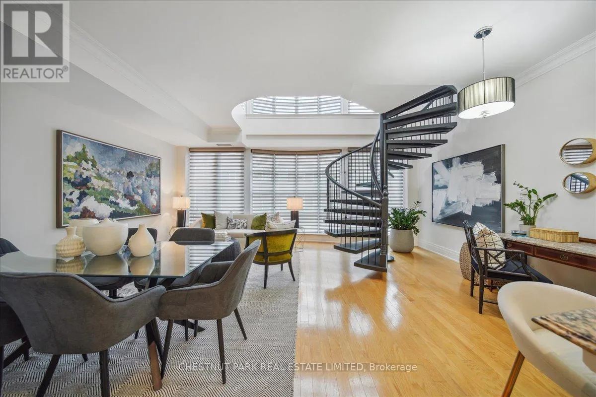 Yonge & St Clair Unbelievable value! Luxurious, rare, 2-storey 1-bedroom plus den in a distinguished boutique building. Midtown, Yonge and St. Clair, parking and locker. Incredible opportunity, dramatic and refined, this unique two-storey residence features 18 feet of floor-to-ceiling windows flooding the space with natural light. A sweeping circular staircase and gleaming hardwood floors set the tone for elegant urban living. The living room boasts 10 feet ceilings while the kitchen is equipped with granite counters, a full-size refrigerator, and a brand-new Bosch oven. Finishing off the main floor is a spacious powder room. An impressive primary bedroom offers a spa inspired ensuite with a deep tub and two closets-one walk-in, both with custom-fitted California closets. A built-in bookcase anchors the perfect work-at-home den. The suite has been freshly painted throughout and has automatic blinds for effortless comfort. Enjoy full-service 24-hour concierge and porter service, indoor pool, serene landscaped courtyard, inviting party room, and gym. 'The building's impressive limestone facade and grand circular drive add timeless curb appeal. Cable TV and internet are included in maintenance, and there's a convenient secondary suite entrance /exit from the 3rd floor. Pet-friendly, one dog (under 75 lbs.) or two cats permitted. (id:27476)