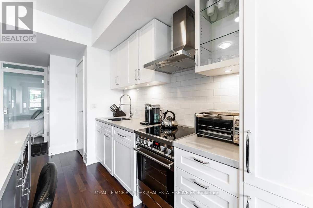 Cross Streets: Millwood Rd. ** Directions: Millwood Rd to Krawchuk Ln to Malcolm Rd. Welcome To The Upper House Luxury Boutique Building In The Heart Of Leaside! This Well Designed 2 Bedroom Suite Boasts 9' Ceilings, A Split Plan W/ Sun-Filled West Exposure & Walkout To Large Private Terrace W/ BBQ Gas Hook Up, Providing Over 750sq. ft of Living Space! Gourmet Kitchen Features A Large Centre Island, Lights Above, Stone Countertops & High-End Appliances. Master Bedroom With Double Closet Features A Spa-Inspired Ensuite. Just Installed All New Vinyl Flooring, Automated Window Blinds & Freshly Painted Throughout. Luxury Amenities: Concierge, Gym, Rooftop Terrace, Party Room, Guest Suites, Pet Spa, Bike Room & Visitor Parking. Superb Location With Easy Access To TTC, DVP, Walk To Leaside Arena With Amazing Indoor & Outdoor Pools, Restaurants, Multiple Stores Like Costco, Easy Access To Donlands & St. Clair Buses Steps From The Building. Highly Sought After School District. Locker & Parking spot included. Unit available fully furnished for $3,400. (id:27476)