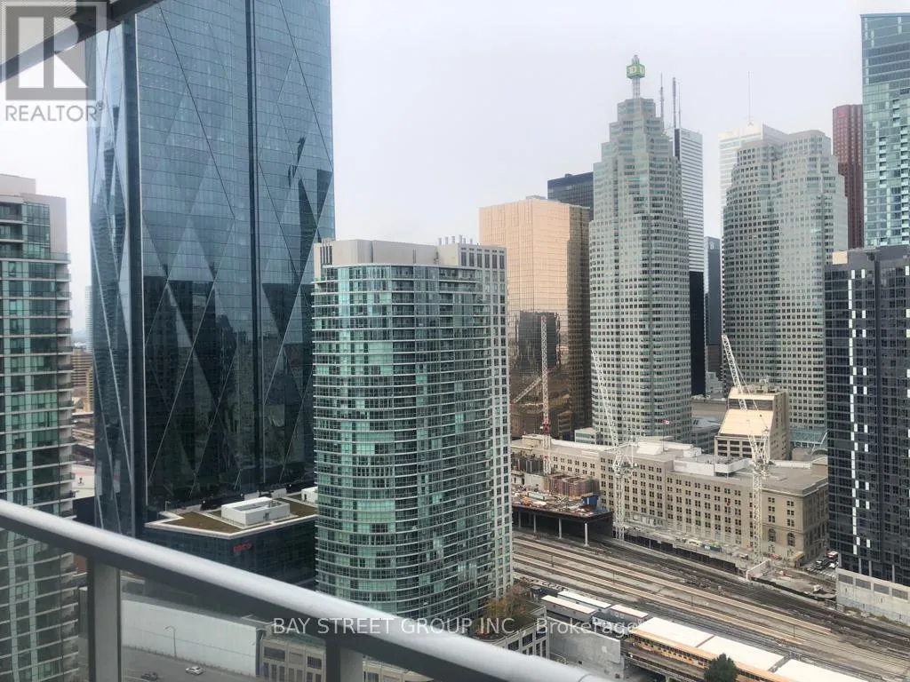 Cross Streets: Yonge St/Queens Quay E. ** Directions: Southeast of Harbour & Yonge. Experience luxury living in the heart of downtown Toronto at Prestige One Yonge. This stunning 1+1 bedroom condo offers 9-foot smooth ceilings, an open-concept layout, and laminate flooring throughout. Enjoy breathtaking Toronto skyline and lake views from both the living room and bedroom, or unwind on your spacious private balcony.Prime Location: Steps to Union Station, Gardiner Expressway, Financial & Entertainment Districts, top restaurants, and supermarkets. A community centre is conveniently located right next door. Building Features: 24-hour concierge for security and convenience; 3rd Floor: Gym, yoga studio, spin room, party room, study/business centre; 4th Floor: Outdoor walking track with exercise stations, dog run & pet wash station; 7th Floor: Lawn bowling & kids play area (id:27476)