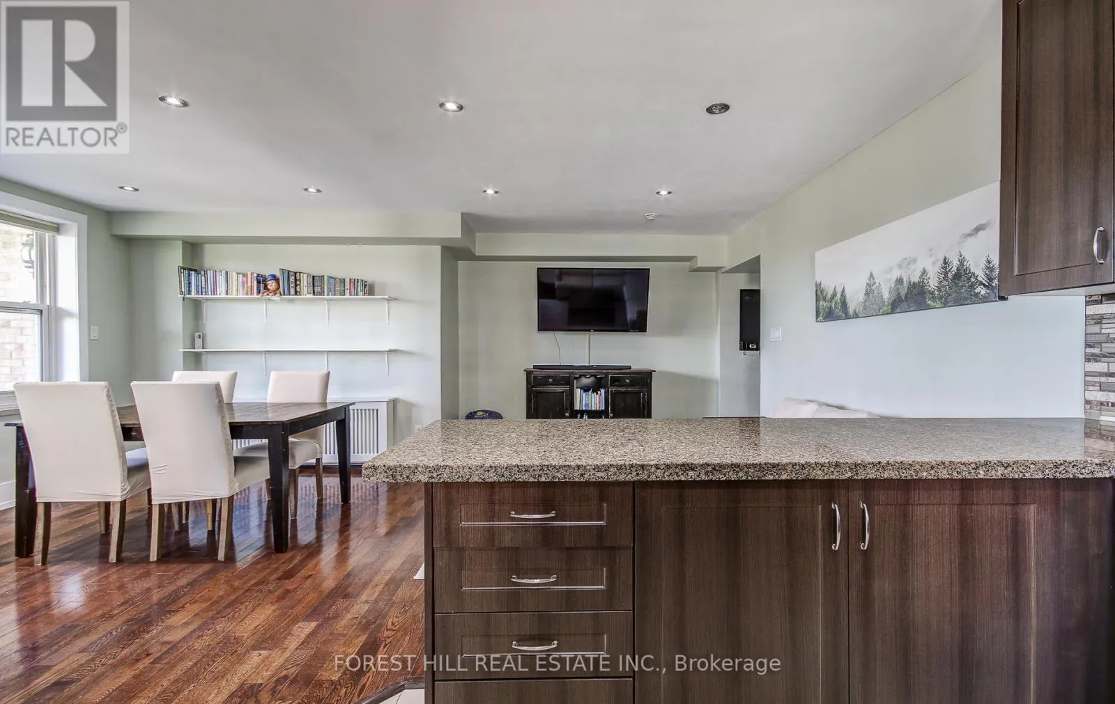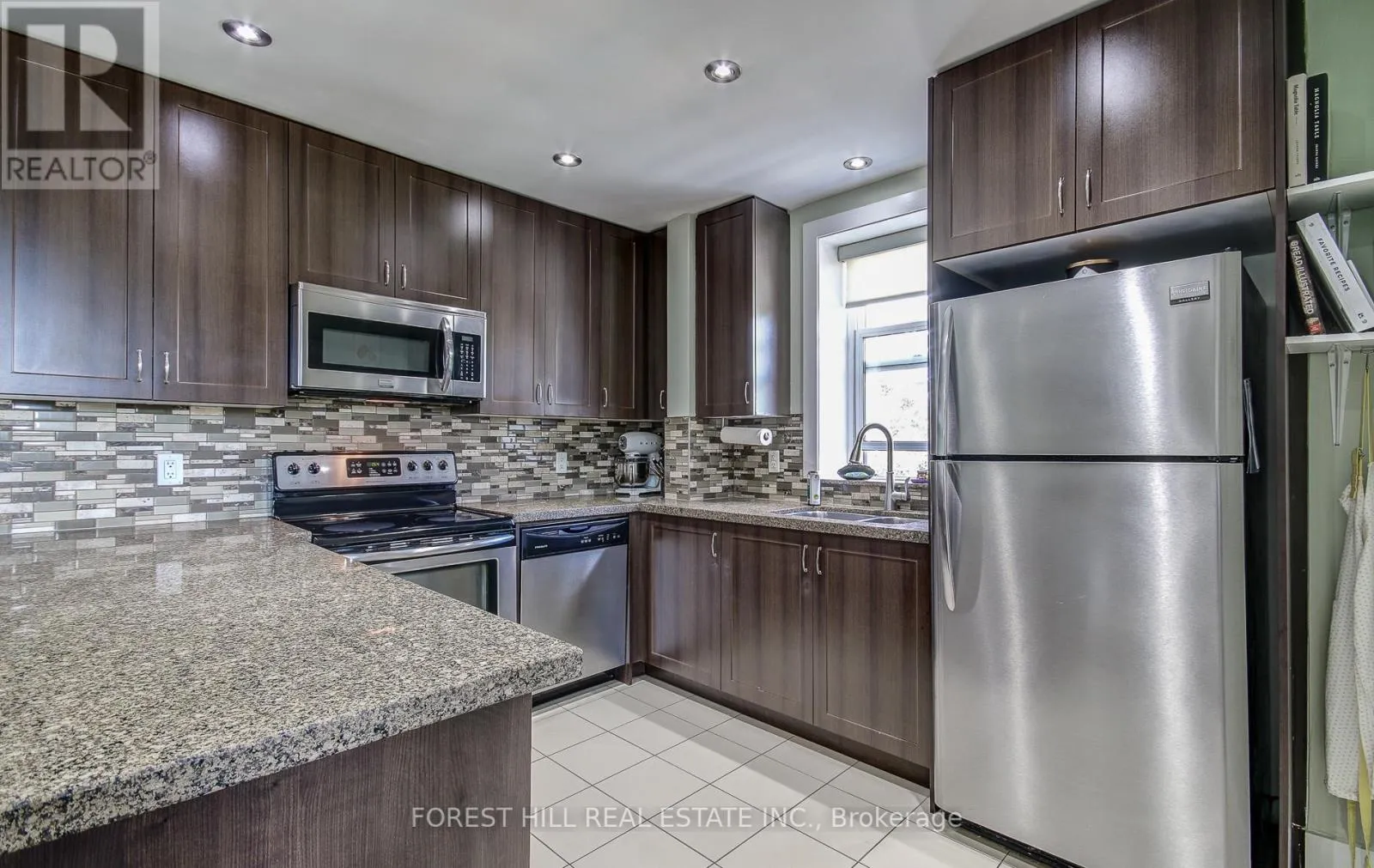 Bathurst/Briar Hill Welcome to The Courtyards of Upper Forest Hill a hidden gem offering refined boutique living in one of Torontos most coveted neighbourhoods. This one-of-a-kind two-bedroom suite boasts a thoughtfully designed floor plan that seamlessly blends comfort, sophistication, and functionality. Nestled within an intimate, well-managed building of just 63 residences, this exceptional corner unit provides a rare sense of privacy and tranquility in an urban setting. The bright and inviting interior is bathed in natural light from oversized windows, highlighting the open-concept living and dining area. The living room offers a walk-out to a large private terrace, creating an effortless indoor-outdoor flow perfect for relaxing mornings, summer cocktails, or quiet evenings under the stars. The elegant kitchen features stainless steel appliances, stone countertops, an under-mount double sink, espresso cabinetry, and a stylish backsplash, combining modern design with everyday practicality. Hardwood floors throughout lend warmth and continuity, while the units unique layout provides distinct living zones ideal for both entertaining and relaxation. Residents of this charming boutique building enjoy timeless architecture, quality construction, and a strong sense of community. Perfectly positioned in Forest Hill North, this address offers unmatched convenience steps from Memorial Park, Larry Grossman Arena, Cortleigh Parkette, and minutes from the vibrant Eglinton corridor. Enjoy nearby cafés, shops, and restaurants, with the new LRT and public transit at your doorstep for effortless commuting. Opportunities like this are exceedingly rare. Experience the elegance, exclusivity, and timeless appeal of boutique living in Upper Forest Hill where every detail reflects comfort, character, and class. (id:27476)