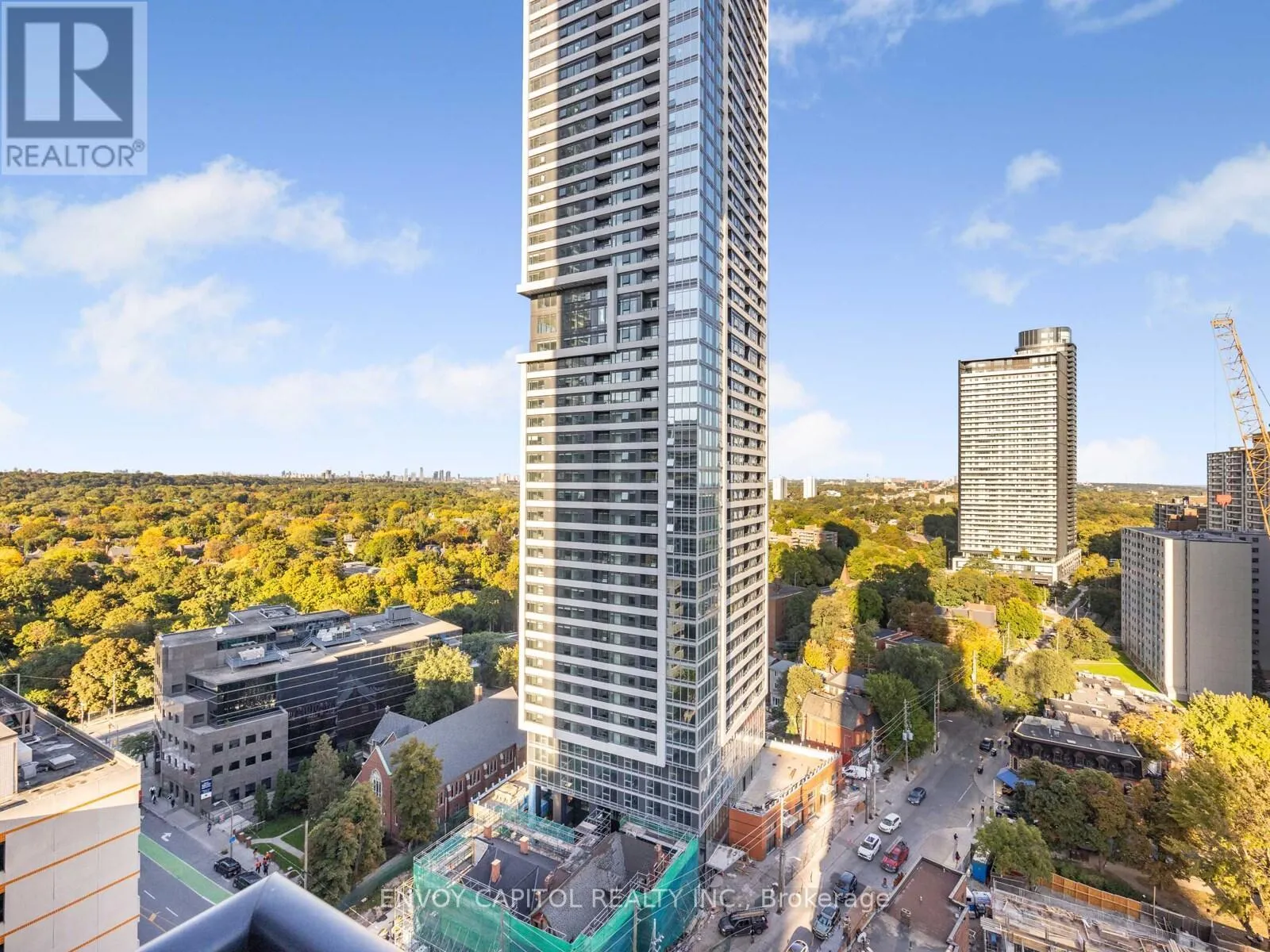 Cross Streets: sherbourne and bloor. ** Directions: From Bloor St. go south on Huntley St. and east on Linden St. Located in the prestigious James Cooper Mansion by Tridel, this bright 2-bedroom corner suite offers 828 sq. ft. of living space plus a 96 sq. ft. double balcony with unobstructed city views. The open-concept layout features 9-ft ceilings and granite counters, breakfast bar, and stainless steel appliances. The spacious primary bedroom includes a walk-in closet and a private ensuite, while the generous second bedroom showcases unobstructed views. The ensuite washroom has upgraded glass shower doors and new shower tiling (2025). Both bedrooms have custom black-out curtains. Laundry machines are upgraded (2022). Exceptional building amenities include a fitness centre, party lounge, visitor parking and 24-hr concierge. The Condo is located steps to Sherbourne Station, Bloor shops, Yorkville, and minutes to the DVP. (id:27476)