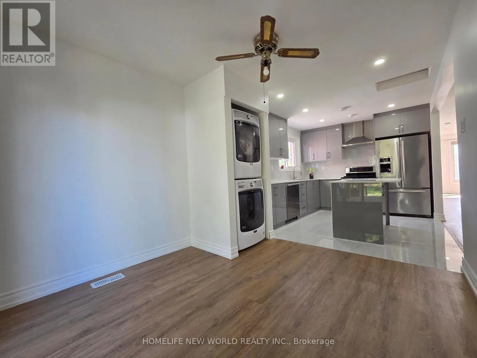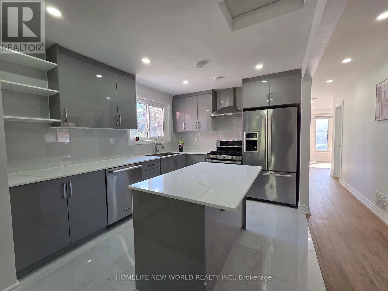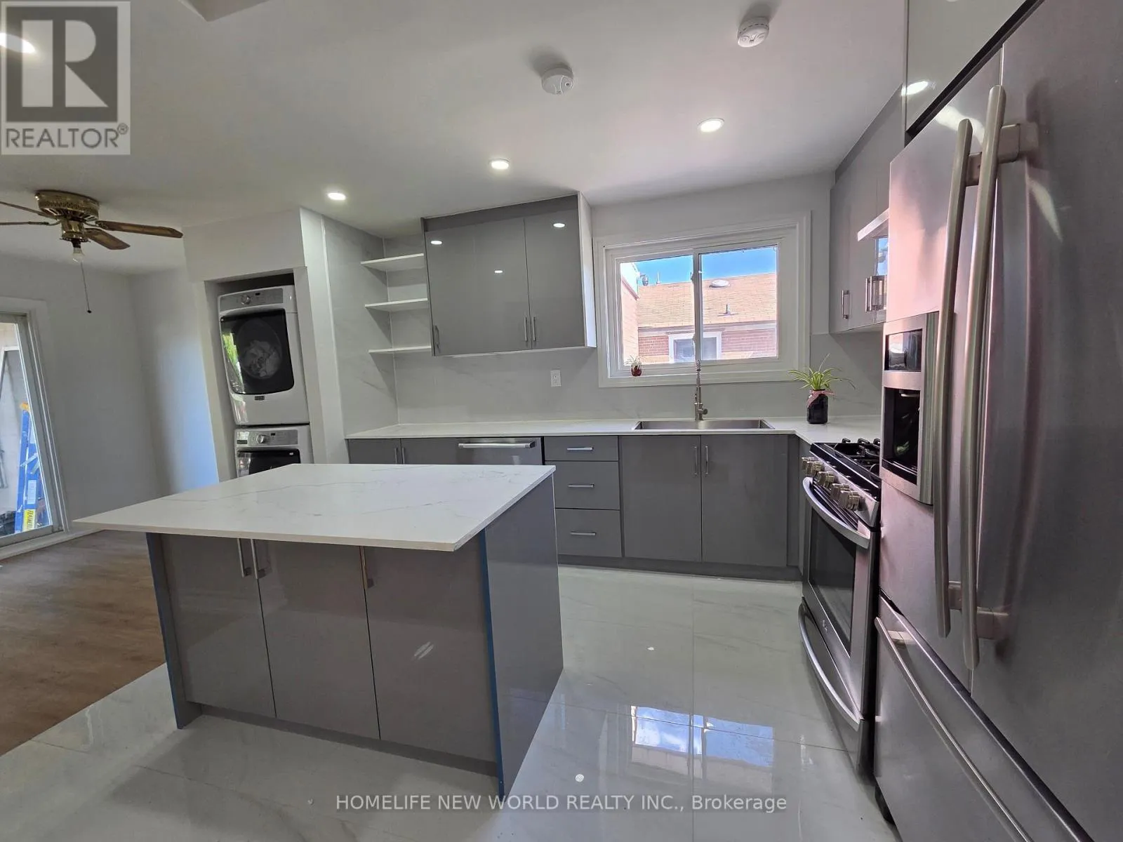 Cross Streets: Finch Ave/Kipling Ave. ** Directions: . Located in a quiet, family-oriented neighborhood with unbeatable convenience and access to everything you need. Main Floor Features: 3 spacious bedrooms with large windows and plenty of natural light, 1 full bathroom with modern stand-up shower, 1 powder room (2-piece), Brand new open-concept kitchen & dining area featuring: Gas range stove, Stainless steel appliances, Sliding glass door to a private wooden deck and backyard, Bright and airy living room with oversized windows, New pot lights throughout, Commercial-grade washer & dryer, Fire-rated door separating the lower unit for privacy and safety, Freshly renovated, all-white modern interiorAmazing Location: Quiet, family-friendly neighborhood, Walking distance to Islington & Finch TTC streetcar, Quick access to Highways 401, 400, 407, and 7, Near Humber College & Humber River Hospital, Close to top shopping and amenities: Albion Mall Plaza, Fortinos, No Frills, Walmart, Sunny Foodmart, Costco, Canadian Tire, Home Depot, Cinemas, restaurants, and more, Steps from parks, Humber trails, schools, and financial institutionsTenant pays 50% of utilities (hydro, Gas, Water) (id:27476)
