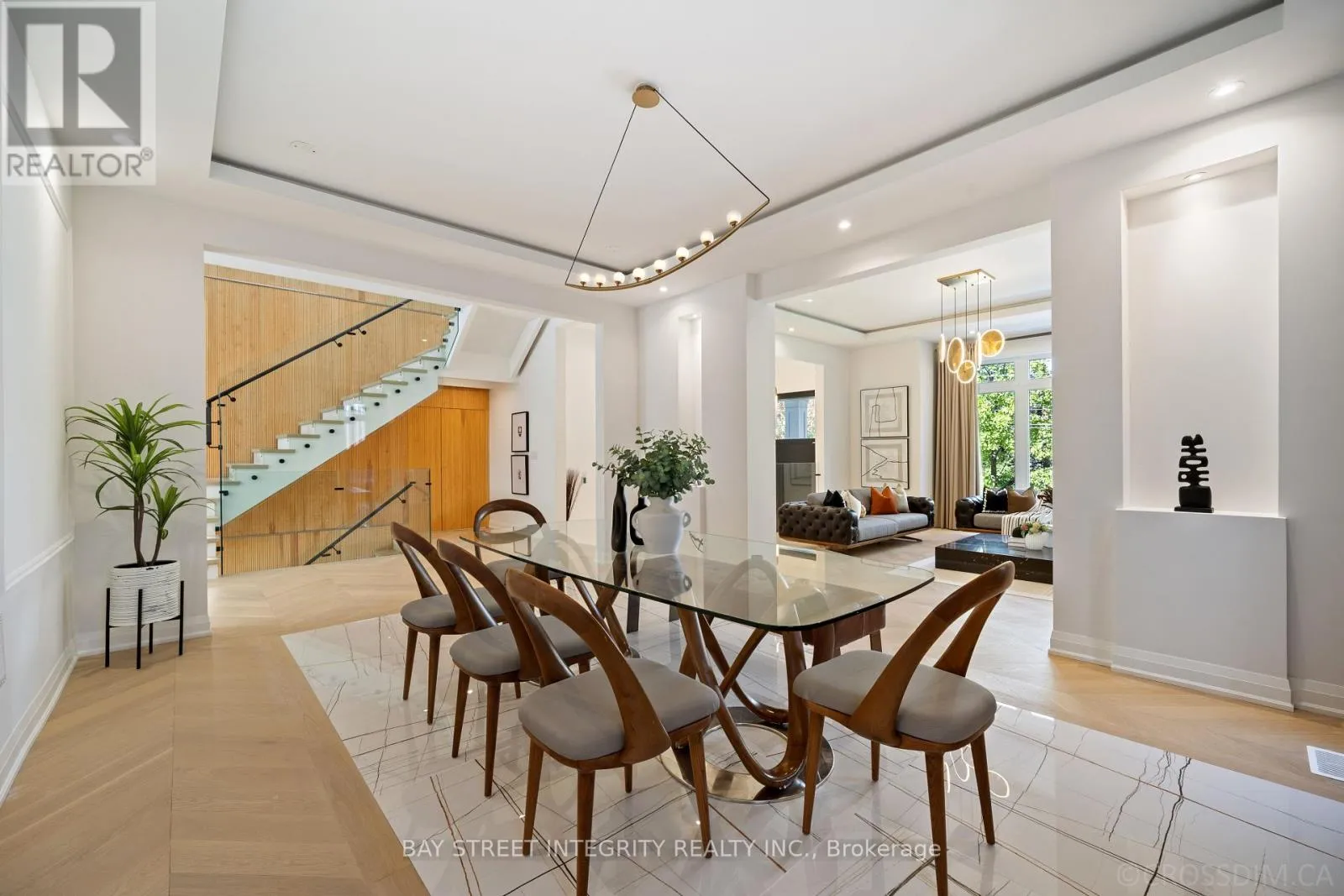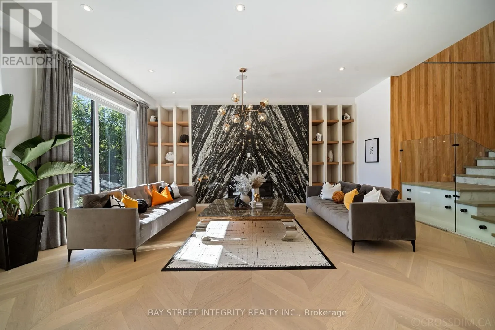 Cross Streets: Yonge and Sheppard Ave west. ** Directions: West of Yonge Street. Exceptional custom luxury home featuring 4+1 bedrooms and 7 bathrooms on a rare 50*300 ft lot in prestigious Willowdale West, just steps to Yonge Street. This masterpiece offers approx 10 ft ceilings on the main, second, and basement levels, with a striking 14 ft ceiling in the office. The main floor features elegant chevron-patterned hardwood, a grand foyer with electrically heated tile, and an open-concept living area filled with natural light. The chefs kitchen showcases Wolf appliances, a Sub-Zero fridge, a stunning quartz waterfall central island, and fully customized cabinetry. The primary suite boasts a walk-in closet with custom built-ins and skylight, plus a spa-inspired ensuite. Each of the three additional bedrooms includes its own ensuite and built-in closet for privacy and comfort. The basement features hydronic heated floors, a nannys room with separate entry and ensuite, and large recreation areas. Walk out to a two-tier wood patio leading to a sparkling pool in an oasis-like private backyard, perfect for family gatherings and entertaining. Equipped with HRV system and two sets of furnaces for optimal climate control. Easy commute via Hwy 401, TTC, and nearby subway stations. Only 4 minutes to Claude Watson School for the Arts, and close to top-ranked schools, parks, and urban conveniences. Exceptional craftsmanship and meticulous attention to detail throughout. (id:27476)