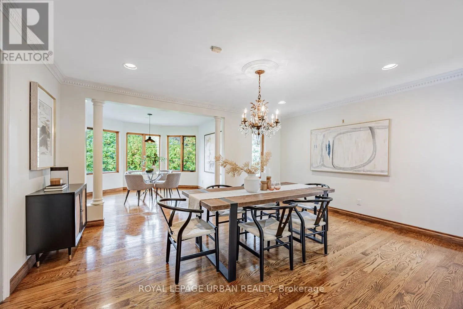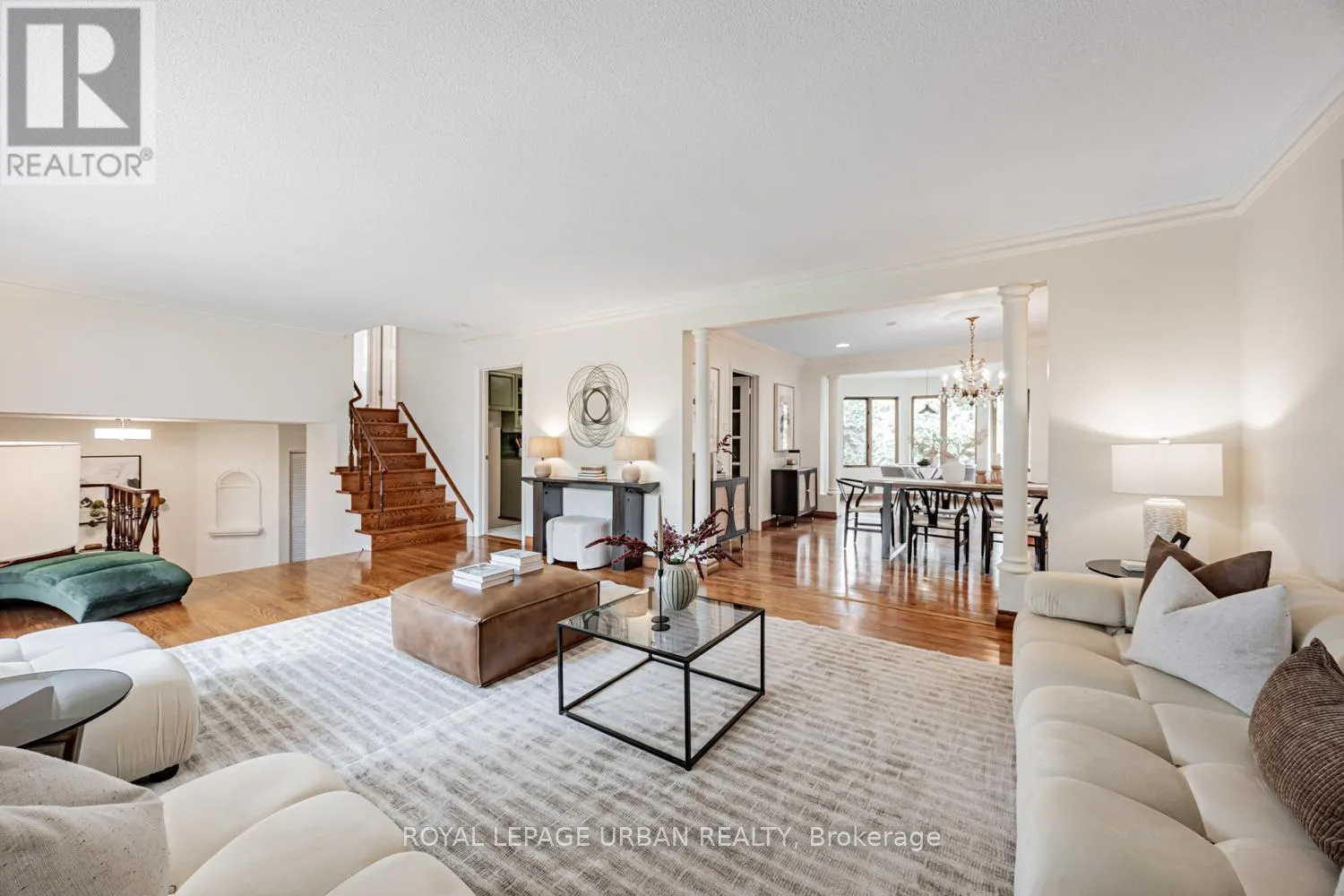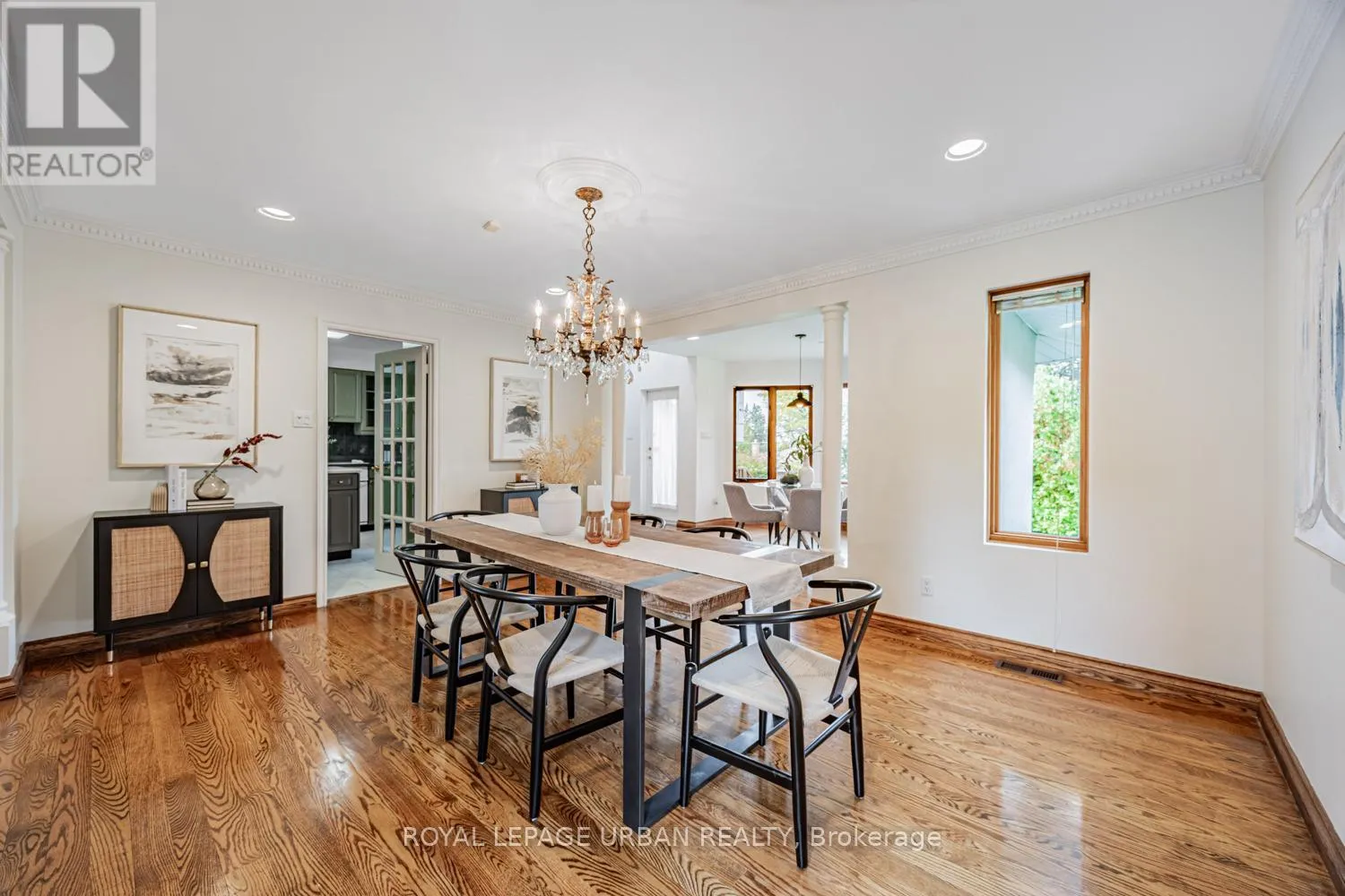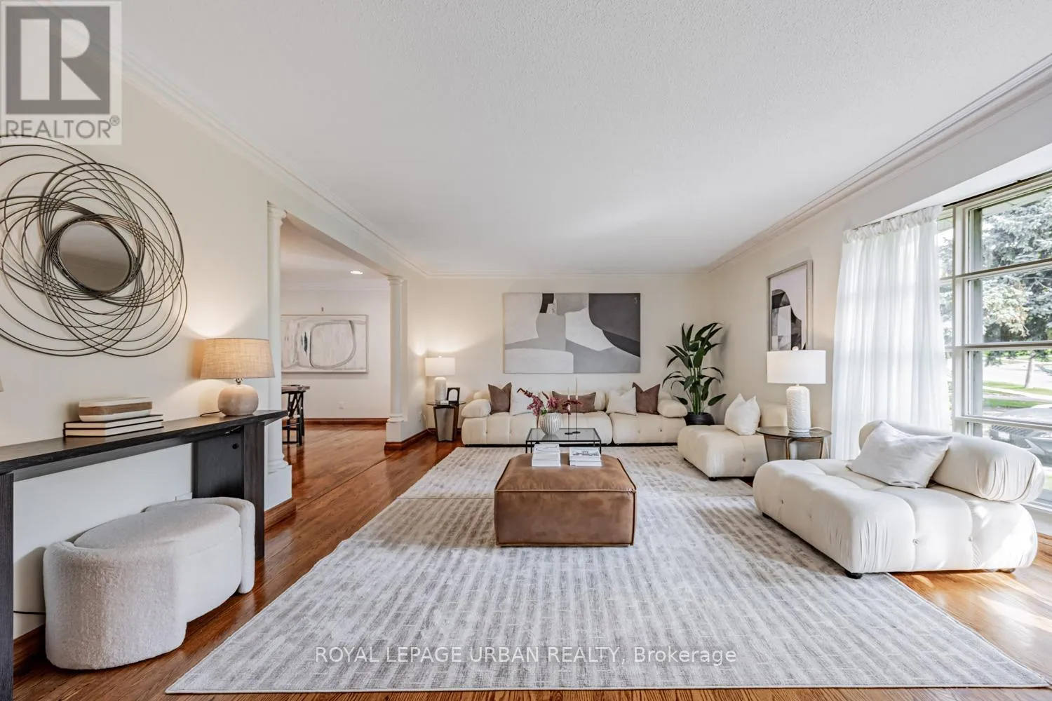 Eglinton Ave E & Sloane Ave Bright, Spacious, And Oh So Gracious. Discover This Distinctive, Architecturally Expanded Family Residence Offering Nearly 3,900 Sq Ft Of Refined Living Space On A Generous Lot In Victoria Village. Thoughtfully Extended And Lovingly Maintained By The Same Family For Over 50 Years, This Home Blends Modern Livability With Enduring Design. A Double Door Entry Opens To A Sunlit Foyer And Welcomes You Into Expansive Principal Rooms. Natural Light Pours Through Skylights And Large Windows, Showcasing Dramatic Ceiling Heights, Crown Mouldings, And Rich Oak Hardwood Floors. The Living And Dining Rooms Flow Effortlessly For Entertaining Or Family Gatherings. The Bright, Functional Kitchen Features Built In Appliances, A Large Pantry, And A Breakfast Nook Overlooking The Lush Backyard, Ready To Enjoy Now Or Refresh In Your Own Style.The Main Floor Family Room, Anchored By A Gas Fireplace, Opens To The Patio And Garden For Seamless Indoor Outdoor Living. Upstairs, The Primary Suite Offers A Five Piece Ensuite With Jacuzzi Tub, Double Sinks, His And Hers Closets, And A Juliette Balcony. Three Additional Bedrooms Share A Renovated Four Piece Bath With Skylight. The Fully Finished Lower Level Extends The Living Space With A Bright Recreation Room, Private Office With Three Piece Ensuite, And Abundant Cedar Lined Storage. Multiple Entrances To The Home Provide Flexibility, Including Side And Garage Access. Cherished By One Family Since 1972, This Home Reflects True Pride Of Ownership And Craftsmanship Throughout. Updated Bathrooms, LED Pot Lights, Central Air, Central Vacuum, Security System, Cameras, And Ring Doorbell Offer Modern Comforts. Built In Garage With Shelving And Private Interlocked Driveway With Parking For Up To Seven Cars. Steps To Parks, Schools, Shopping, And The Upcoming Eglinton LRT. A Home Of Substance, Heart, And Promise, Ready For Its Next Chapter. (id:27476)