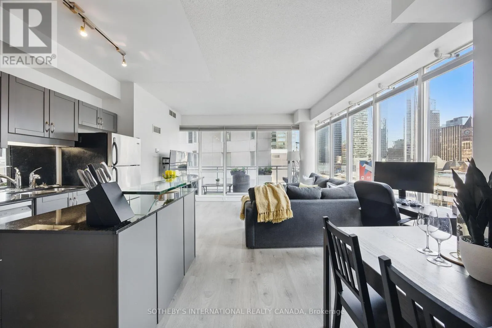 Cross Streets: Victoria St and Shuter St. ** Directions: Use GPS for directions. Sophisticated Corner Suite Offering Elegance in the Heart of Downtown - Welcome to Unit 1307 at 220 Victoria, The Opus at Pantages. Experience a rare opportunity to live in a corner suite that seamlessly combines elegance, natural light, and refined urban living. This 2+1-bedroom, 2-bath home spans 1,069 sq. ft. of thoughtfully designed space and features a 137 sq. ft. balcony with stunning southwest city views. Floor-to-ceiling windows fill every room with natural light and highlight the open-concept living and dining areas, perfect for effortless entertaining or enjoying peaceful evenings at home. The modern kitchen is beautifully equipped with full-sized stainless steel appliances. The versatile den can be used as a home office or a cozy guest retreat. Recently painted and meticulously maintained, the suite offers excellent layout flexibility, two full bathrooms, an owned parking spot, and the convenience of all utilities included. Located within a safe, secure, and boutique-style building, residents enjoy a 24-hour concierge, a recently renovated rooftop terrace with BBQ and breathtaking Toronto views, a stylish party room with a kitchen, games, media and meeting rooms, and visitor parking. Friendly neighbours and a welcoming community atmosphere make this building a private oasis in the heart of downtown. Just steps from the Eaton Centre, Sankofa Square, world-class theatres, renowned restaurants, hospitals, TMU, and TTC access, Unit 1307 presents a unique opportunity to embrace downtown living with sophistication, style, and unmatched convenience. Every detail in this home reflects thoughtful design and urban elegance, offering a lifestyle that is both vibrant and peaceful, private yet connected to the best of Toronto. (id:27476)