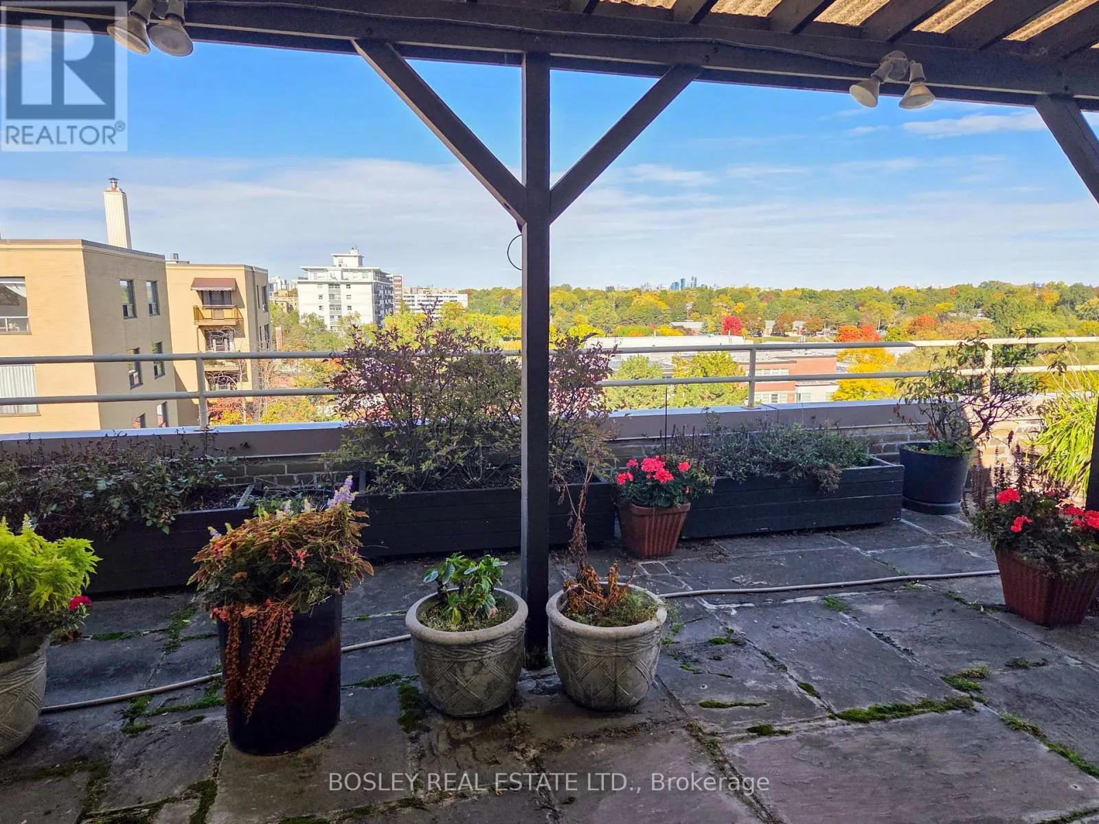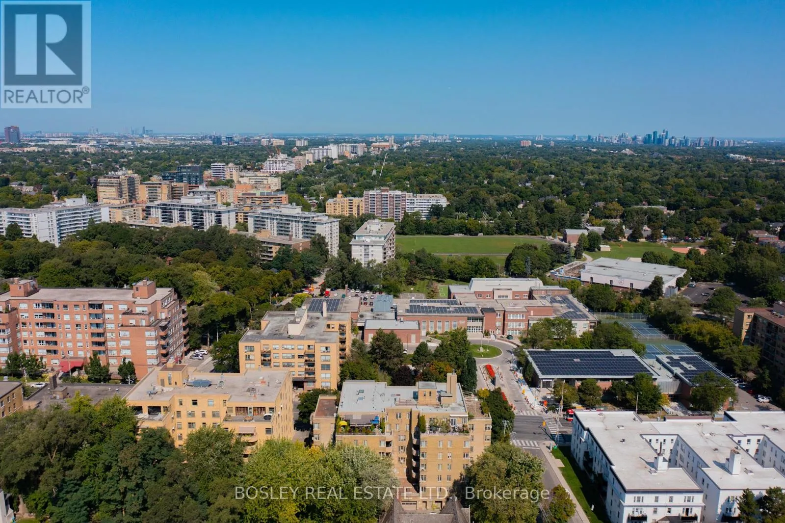 Old Forest Hill Rd & Vesta Dr WELCOME TO THE ROYCROFT! In the last years of the Art Deco period, prominent Architect John Edward Hoare designed The Roycroft (1939). A New York style co-ownership Art Deco building at Eglinton & Old Forest Hill Rd. The minute you step into the lobby you know this isn't just any building. The elevator requires you to "open the door when the light comes on". This Art Deco treasured Penthouse is a corner suite (only 4 PHs) nearly 1200 SF of interior living space with an expansive open concept living & dining area, oversized windows & walk-out to a splendid 653 SF terrace overlooking a canopy of Forest Hill homes, parks and our City's skyline, it's breathtaking! The separate kitchen is tucked to one side with lots of natural light thx to the skylight. See rendered photos of possible open concept for kit & dining rm. The oversized primary bdrm boasts a large window w/beautiful view over the top of majestic Forest Hill homes. The 2nd bdrm is also a good size with wall-to-wall closets. This room was used as dual purpose home office/bdrm with lots of built-in bookshelves. The Roycroft is a short walk to the shops, services & restos of "Theeglintonway.com". The soon to be Chaplin subway station is a 5 min walk down the street & there's a bus right at the front door. Financing is more readily available for co-ownerships than co-ops see attached reference material. The monthly maintenance fees cover all utilities including cable/internet as well as property taxes. This suite comes with a parking & locker. These large PH suites rarely come on the market and the buyer for this incredible piece of history may want to renovate it while maintaining the integrity of its art deco charm or go with a custom decor. This property is sold in "As Is" condition. (id:27476)