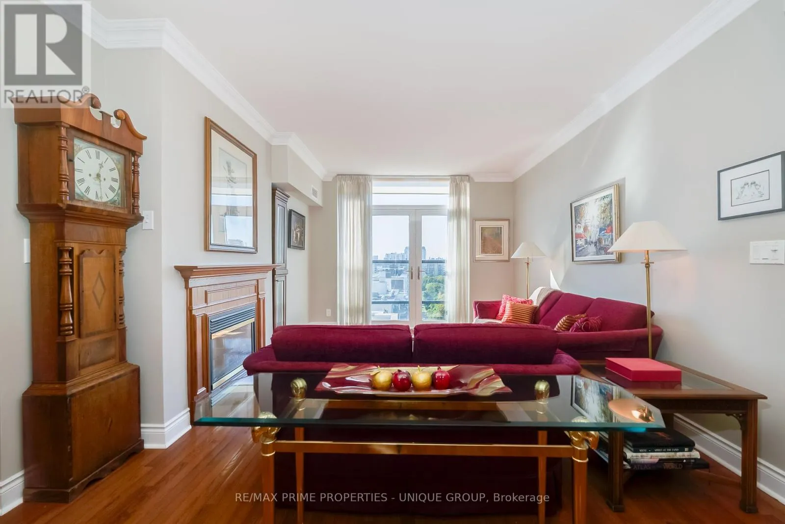 West of Yonge St/North of St Clair Av Luxury living at the heart of Yonge and St Clair. This sun-filled suite offers 1,277 sq ft of thoughtfully designed space with high smooth ceilings, hardwood flooring and spectacular unobstructed west views from every window. The L-shaped Living and Dining Room layout provides plenty of space for house-sized furniture. Enjoy the comfort of a gas fireplace in the cooler months and throw open the Juliette balcony doors to welcome the outside in during the warmer months. The kitchen has ample working space, added cupboards and a lovely eat-in area by the window. The spacious primary bedroom features a walk-in closet and a spa-inspired 5-piece ensuite. A second bedroom comes with a closet and Juliette balcony, with the main bathroom conveniently located across the hall, not across the suite. A separate den with double doors makes for a perfect home office or additional sleeping area. The unit comes with a storage locker and 2 underground parking spots, located close to the elevator. Located in a well-managed mid-rise building with amenities that include a 24-hour concierge, gym, party room, games room, library with Wi-Fi, car rinse station and a lush courtyard with BBQ and seating area. Enjoy both the pulse of Yonge+St Clair and the tranquil vibe of the prestigious Deer Park neighbourhood. Mere steps to local shops, services, restaurants, TTC, top schools, parks, and Kms of ravine walking trails. Come and see this beautiful unit at The St Clair, where luxury and lifestyle meet. (id:27476)
