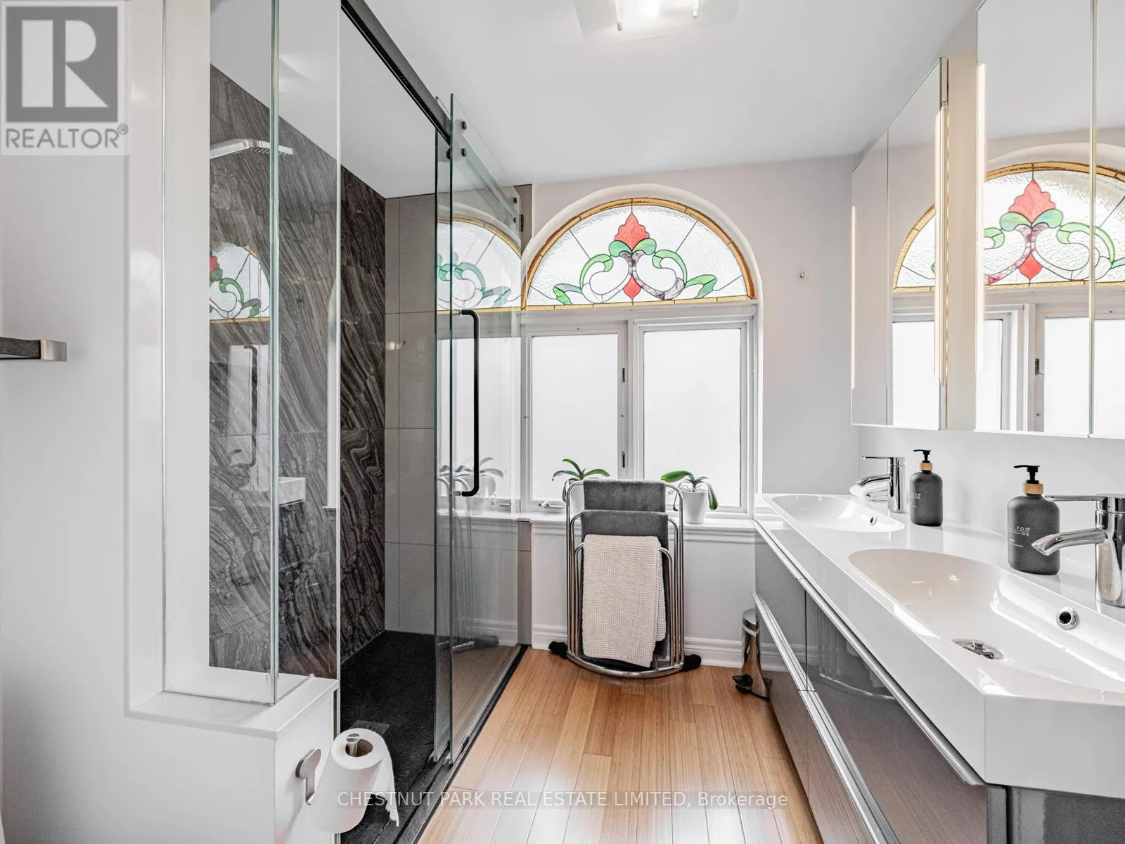 Sherbourne and Gerrard Welcome to 280 Sherbourne Street, Townhome #4. This stunning multi-level urban oasis is artfully hidden deep within the heart of the city! While this elegant Victorian-style property overlooks one of the city's most vibrant thoroughfares, urban redevelopment, gentrification projects, and refinement of Regent Park are active & welcome investments in the neighbourhood. Nestled in a lush verdant courtyard surrounded by mature trees, this little-known gem has everything you need. There are only 18 units in the complex, fostering a friendly community vibe. Your private terraces off the main level and the treetop balcony off the primary bedroom allow you to literally bathe in tranquility in the early mornings, setting the tone for a busy day, and to entertain or just rest and reset in the evenings. Natural light streams through the dramatic 16 foot wall of west-facing windows, as well as through the gorgeous stained glass East-facing windows. No detail was missed when it came to renovating this impeccable townhome, from the fabulous chef's kitchen, to all 3 bathrooms and laundry room. Take note of the Gleaming quartz kitchen counters, soaring ceilings, elegant wall papered hall, and a cozy wood burning fireplace on the ground level. And the integrated Murphy bed with custom storage in the 2nd bedroom and ideal office or THIRD bedroom are just a few of this homes unique features. The top floor boasts a true sanctuary complete with walk-in closet, a sitting room and a spacious sleeping area with gorgeous views through sliding glass doors to your private balcony overlooking a courtyard that transports you to quiet country-like living. Leave the car at home since you have a near perfect walk score, quick access to public transit, steps to St. Mike's Hospital, the financial district, St Lawrence Market for Food, and the Eaton Centre for everything else. This elegant Townhome is ideal for professionals who also work from home, empty nesters, and downsizers! (id:27476)