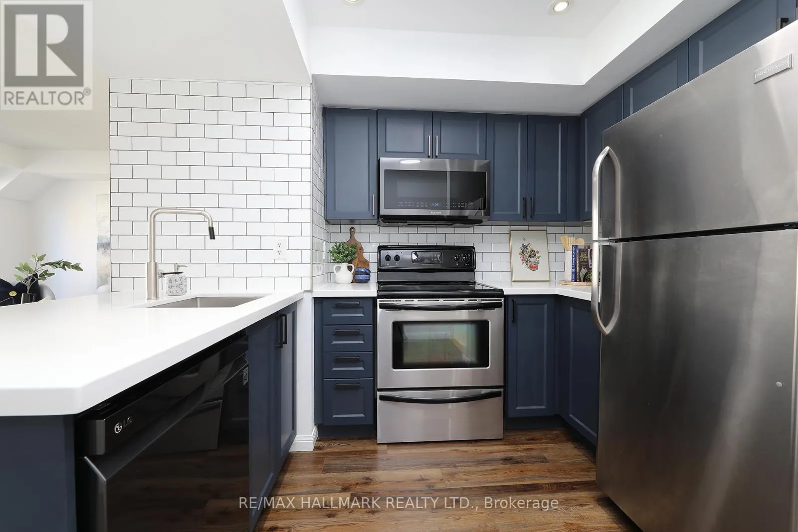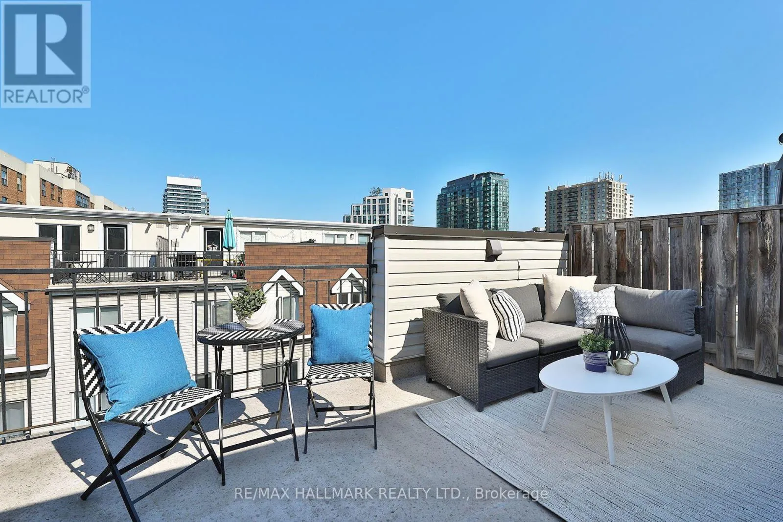 Cross Streets: King And Dufferin. ** Directions: King St W to Joe Shuster Way. Joe Shuster Way to Laidlaw St. Sun Drenched 3Rd Level Spacious Roof-Top Terrace With A BBQ Hookup And A Water Bib? Yes Please! Smothered In Sunlight With Over 1000sf Of Stylishly Upgraded And Convenient Living On Three Levels. A Terrific Entertainment Friendly Living Room And Dining Room Space With A Gas Fireplace For Those Cozy Winter Nights And A Juliette Balcony For Fresh Air. An Upgraded Chefs Kitchen With Terrific Storage And Quartz Counter Space. A Main Floor Upgraded 2pc Powder Room. Enjoy A Peaceful Sleep In The Large Primary Bedroom With A Built-In Closet. Check Out The Upgraded Spa-Like 4PC Washroom. The Second Bedroom/Nursery/Reading Room With A Double Closet.A Terrific Office Nook On the Second Floor. You Are Going To Love The Upgraded Luxury Vinyl Wood Plank Flooring. Style Galore. Oh...And Lets Talk More About That Roof-Top Terrace...So Much Sunlight For A Small Garden And To Chill. Watch The Sunrise With Your Coffee Or The Sunset With A Glass Of Wine. Did I Say A BBQ Gas Hook-up? So Many Upgrades: Professionally Painted. New Carpet On The Stairs. New LED Light Fixtures. Upgraded Kitchen. Refinished Kitchen Cabinets. Upgraded Washrooms. NEW And Owned Rinnai Combi Boiler (NO RENTAL FEE). Spotless. No Grass To Cut. No Snow to Shovel. Everything Nearby Neighbourhoods. Just Move-In And Show Off This Baby to Family and Friends! Owned Parking Space. Owned Locker. Owned 2-Bicycle Rack. Beautiful Landscaped Grounds. BBQ's Allowed. Excellent Schools.Transit Paradise. Walkers Paradise. Bikers Paradise. (id:27476)