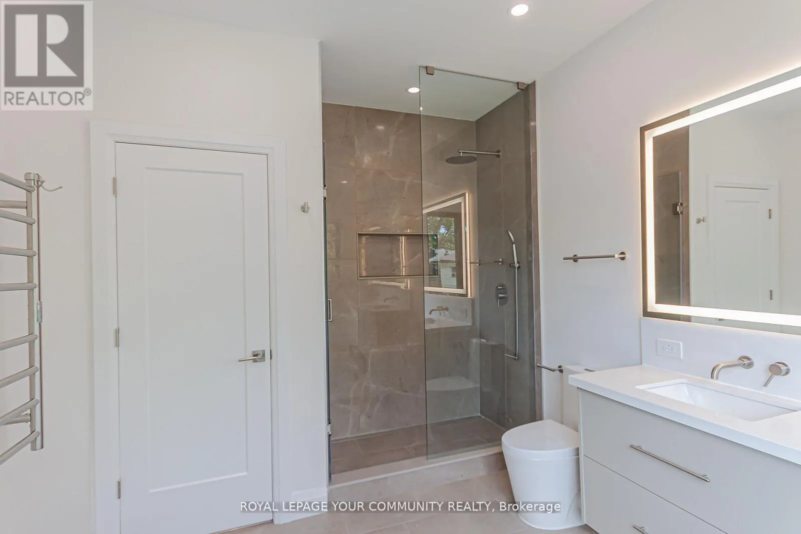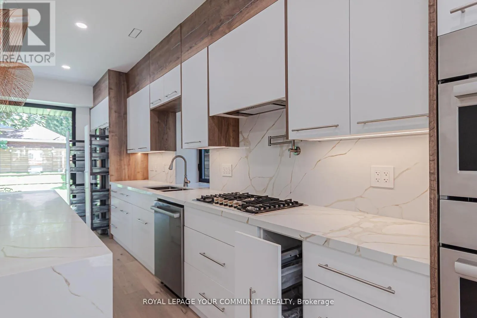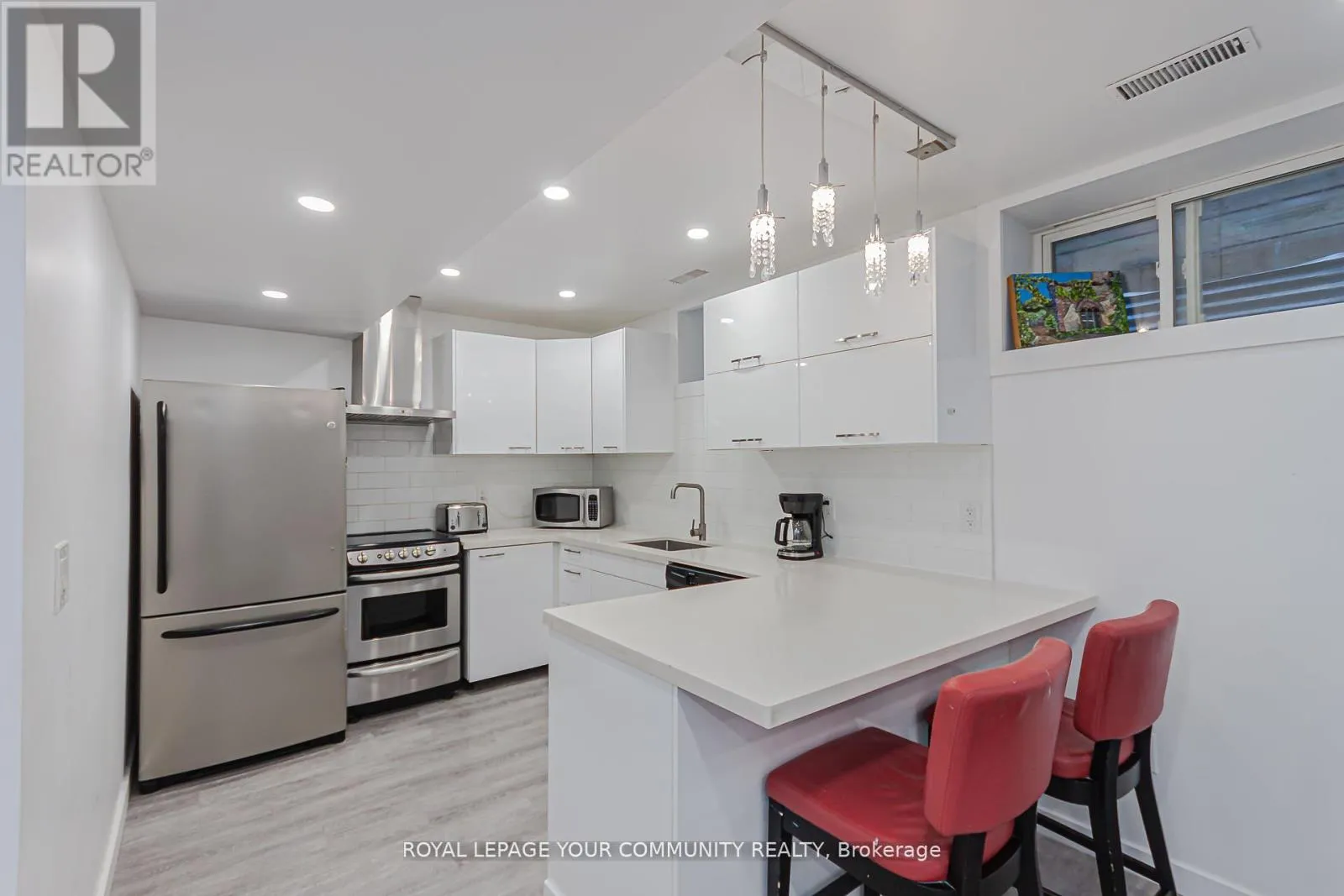 Gerrard St /Coxwell Ave Sleek, modern house, thoughtfully designed and luxury finished in Upper Beaches. Built from foundation up. Stylish open concept main floor with large windows. Soft toned hardwood flooring both levels. All custom cabinetry done by Barcelona Kitchen Design. Huge centre island w/ quartz countertop. Top of the line Bosch 800 series appliances. Glass railings for stairs. 3 bedroom and 3 bathroom on second level. Heated flooring in every bathroom. Custom cabinetry, led mirrors in each bathroom. Gentek energy rated windows. Hardie board siding for easy maintenance and modern look. Keyless front door lock and triple lock secure front door. Spacious shed/workshop in backyard. Covered back porch w/ privacy screen. Legal interlock parking spot. Basement built in 2019, legal, soundproofed with separate furnace, AC, water heater and laundry. 3 in. insulation under concrete. Full kitchen w/ quartz countertop, SS appliances, and two bedrooms. Great house in perfect location. No details overlooked. Luxury living with extra income or in-law suite. Move in and enjoy (id:27476)