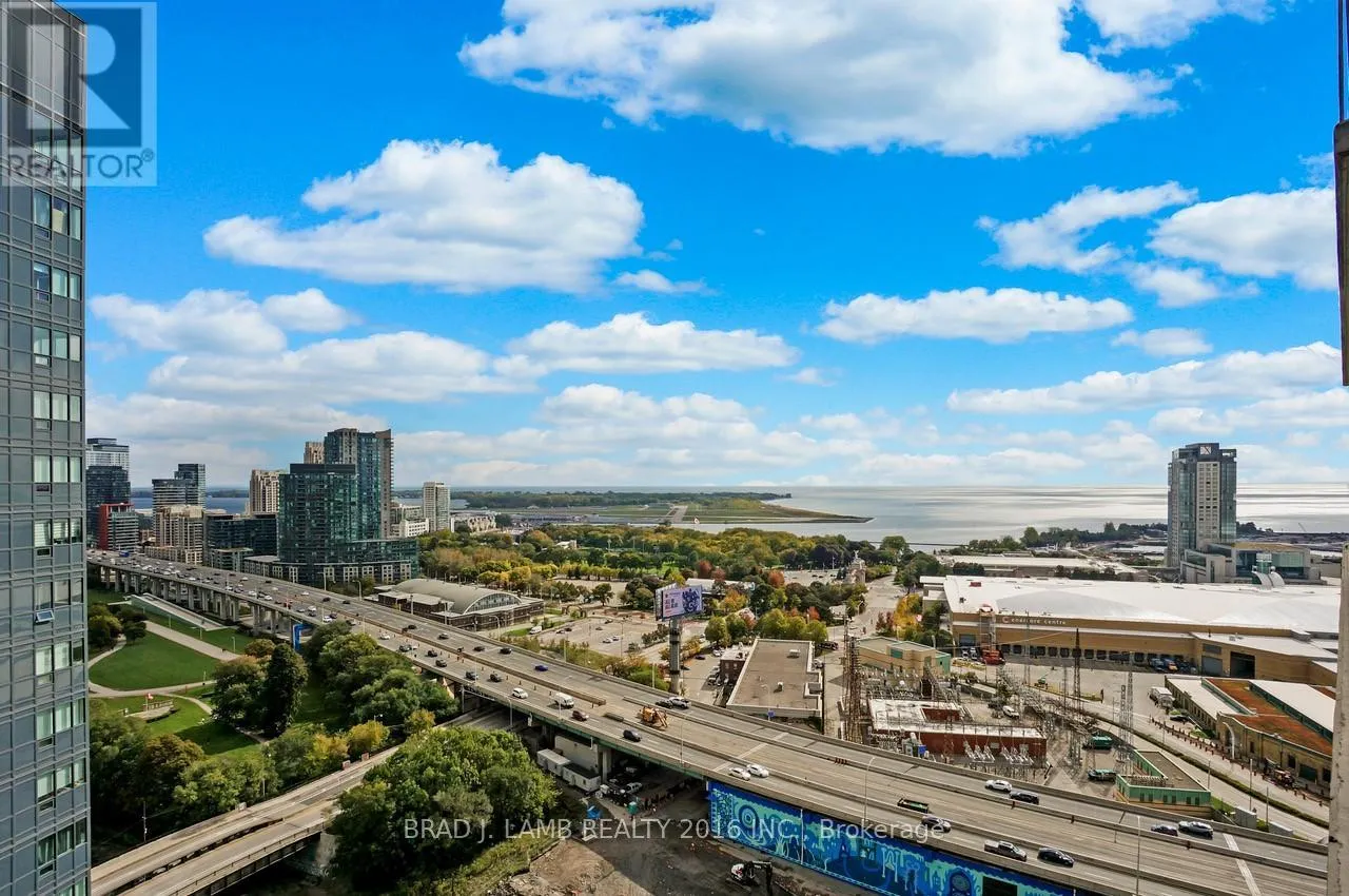 King St W & Strachan Welcome to your new home in the heart of vibrant Liberty Village! This stunning 1-bedroom plus den, 2-bathroom condo offers 700 sq ft + large balcony, of thoughtfully designed living space, perfect for professionals, couples, or anyone seeking modern city living with a touch of luxury. Situated on the 22nd floor, you'll enjoy breathtaking, unobstructed views of the city skyline and Lake Ontario through expansive floor-to-ceiling windows that flood the unit with natural light. The open-concept layout features a sleek kitchen with stainless steel appliances, stone counter tops, and ample cabinetry ideal for cooking and entertaining. The spacious primary bedroom includes a large closet and a private 4-piece ensuite, while the versatile den can be used as a home office, guest room, or workout area. A second full bathroom offers convenience for guests. Live steps from everything public transit, parks, Metro, the waterfront, Exhibition Place, trendy shops, cafes, pubs, BMO Field and downtown Toronto. This is more than a condo; it's a lifestyle. Dont miss your chance to own in one of Torontos most dynamic and connected neighbourhoods! (id:27476)