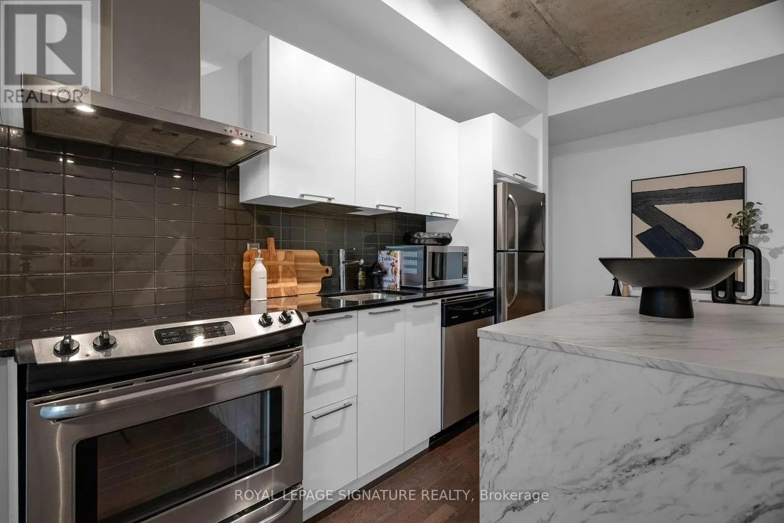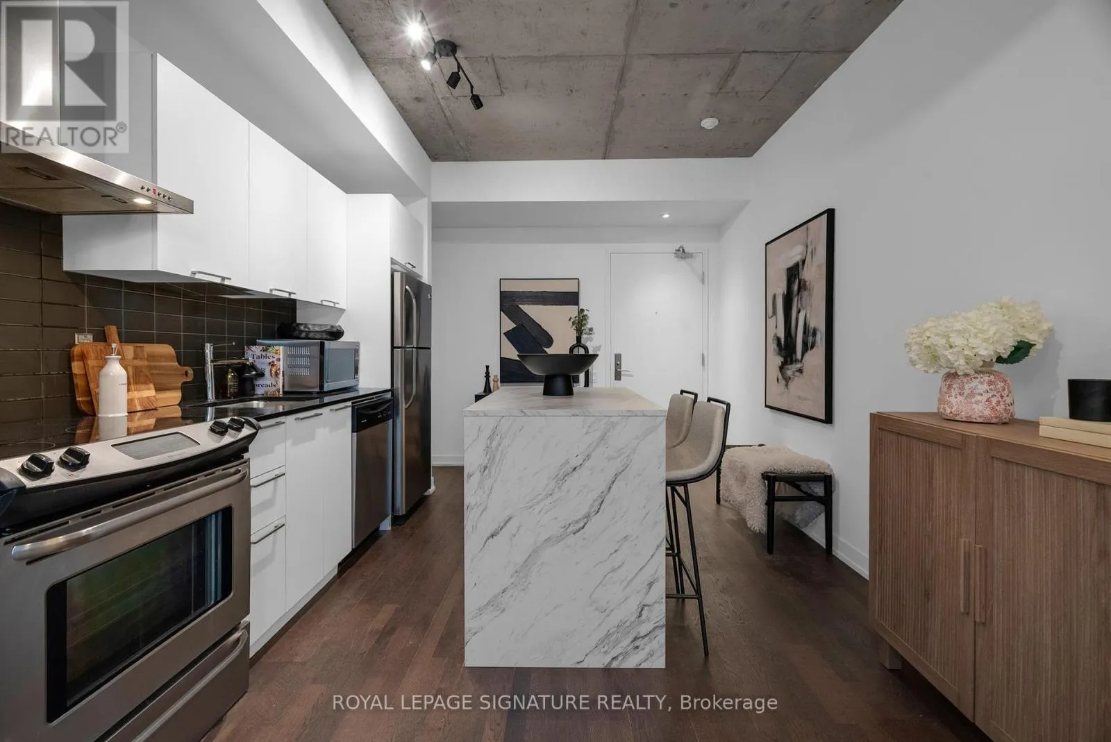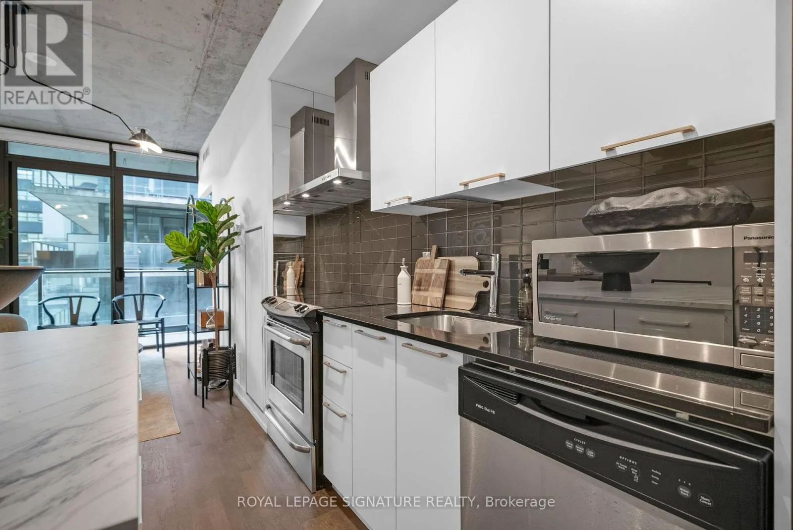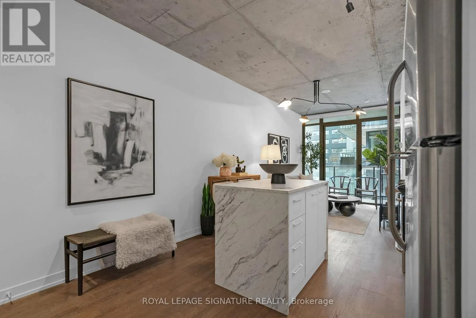 Bathurst St and King St W Welcome to Six50 King West Suite 804! Experience urban sophistication in the heart of King West Village, one of Torontos most vibrant and sought-after neighbourhoods. This bright and beautifully designed 1-bedroom, 1-bath residence offers effortless city living with a rare 100 sq. ft. west-facing private balcony perfect for catching sunsets or entertaining outdoors.Inside, you'll find a smart, open-concept layout that maximizes every inch of space, complete with built-in closets, hardwood floors, and a 4-piece spa-style bathroom with a full bathtub. The modern kitchen features stainless steel appliances, stone countertops, and sleek cabinetry, making it ideal for both daily living and entertaining. Perfectly positioned at King & Bathurst, you're steps from Torontos best restaurants, nightlife, boutiques, and fitness studios, plus The Well, Waterworks Food Hall, Farm Boy, and Loblaws. Enjoy unbeatable connectivity with TTC streetcars right outside your door and the upcoming KingBathurst Station (Ontario Line) just next door. Building amenities include a 24-hour concierge, fully equipped fitness centre, outdoor garden terrace, and party room. Includes stainless steel fridge, stove, built-in dishwasher, built-in microwave, stacked washer & dryer, all existing light fixtures, window coverings, and a storage locker.Welcome to a lifestyle of style, comfort, and convenience right in the heart of downtown Toronto. (id:27476)