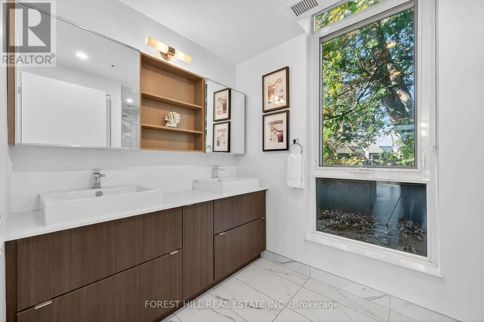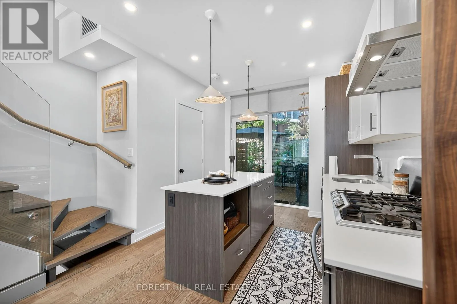 Roncesvalles & Howard Park Ave Experience modern urban living at its finest in this luxury designer executive townhome nestled in the heart of Roncesvalles Village. This exceptional 3-bedroom, 4-bath residence combines architectural sophistication with comfort, showcasing custom designer finishes and luxury upgrades throughout. A stunning floating staircase anchors the open-concept main floor, featuring wide-plank hardwood flooring, soaring ceilings, and an elegant chefs kitchen complete with premium built-in appliances, quartz countertops, and bespoke cabinetry. The spacious finished basement offers flexibility for a family room, home office, or gym, while the private backyard with a sitting area and garden provides a serene outdoor retreat. Upstairs, the primary suite is a true sanctuary complete with a custom walk-in closet and a spa-inspired ensuite bathroom featuring designer tilework, a glass shower, and double vanity. Enjoy all the conveniences and amenities of 38 Howard Park, along with the vibrant lifestyle that makes Roncesvalles one of Toronto's most coveted neighborhoods steps to trendy cafés, boutique shops, parks, and transit. (id:27476)