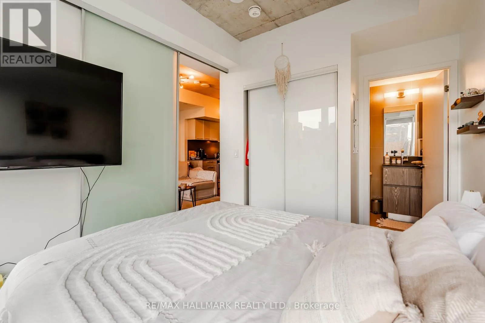 Cross Streets: Queen & Broadview. ** Directions: West of Broadview, South of Queen. Bright and contemporary 2-bed, 2-bath suite in Riverside Square. This thoughtfully designed layout features floor-to-ceiling windows and an open-concept living space with seamless flow to a private balcony. The modern kitchen offers quartz counters & stainless steel appliances. Spacious bedrooms provides privacy and functionality, with a primary suite featuring a full ensuite and generous closet space. The location brings a connected, urban feel while still offering light and openness throughout. Enjoy access to building amenities including concierge, fitness centre, and rooftop terrace. Steps to Queen East cafés, restaurants, and the Broadview streetcar for quick access downtown. Ideal for professionals seeking modern design and convenience in one of Toronto's most vibrant east-end communities. (id:27476)