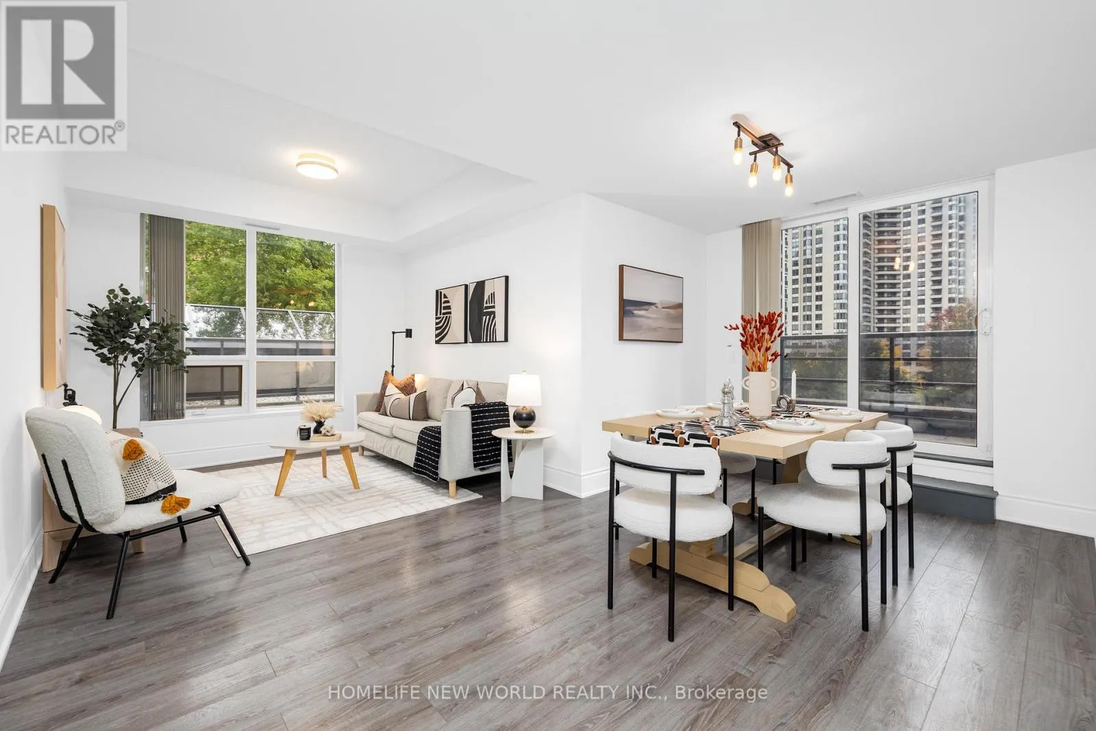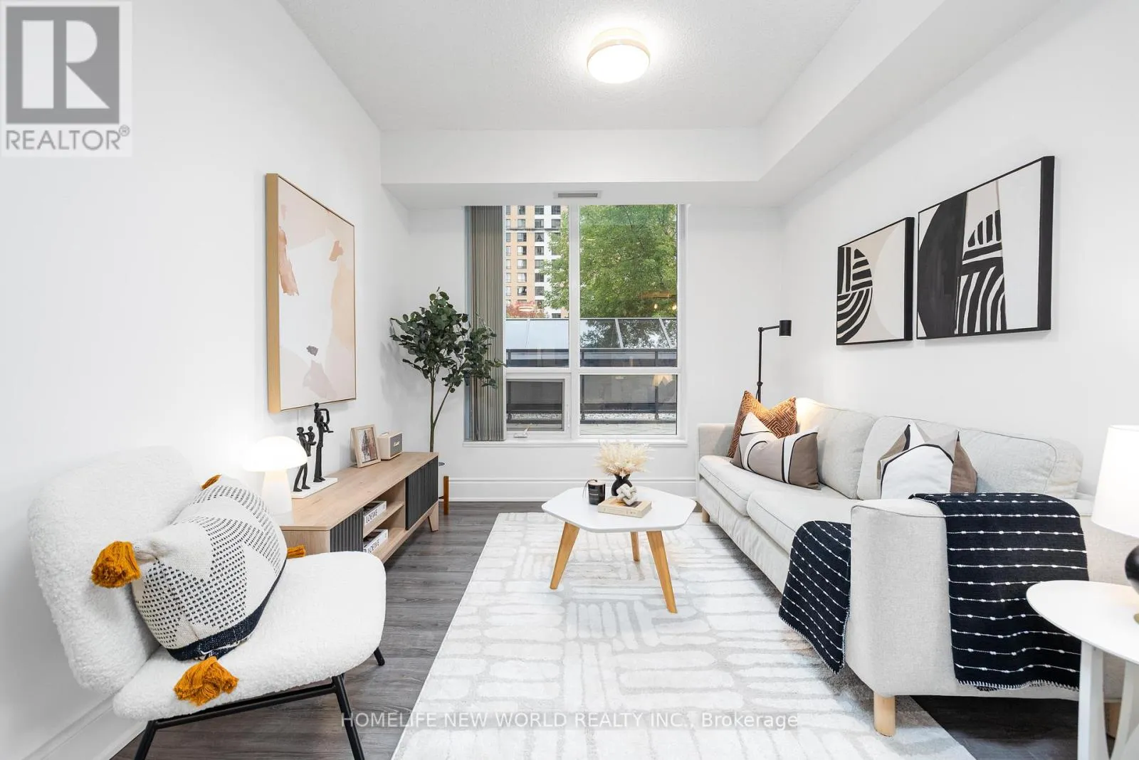 Yonge/Finch Huge 2+Den corner unit in prime Willowdale! 9 ft ceilings, bright open layout with huge wraparound terrace including a BBQ gas line for entertaining. Brand new induction stove, water filter and NEST smart home system. Rare 3rd-floor suite with direct walk-out access to gym, pool & amenities-no elevator needed. Steps to Yonge, Finch subway, parks, shops & top schools. Modern finishes, ensuite laundry, parking and locker complete this perfect urban home. (id:27476)