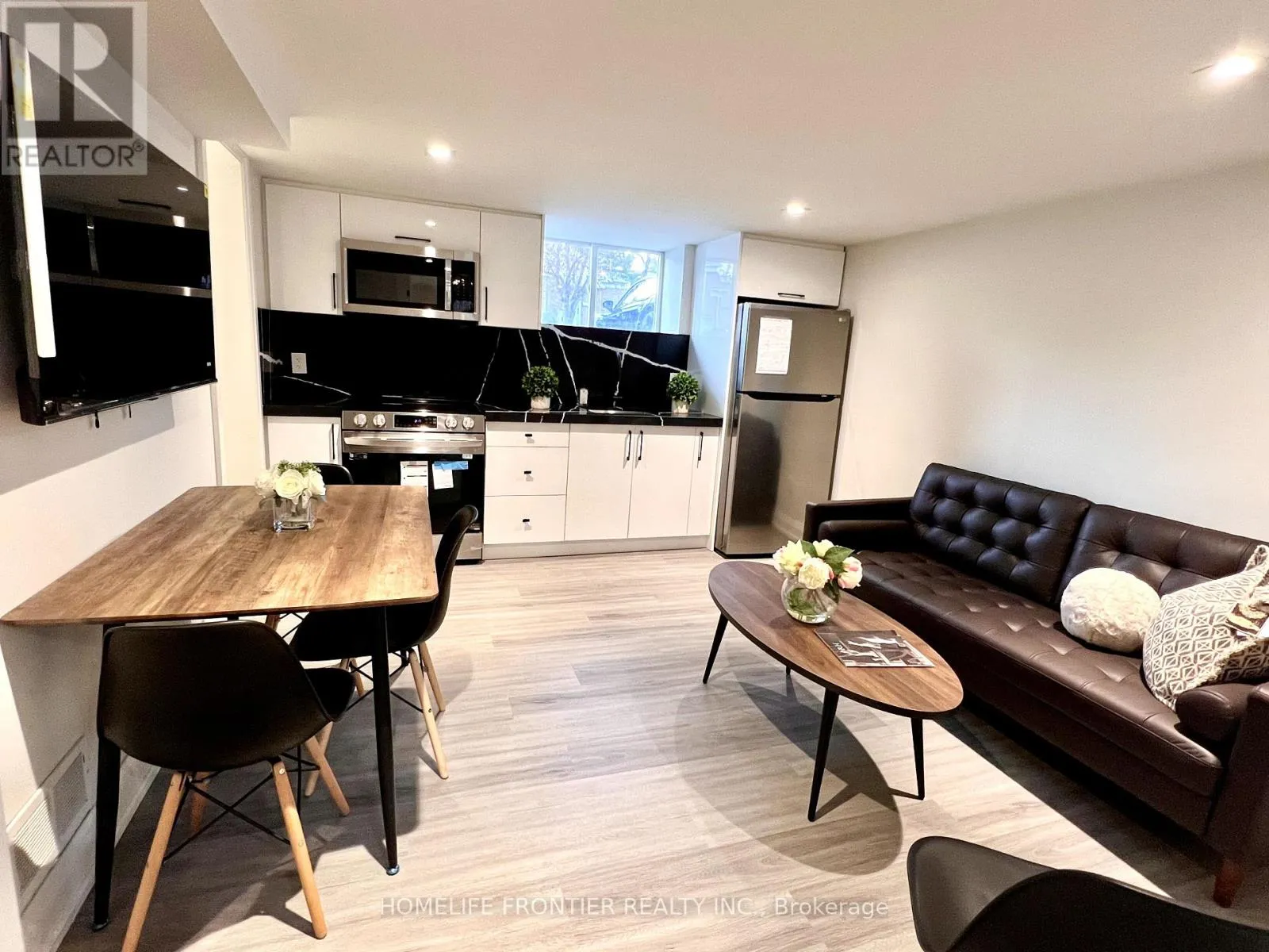 Cross Streets: Yonge and Sheppard. ** Directions: back door. 1 year New fully Furnished 1 bedroom apartment with modern finishes, just like condo life style. Features include: Vinyl floors and pot lights throughout, Above ground large windows in bedroom & living room, Modern white glossy kitchen with full size Stainless Steel fridge and stove, Quartz countertop and backsplash, Modern bathroom, spacious bedroom with double closet, 1 parking and cold room for storage included. Steps to Subway, Shopping Centre, Restaurants, Theatre, Library, a minute drive to Hway 401, Side yard for bbq,...**Available short term month to month** (id:27476)