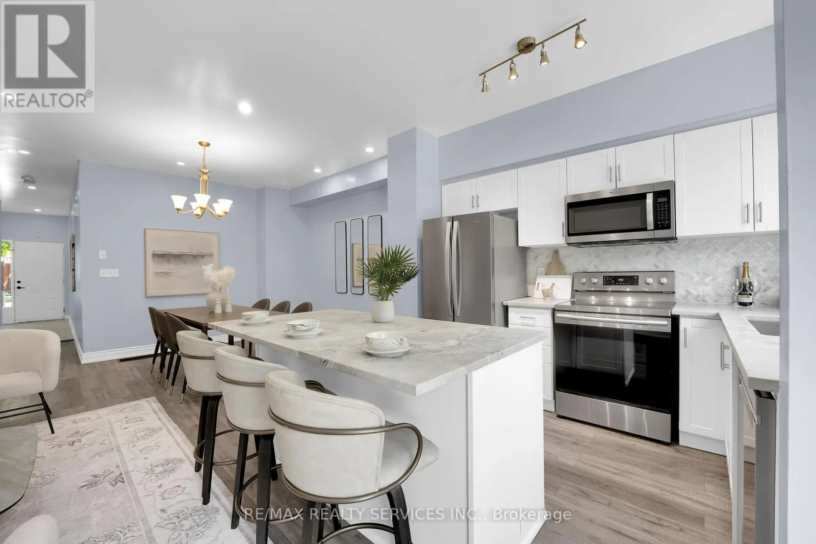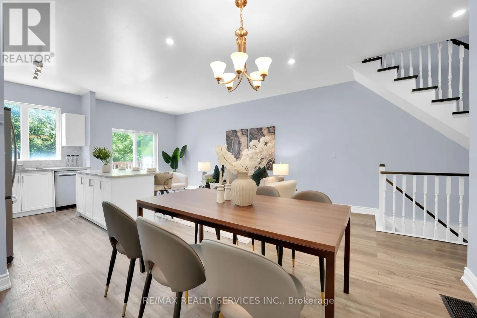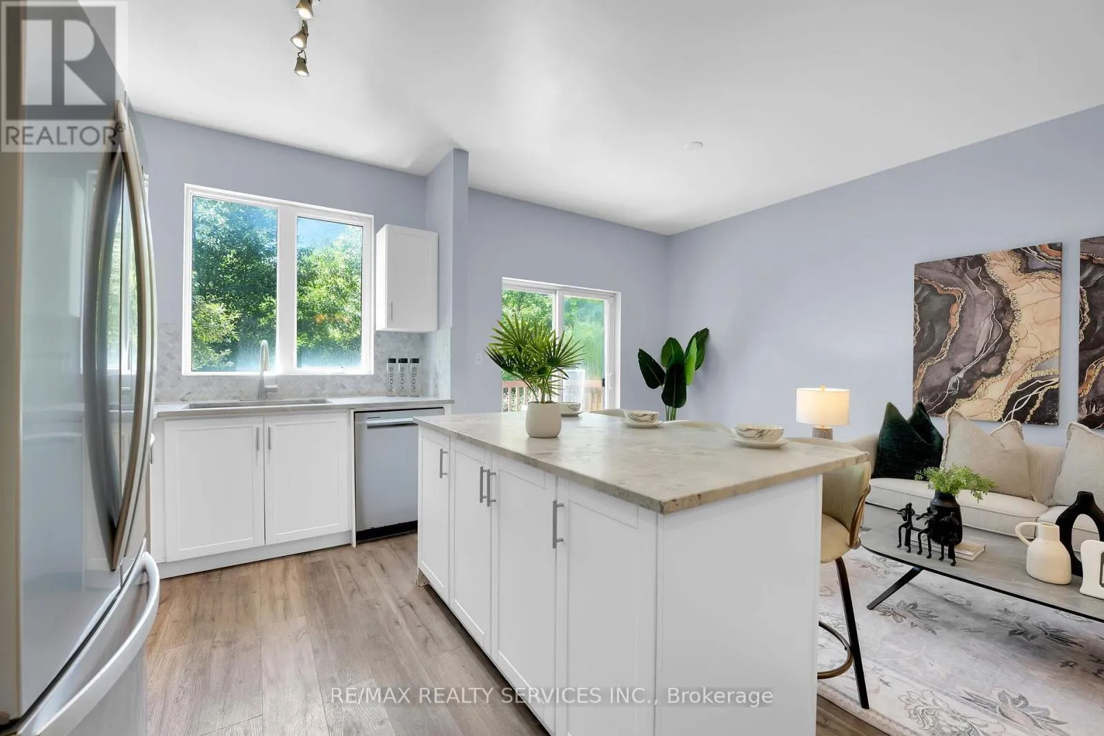 Cross Streets: End Unit Back On Ravine. ** Directions: Finch Ave W & Islington Ave. Welcome to this rare over 2200 sq/ft. End-unit, 3 story Executive townhouse just like a Semi-Detached home. Situated in the highly desirable family-friendly Harmony Village community. This property perfectly blends comfort, style and convenience. Backing on to the Humber River recreational trail, it offers privacy & a lush ravine view. Feature 5 Bedrooms 4 Bathrooms + finished basement with1bed & a rec room. Main level features open concept layout with living, dining, a modern kitchen with stylish backsplash a large island with extended breakfast bar & quartz countertops. This level features a walkout to a private deck, perfect for enjoying your morning coffee or relaxing with nature. Spacious 2nd level boasts a1st Master Bedroom with luxurious 5 pc en-suite & walk-in closet as well as a family room. 3rd level showcases 2nd Master Bedroom with 4pc en- suite & walk-in closet, 3 generous sized bedrooms share 4 pc common bath. Parking for two (1 garage + 1 driveway). Steps to the Finch LRT line, TTC bus routes, close to HWYS 400/407/401, community center, dining options, shopping, parks, trails, reputable schools and just minutes to York University & Humber College. Ideal location for big families, first time home buyers or investors. Upgraded from top to bottom in recent years, with renovations including new flooring, bathrooms, kitchen, pot lights, and fresh paint throughout. This home offers convenience and incredible value! Must watch attached virtual tour. (id:27476)