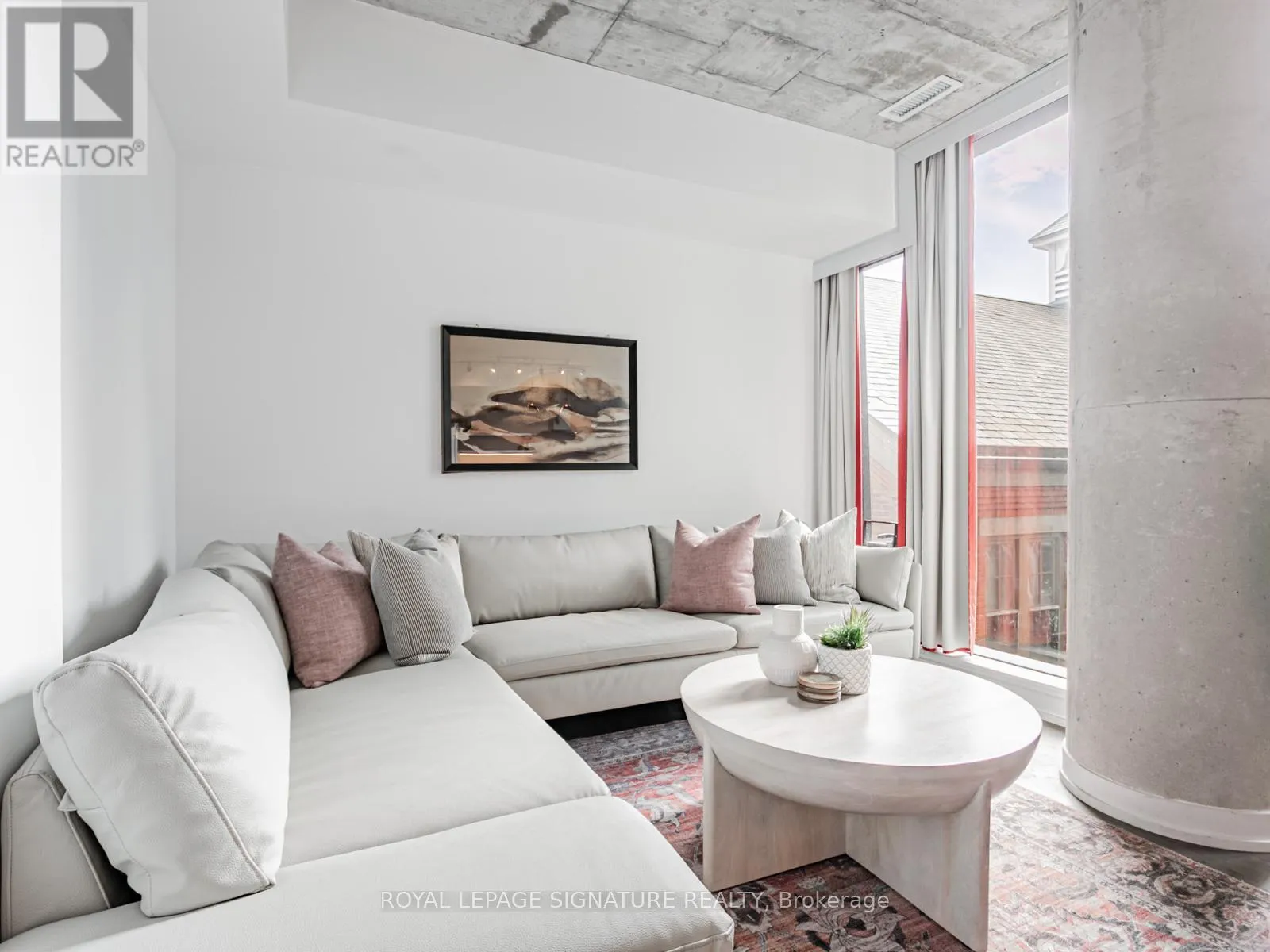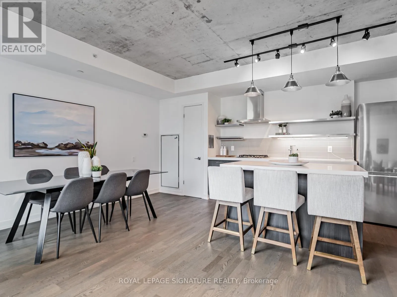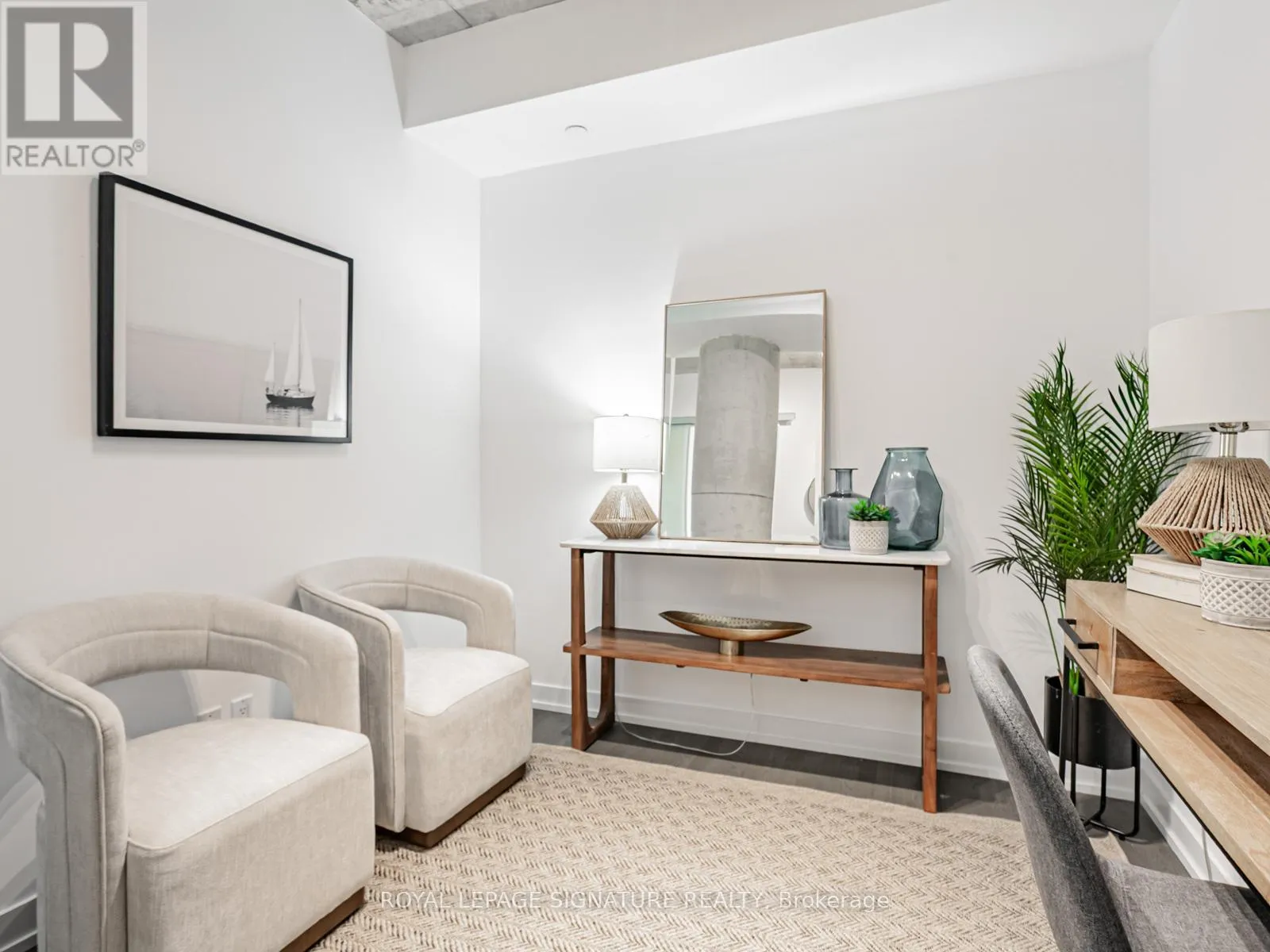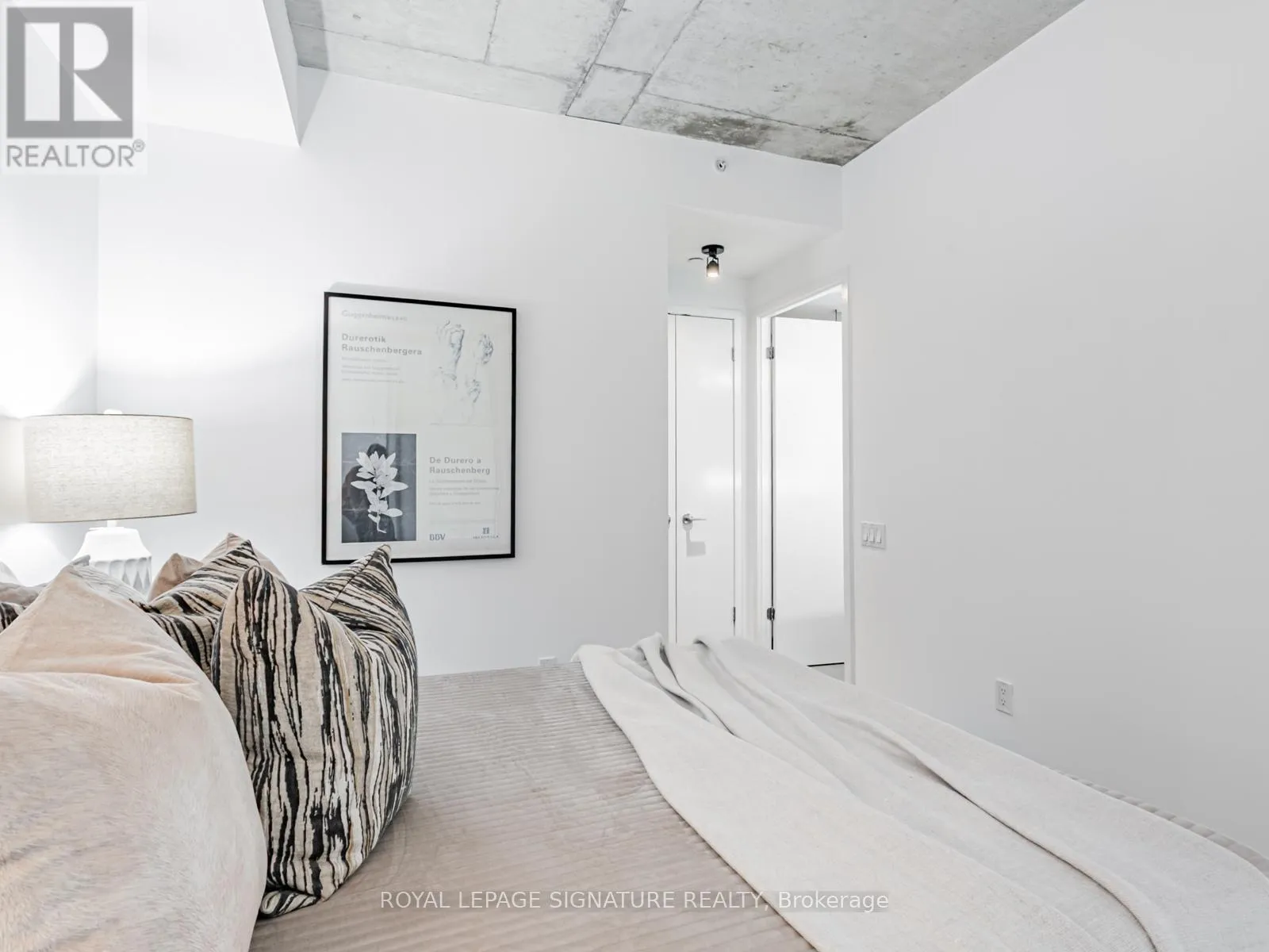 Cross Streets: King/Portland. ** Directions: North Side of King. Big Loft Energy at Fashion House! Nearly 1000 sq ft of bold, open-concept living in one of King West's most iconic addresses. This oversized loft blends urban edge with soft sophistication - think soaring ceilings, exposed concrete, wide-plank hardwood floors, and a gallery-like layout that's made for entertaining. The sleek chefs kitchen features stone counters, premium appliances, and a generous island that anchors expansive living and dining zones. The king-sized bedroom is tucked away for privacy and boasts a dreamy walk-in closet, while a spacious separate den easily works as a stylish home office or a second bedroom. Underground parking included - a rare luxury in this prime location. Fashion House is beloved for its boutique feel and jaw-dropping rooftop infinity pool overlooking the skyline. Residents enjoy a 24-hour concierge, gym, party room, guest suites, and a lobby with serious red-carpet energy. Steps to The Well, Waterworks Food Hall, Lee, Gusto 101, Buca, the Financial District, Queen West, and the waterfront. This isn't just a loft. Its a lifestyle. Big space. Big style. Big energy. Don't sleep on it - your next chapter starts here. (id:27476)