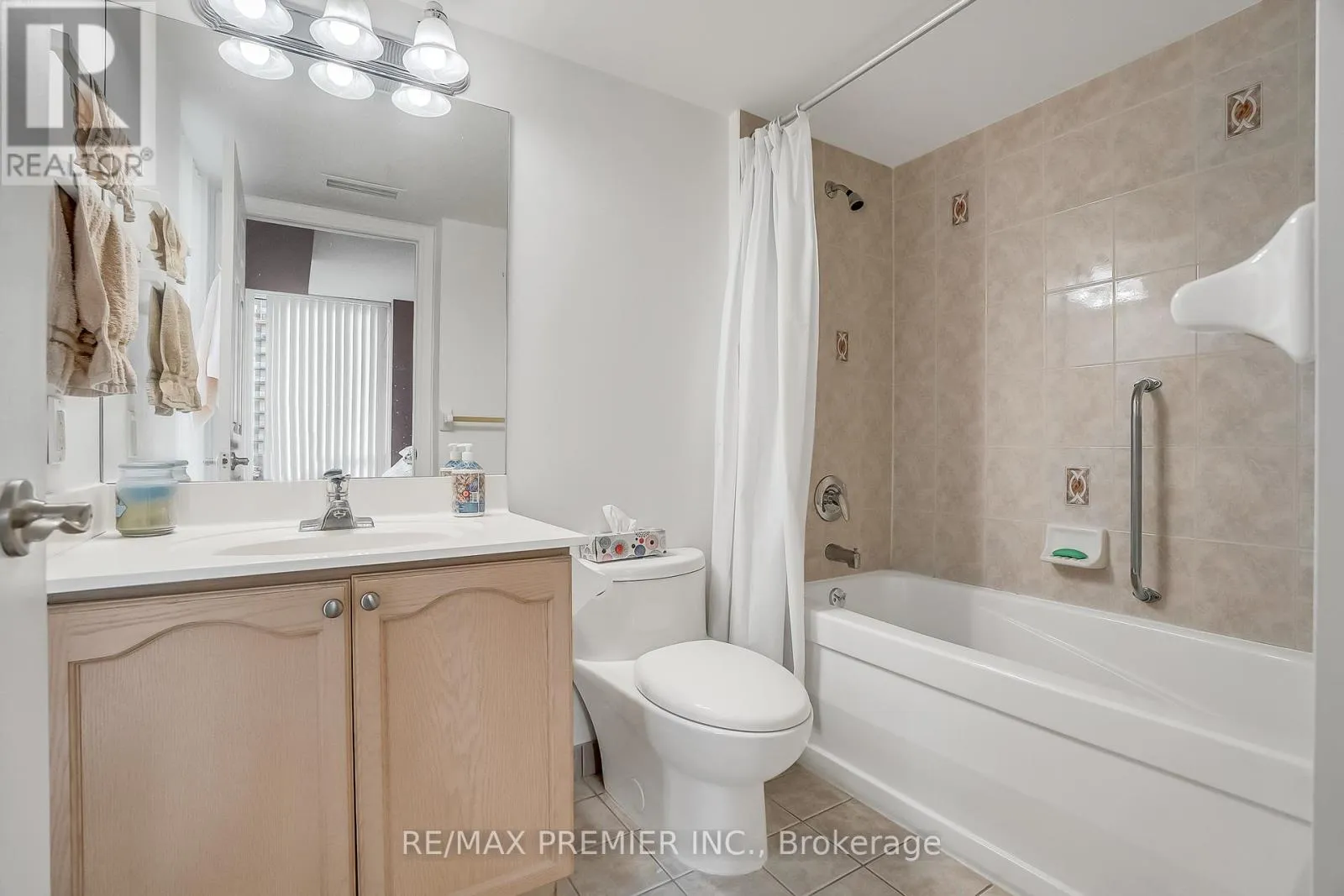 Mccowan/ Hwy 401 Welcome to this bright and spacious 2-bedroom, 2-bathroom corner unit with crown moulding in a sought-after Tridel-built residence, just steps from Scarborough Town Centre. Offering approximately 950 sq ft of well-maintained living space, this condo features a private open balcony with breathtaking southwest views with a glimpse of the lake. Enjoy top-tier 24-hour concierge service and a full suite of resort-style amenities, including: Indoor pool, billiards & ping pong rooms, fully-equipped gym and a party room. Conveniently located near TTC, Hwy 401, Centennial Recreation Centre, Centennial College, 1 bus to UofT Scarborough Campus. Everything you need is just minutes away. Locker and parking included. Don't miss this incredible opportunity to own a condo in the heart of Scarborough! (id:27476)