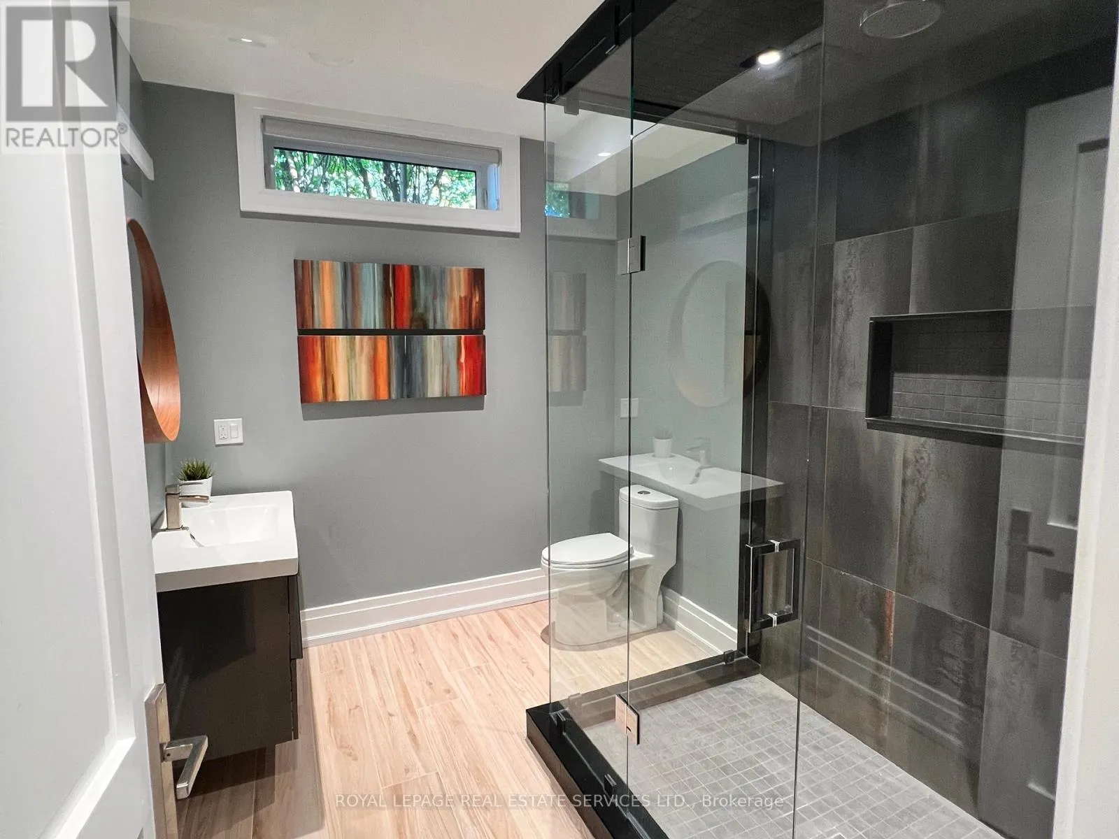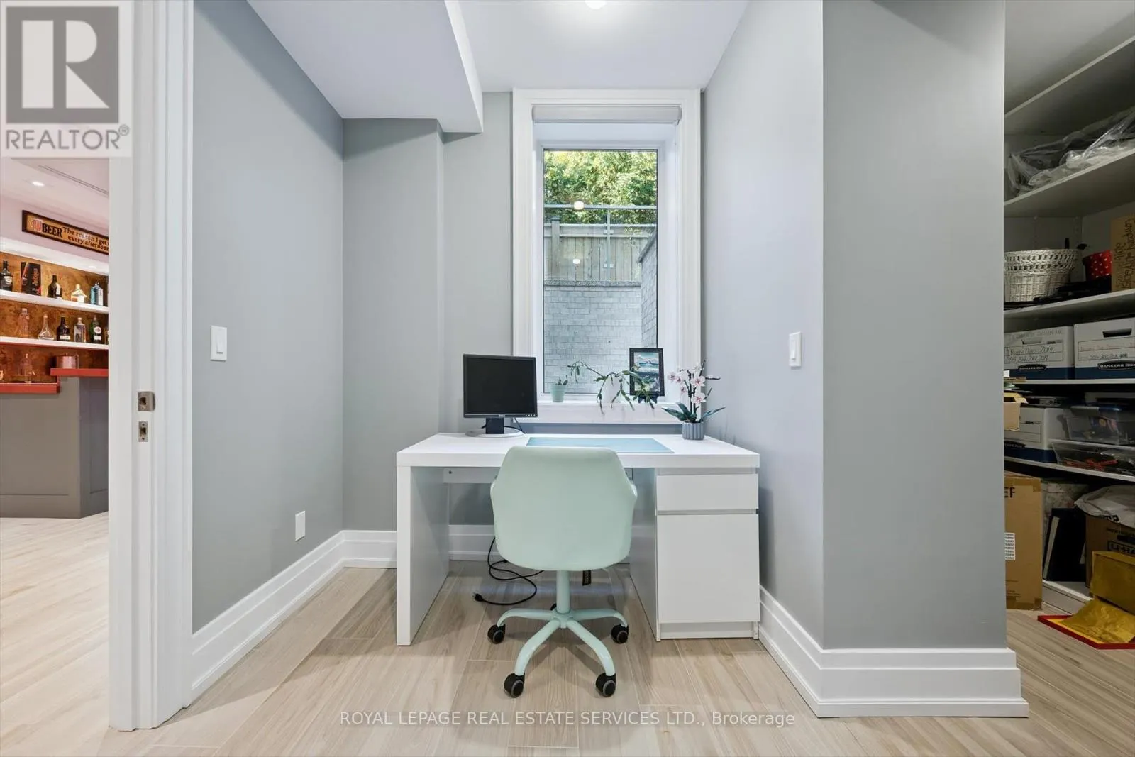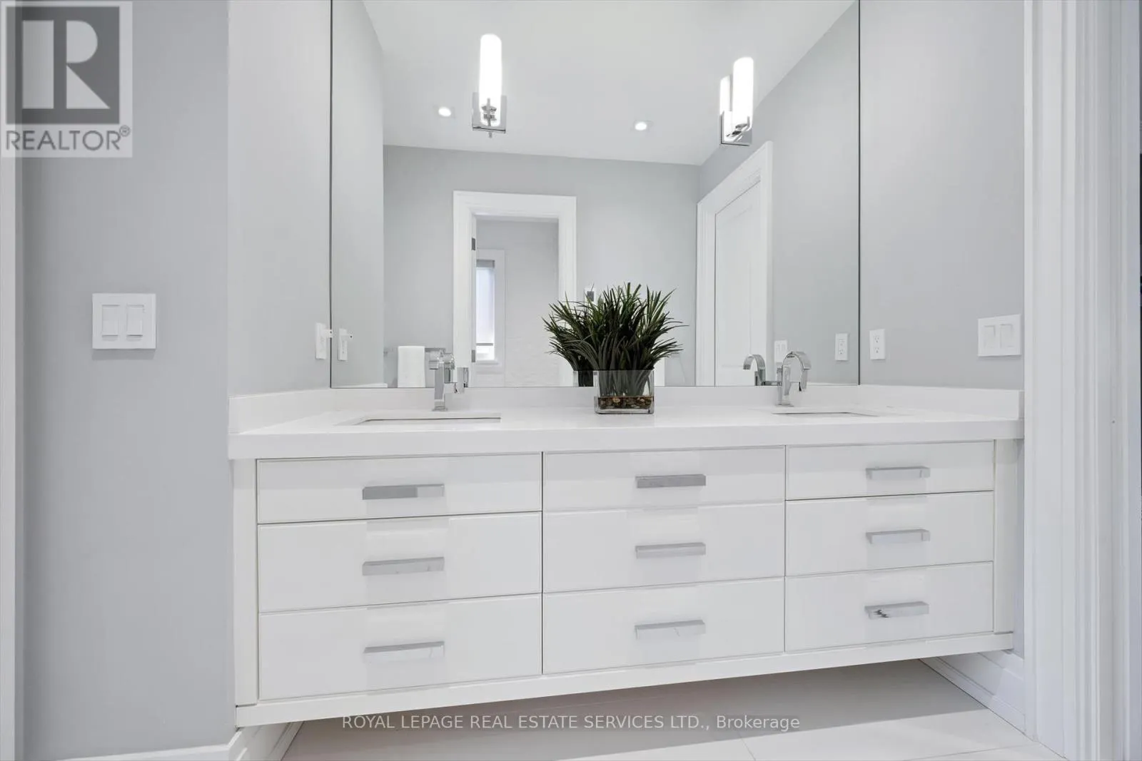 Cross Streets: Burnhamthorpe Road and Shaver Avenue North. ** Directions: Burnhamthorpe Road / Shaver Avenue North / Westglen Crescent. AS FEATURED ON CTV LIFE CHANNEL'S LISTING LARGE! This exquisite custom-built residence blends modern sophistication with timeless elegance. Built in 2019 and offering approx. 3,700 SF above grade plus a fully finished lower level, this exceptional Glen Park home showcases meticulous craftsmanship, refined finishes, and thoughtful design at every turn. The brick and stone exterior opens to a grand, light-filled interior with engineered hardwood floors, intricate millwork, custom-matched vents, and striking architectural details. The impressive foyer features a remote-lowering chandelier, white oak floating stairs with pin lighting, feature wall with sconces, and skylight with mood lighting. The round double-height living room welcomes an abundance of natural light while the formal dining room boasts an elegant ceiling design and pot lighting. A private office with custom built-ins and a live-edge desk combines beauty and function. At the heart of the home lies a chef's kitchen with custom cut quartzite waterfall island, counters, and backsplash, GE Monogram appliances, Bosch Wi-Fi coffee station, pot filler, and a concealed prep kitchen with swing door. The adjoining family room invites connection with its waffle ceiling, gas fireplace, and built-in display cabinetry. Upstairs, the luxurious primary suite offers a tray ceiling, two-sided fireplace, extensive built-ins, walk-in closet and a private balcony overlooking the mature backyard. The spa-inspired ensuite features a freestanding air tub, double vanity with make-up centre, and glass shower with rain head and body jets. A junior suite with balcony and ensuite complements two additional bedrooms joined by a heated-floor Jack-and-Jill bath. The fully finished lower level impresses with radiant in-floor heating, a tiered theatre with KEF speakers and BenQ projector, vibrant red quartz wet bar, office/craft room, gym, and walk-up to the beautifully landscaped backyard with stone patio, glass panels, and BBQ hookup. (id:27476)