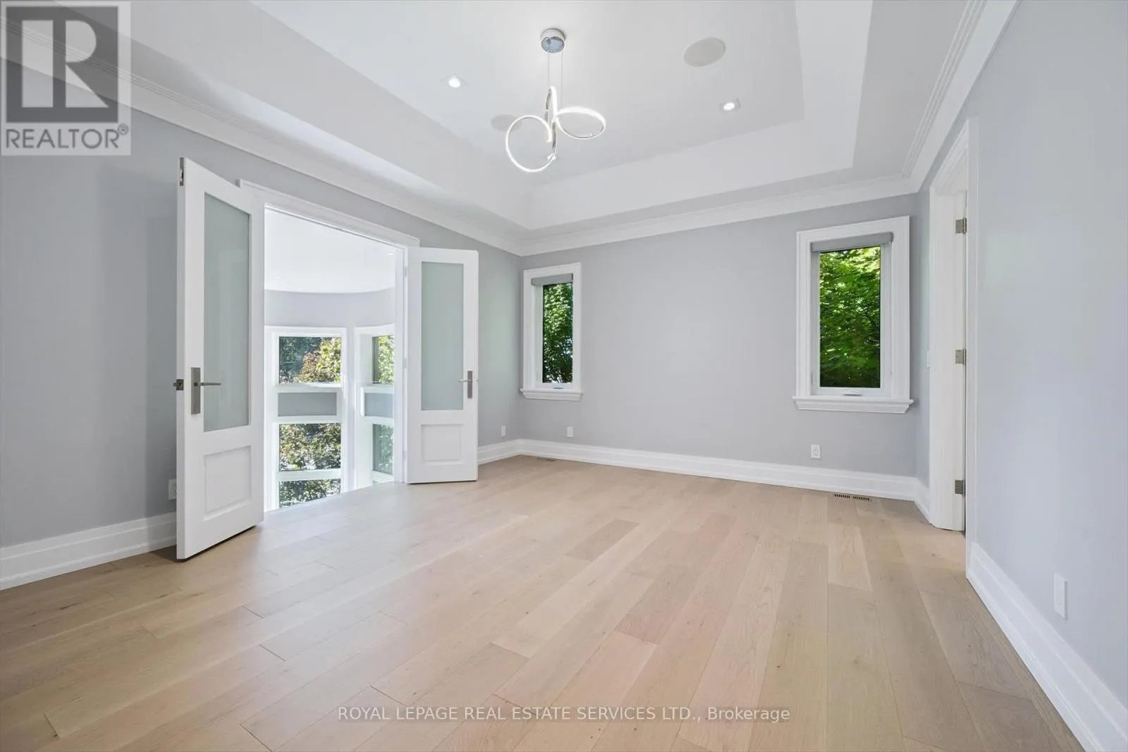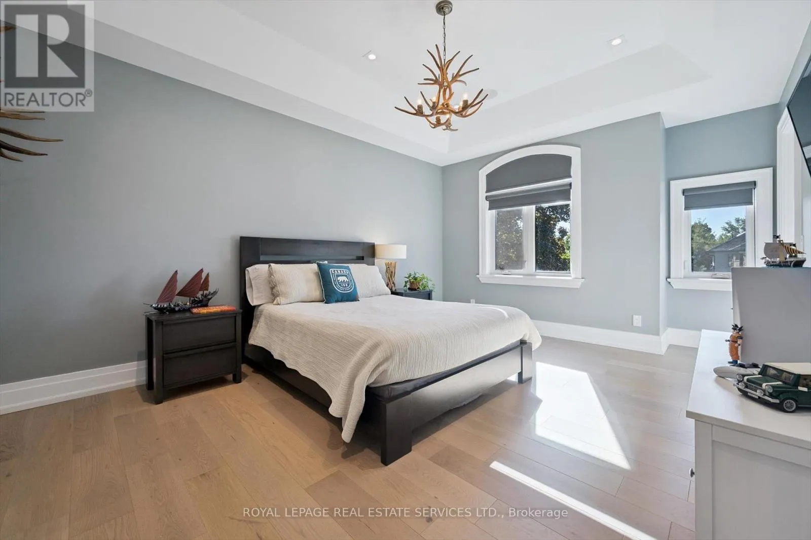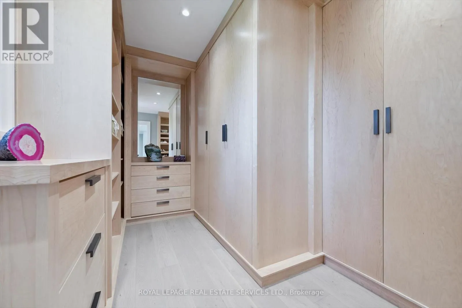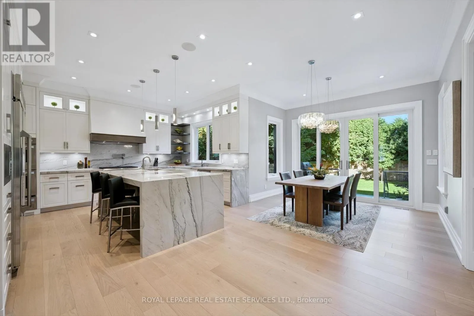Cross Streets: Burnhamthorpe Road and Shaver Avenue North. ** Directions: Burnhamthorpe Road / Shaver Avenue North / Westglen Crescent. AS FEATURED ON CTV LIFE CHANNEL'S LISTING LARGE! This exquisite custom-built residence blends modern sophistication with timeless elegance. Built in 2019 and offering approx. 3,700 SF above grade plus a fully finished lower level, this exceptional Glen Park home showcases meticulous craftsmanship, refined finishes, and thoughtful design at every turn. The brick and stone exterior opens to a grand, light-filled interior with engineered hardwood floors, intricate millwork, custom-matched vents, and striking architectural details. The impressive foyer features a remote-lowering chandelier, white oak floating stairs with pin lighting, feature wall with sconces, and skylight with mood lighting. The round double-height living room welcomes an abundance of natural light while the formal dining room boasts an elegant ceiling design and pot lighting. A private office with custom built-ins and a live-edge desk combines beauty and function. At the heart of the home lies a chef's kitchen with custom cut quartzite waterfall island, counters, and backsplash, GE Monogram appliances, Bosch Wi-Fi coffee station, pot filler, and a concealed prep kitchen with swing door. The adjoining family room invites connection with its waffle ceiling, gas fireplace, and built-in display cabinetry. Upstairs, the luxurious primary suite offers a tray ceiling, two-sided fireplace, extensive built-ins, walk-in closet and a private balcony overlooking the mature backyard. The spa-inspired ensuite features a freestanding air tub, double vanity with make-up centre, and glass shower with rain head and body jets. A junior suite with balcony and ensuite complements two additional bedrooms joined by a heated-floor Jack-and-Jill bath. The fully finished lower level impresses with radiant in-floor heating, a tiered theatre with KEF speakers and BenQ projector, vibrant red quartz wet bar, office/craft room, gym, and walk-up to the beautifully landscaped backyard with stone patio, glass panels, and BBQ hookup. (id:27476)