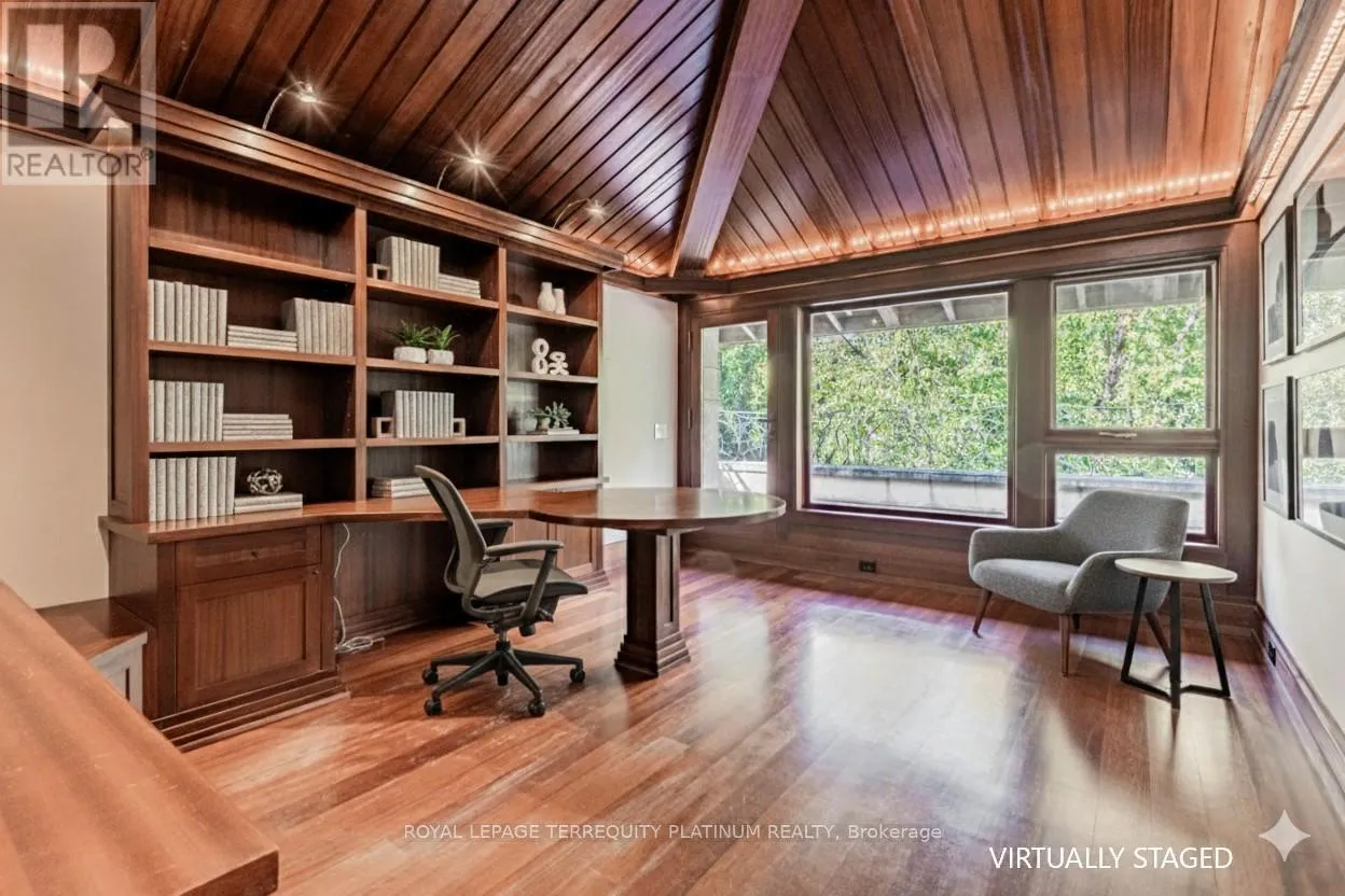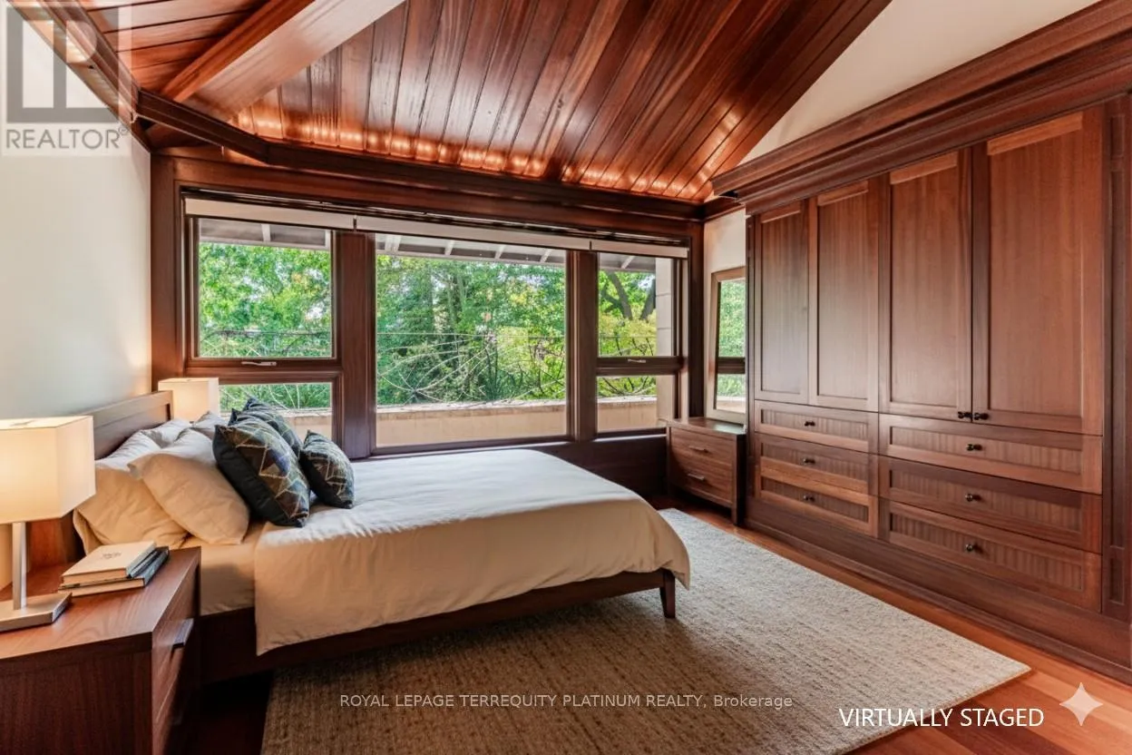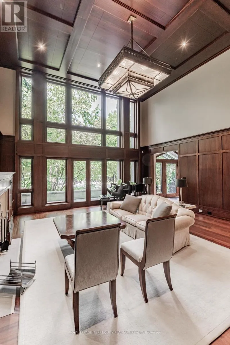 Cross Streets: Glen Road & Roxborough Dr. ** Directions: East of Glen Rd on Roxborough Dr, Across from Entrance to Chorley Park. An architectural tour de force by acclaimed Robert Le Blond, recipient of the 1990 Governor Generals Award in Architecture ("Head-Smashed-In Buffalo Jump" in Alberta, now a UNESCO World Heritage Site), this 20-year-young bespoke residence is a French Art Deco masterwork of craftsmanship with inspired ironwork by Goudy from Spain. Offering over 5,000 sq ft of living space on a coveted corner by Chorley Park in prestigious Rosedale, the home is clad in rare Manitoba Tyndall stone, prized for its striking fossilized patterning. The residence blends enduring elegance with modern comfort, from the heated front porch and rear veranda to the soaring 17-foot living room crowned by a vintage theatre chandelier and wrapped in rich, mahogany-stained Jatoba wood wainscoting and floors. Formal entertaining spaces flow seamlessly into the chefs kitchen, breakfast area, and family room, all opening onto a landscaped garden sanctuary. The detached, heated garage, complete with a skylight, wet bar, shower, and custom storage, offers versatility as a private workshop, while a gated driveway ensures both privacy and grandeur. With five bedrooms, two offices, five fireplaces, six bathrooms, wrap-around balcony and even a dedicated pet wash, every element reflects a commitment to refined living without compromise. (id:27476)
