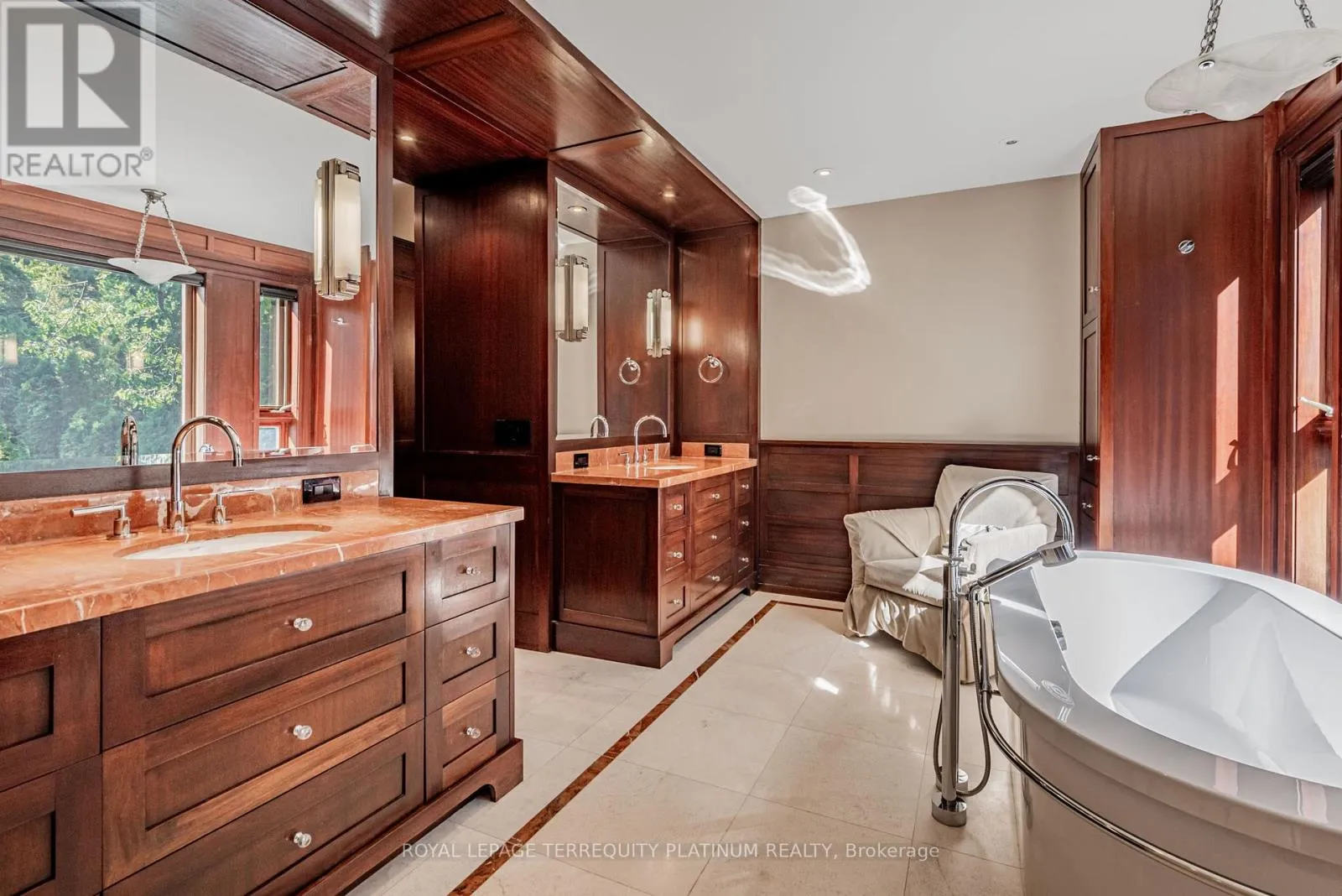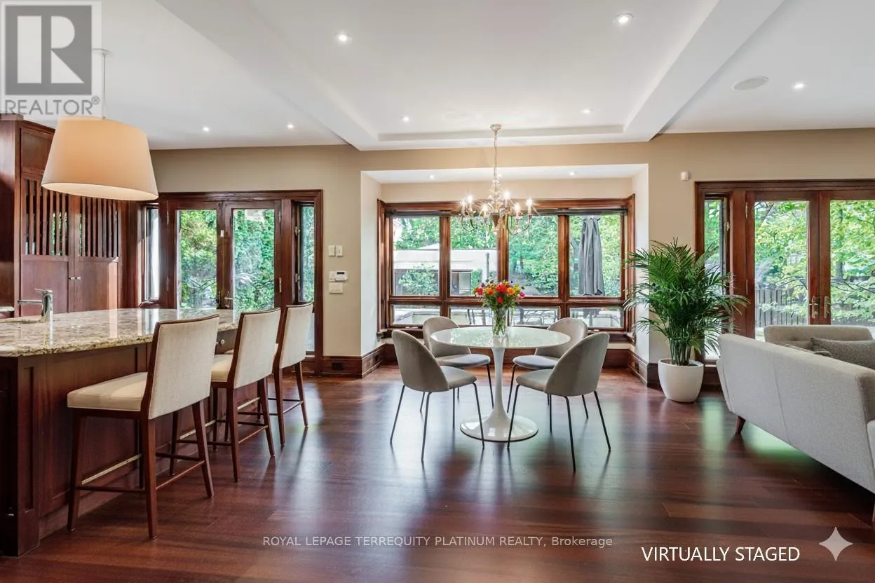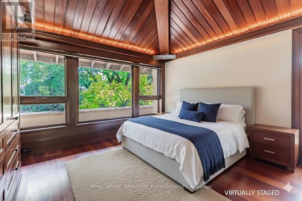 Cross Streets: Glen Road & Roxborough Dr. ** Directions: East of Glen Rd on Roxborough Dr, Across from Entrance to Chorley Park. An architectural tour de force by acclaimed Robert Le Blond, recipient of the 1990 Governor Generals Award in Architecture ("Head-Smashed-In Buffalo Jump" in Alberta, now a UNESCO World Heritage Site), this 20-year-young bespoke residence is a French Art Deco masterwork of craftsmanship with inspired ironwork by Goudy from Spain. Offering over 5,000 sq ft of living space on a coveted corner by Chorley Park in prestigious Rosedale, the home is clad in rare Manitoba Tyndall stone, prized for its striking fossilized patterning. The residence blends enduring elegance with modern comfort, from the heated front porch and rear veranda to the soaring 17-foot living room crowned by a vintage theatre chandelier and wrapped in rich, mahogany-stained Jatoba wood wainscoting and floors. Formal entertaining spaces flow seamlessly into the chefs kitchen, breakfast area, and family room, all opening onto a landscaped garden sanctuary. The detached, heated garage, complete with a skylight, wet bar, shower, and custom storage, offers versatility as a private workshop, while a gated driveway ensures both privacy and grandeur. With five bedrooms, two offices, five fireplaces, six bathrooms, wrap-around balcony and even a dedicated pet wash, every element reflects a commitment to refined living without compromise. (id:27476)