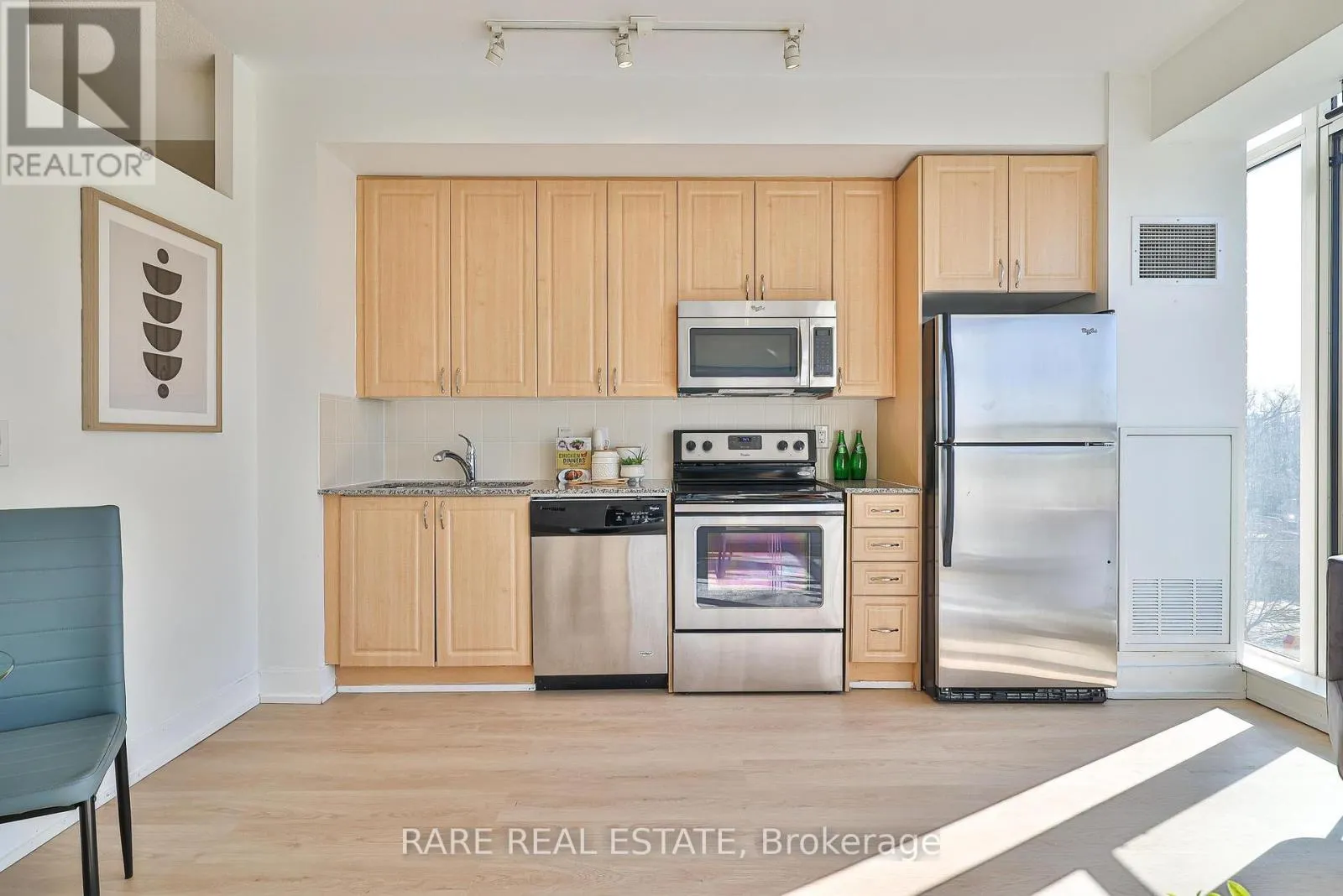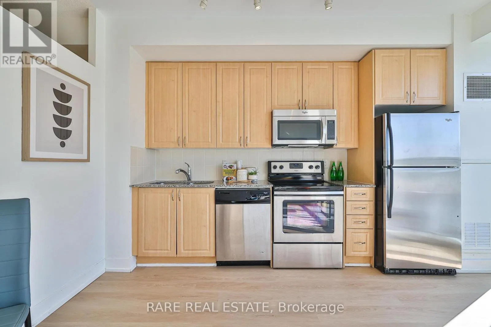 Cross Streets: Bloor St W / Parkside Dr. ** Directions: Please see Google Maps. Welcome to THE building to live in, located at 1638 Bloor St W. An exceptional one-bedroom plus den unit just steps from High Park an iconic Toronto greenspace. This recently updated modern suite offers a functional layout, perfect for entertaining or a cozy night in. The den provides an ideal amount of separation for a home office that can even be sectioned off. The unit features sleek finishes, floor-to-ceiling windows, and a double door Juliet balcony to let in plenty of fresh air. Situated just minutes away to lush greenery, walking trails, and gardens. Perfect for outdoor enthusiasts and nature lovers. But right before heading out, the neighborhood offers plenty of trendy cafes, restaurants, and boutique grocery stores all within walking distance. The building boasts top-notch amenities, including a fitness center, party room, rooftop terrace with BBQs, and more. Plus, you're right by Keele subway station for seamless commuting. Don't miss this rare opportunity in this sought-after neighborhood! (id:27476)