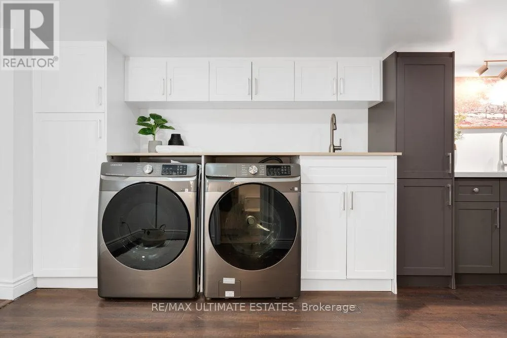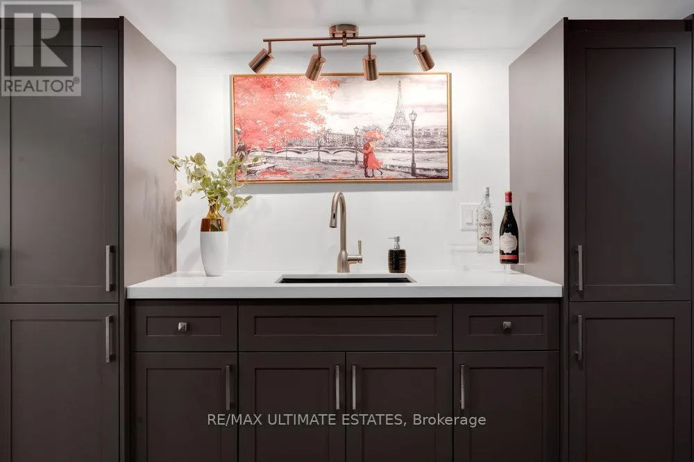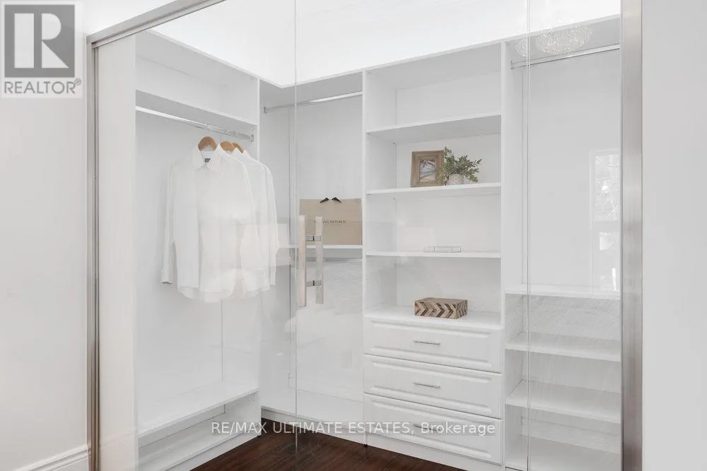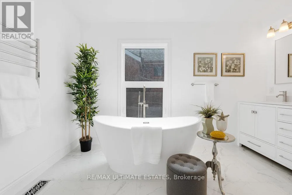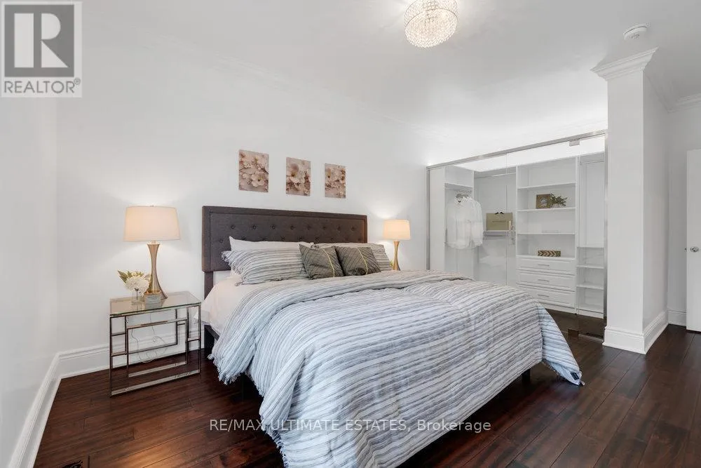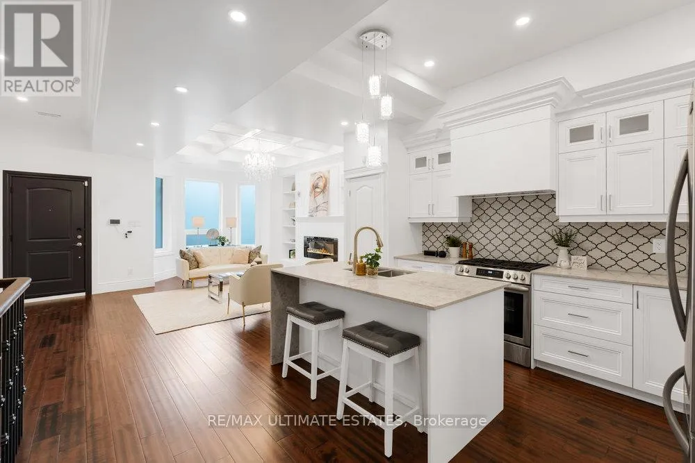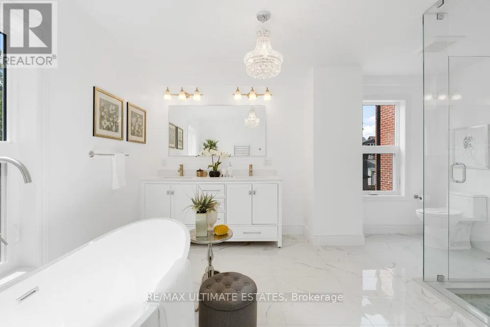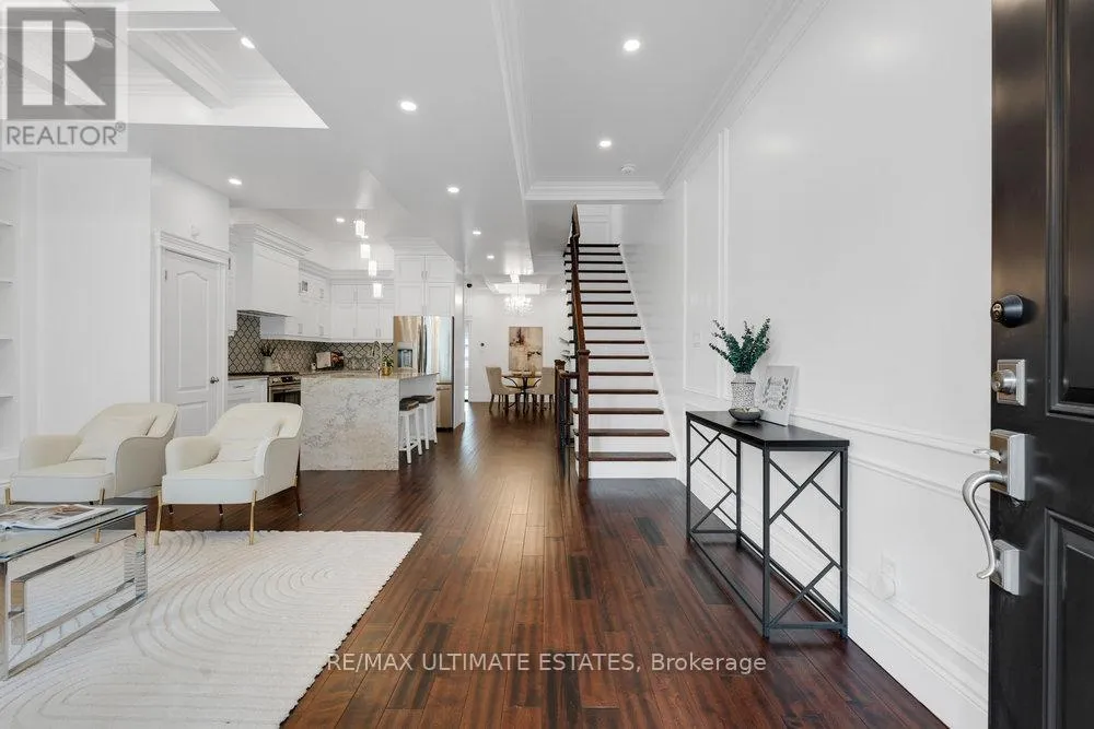 BATHURST & QUEEN Located in the heart of downtown Toronto, this luxury estate is perfectly positioned across from Alexandra Park and steps from the University of Toronto, OCAD University, Toronto Western Hospital and the Financial District, in the Trinity Bellwood neighbourhood. Wake up every morning to the scenery of a beautiful park across the street, with a view of the CN Tower peaking above the trees. Offering unmatched access to downtown living with privacy and exclusivity, this home is a true masterpiece. COMPLETELY UPDATED STRUCTURE, PLUMBING, ELECTRICAL AND HVAC TO APPROVED BUILDING CODE STANDARDS, this house is meticulously renovated (over $500K) with no expense spared. The open-concept main floor features crystal chandeliers, soaring coffered ceilings, and gleaming hardwood floors. The chef's kitchen, equipped with premium smart appliances, features full height custom cabinetry, luxurious Caesarstone granite countertops, and a spacious center island with a dramatic waterfall edge and bistro-style seating. Upstairs, the primary suite is a serene sanctuary with a custom walk-in closet, and a personal luxurious oasis spa retreat main bathroom, complete with rainfall shower head, large soaker tub, heated floors, and towel warmer. The finished basement offers flexible space, including a private in-law suite with its own entrance, ideal for multigenerational living or rental income. Outside, enjoy a private garden oasis and a two-car garage with app-controlled automatic doors and EV charger, permitted for future conversion into a coach house. This home also offers top-of-the-line security, with 24/7 camera coverage, reinforced steel doors, and state-of-the-art features for peace of mind. A rare opportunity to own a refined and luxurious home in one of Toronto's most desired neighbourhoods. (id:27476)