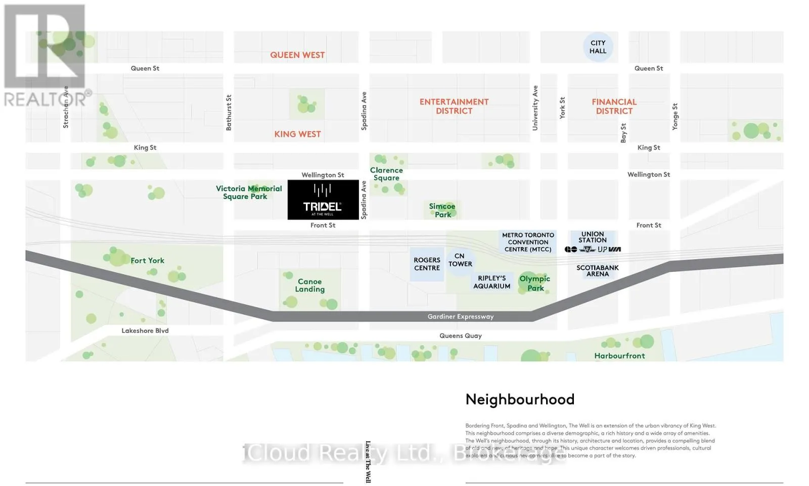 Cross Streets: Spadina Ave and Front St. W. ** Directions: North of Front Street West and west of Spadina Avenue. Live in style at The Well by Tridel, Toronto's most sought-after new downtown address. This spacious 2 bed + den, 2 bath suite (998 sq. ft.) features modern open-concept living with a clear west-facing view of the outdoor pool and lounge. The bright, functional layout includes a designer kitchen with premium cabinetry, sleek finishes, and smart details like floor-mounted outlets for effortless convenience. Enjoy resort-inspired amenities such as a state-of-the-art fitness centre, rooftop terraces, and 24-hour concierge service. Perfectly located at 480 Front St W, steps to Wellington Market, King West's top restaurants, boutique shopping, cafés, sports bars, and wellness studios, with easy access to the Gardiner Expressway, Union Station, and the Financial District. Experience luxury urban living at its finest - designed for professionals who value both style and convenience. (id:27476)