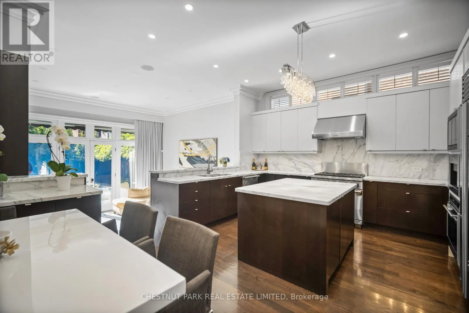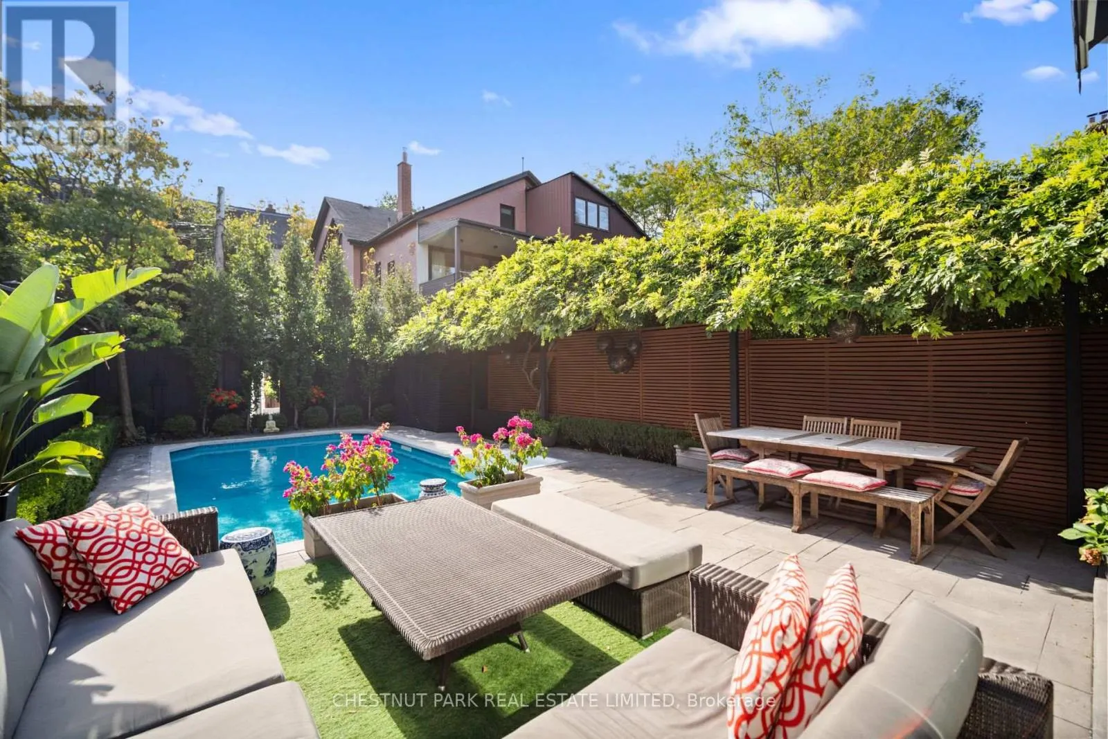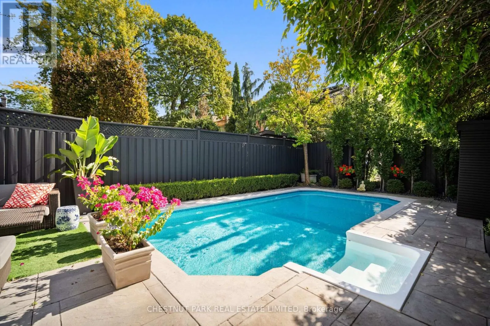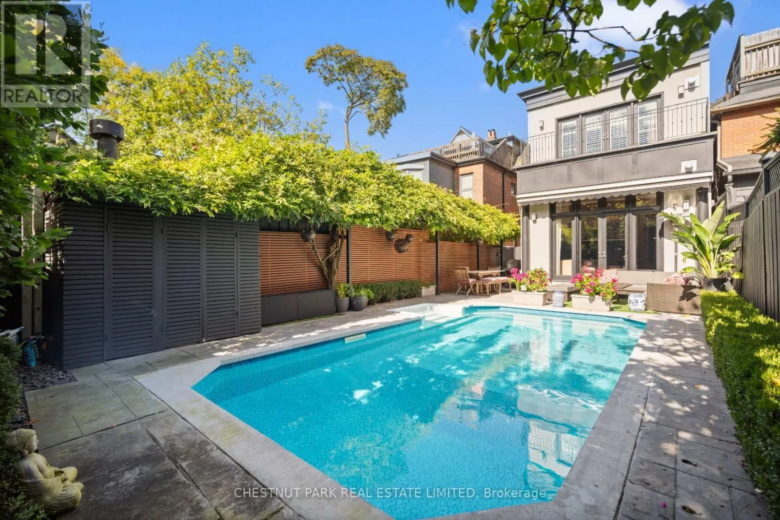 Avenue Road / Bedford Road Welcome to 47 Bernard Avenue, a fully renovated detached home perfectly positioned on a quiet, tree-lined street in Yorkville. Designed and reimagined by Richard Wengle, this property combines urban convenience with private amenities, including a gorgeous swimming pool, dedicated parking, and spacious modern interior. Inside, the elegant main floor has large formal rooms and 11' ceiling heights, creating an airy and sophisticated atmosphere. The heart of the home is the expansive kitchen and family room. The kitchen is equipped with marble countertops, high-end appliances, and a large central island, opening directly into the family area, which boasts a fireplace, extensive built-ins, 14' ceiling heights, and access to the backyard. Upstairs, the primary bedroom is a standout feature due to its exceptional size. It includes a private balcony, a generous walk-in closet, and a well-appointed five-piece ensuite bathroom. Three additional bedrooms and a modern bathrooms provide ample space for family or guests or home office. The finished lower level offers a versatile recreation room and significant storage space. Outside, the backyard serves as a private retreat, featuring a swimming pool and professional landscaping, perfect for relaxation and entertaining. With the best that Yorkville has to offer, known for its world-class shopping, fine dining, and vibrant cultural scene, all just a short walk from your door. This home presents a rare opportunity to enjoy a turn-key property in one of Toronto's most sought-after locations. (id:27476)