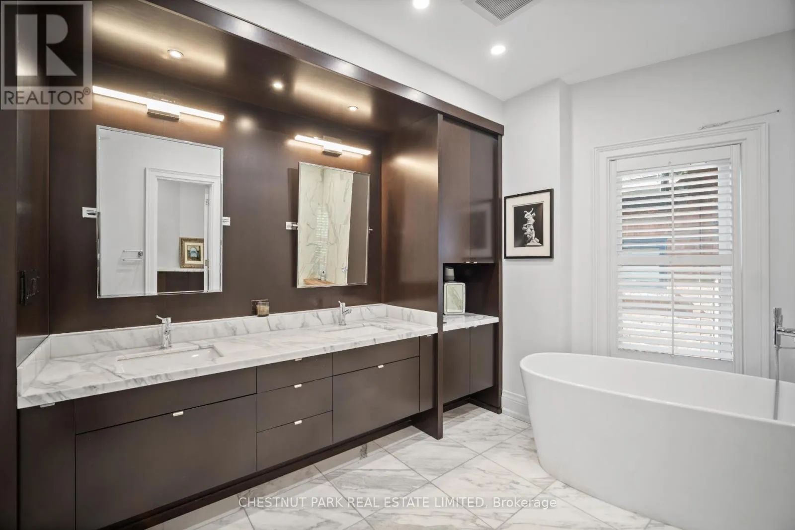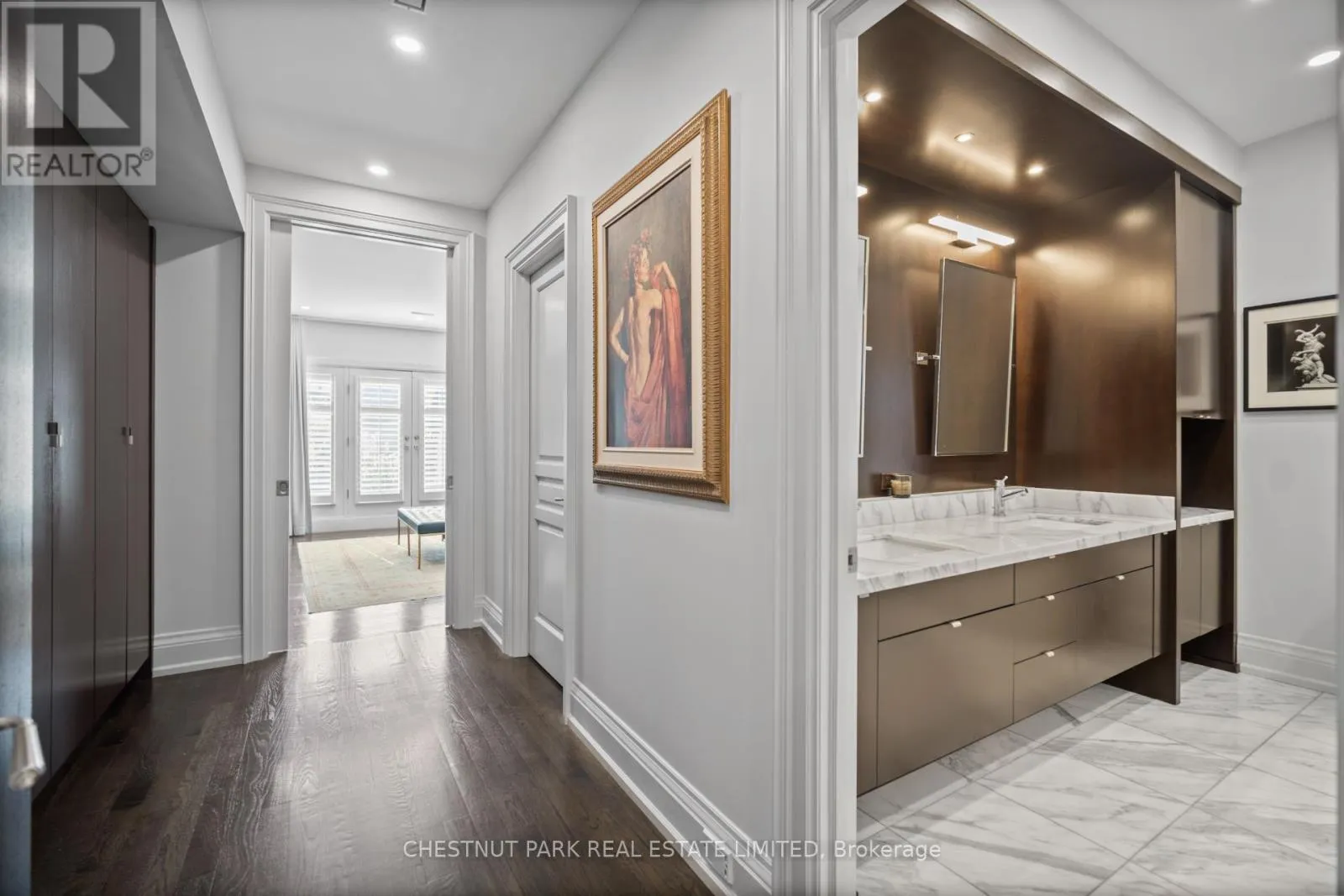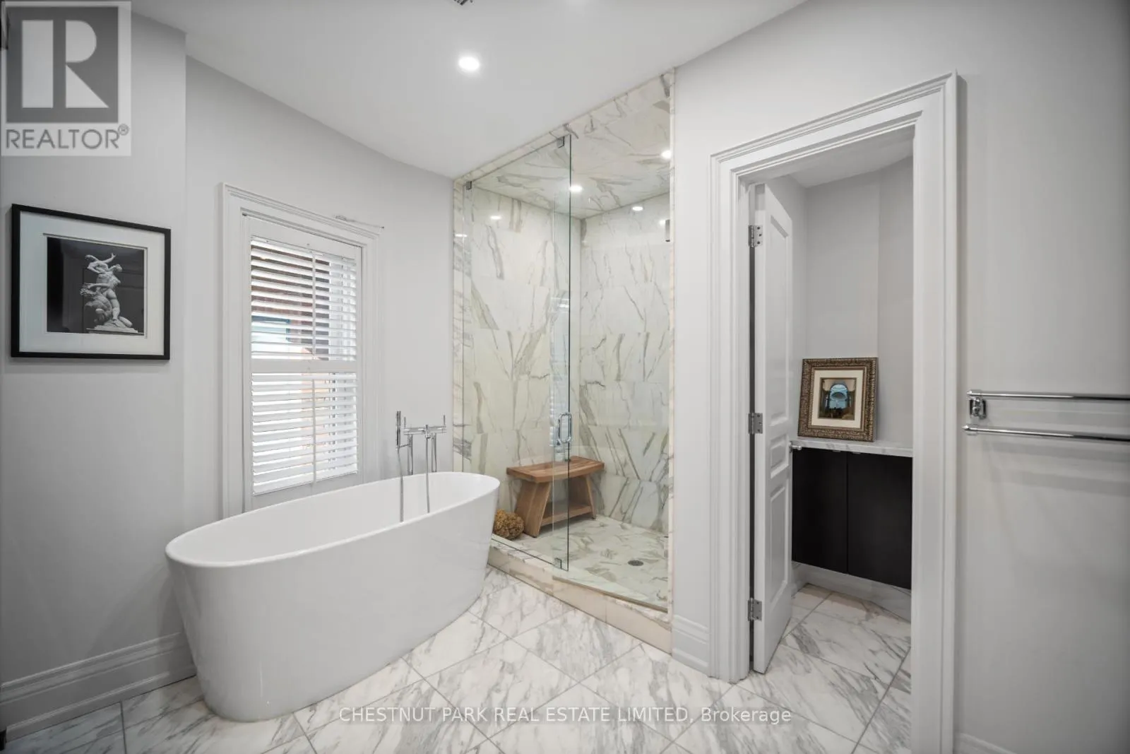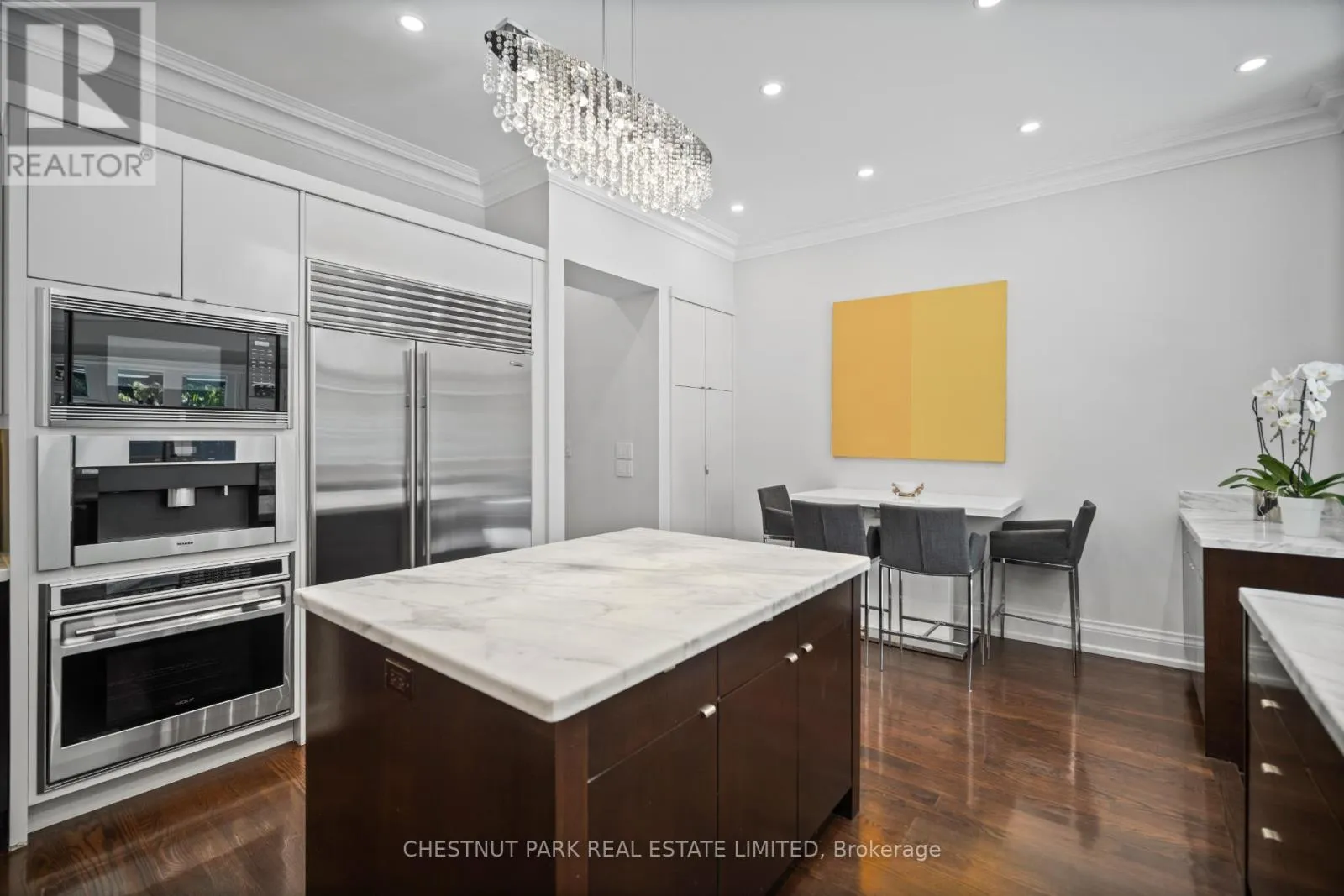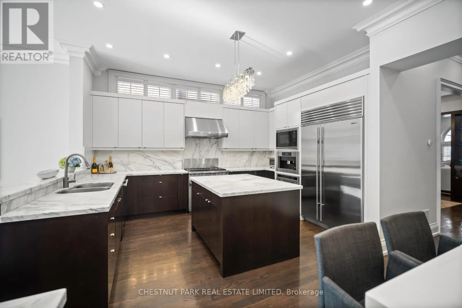 Avenue Road / Bedford Road Welcome to 47 Bernard Avenue, a fully renovated detached home perfectly positioned on a quiet, tree-lined street in Yorkville. Designed and reimagined by Richard Wengle, this property combines urban convenience with private amenities, including a gorgeous swimming pool, dedicated parking, and spacious modern interior. Inside, the elegant main floor has large formal rooms and 11' ceiling heights, creating an airy and sophisticated atmosphere. The heart of the home is the expansive kitchen and family room. The kitchen is equipped with marble countertops, high-end appliances, and a large central island, opening directly into the family area, which boasts a fireplace, extensive built-ins, 14' ceiling heights, and access to the backyard. Upstairs, the primary bedroom is a standout feature due to its exceptional size. It includes a private balcony, a generous walk-in closet, and a well-appointed five-piece ensuite bathroom. Three additional bedrooms and a modern bathrooms provide ample space for family or guests or home office. The finished lower level offers a versatile recreation room and significant storage space. Outside, the backyard serves as a private retreat, featuring a swimming pool and professional landscaping, perfect for relaxation and entertaining. With the best that Yorkville has to offer, known for its world-class shopping, fine dining, and vibrant cultural scene, all just a short walk from your door. This home presents a rare opportunity to enjoy a turn-key property in one of Toronto's most sought-after locations. (id:27476)