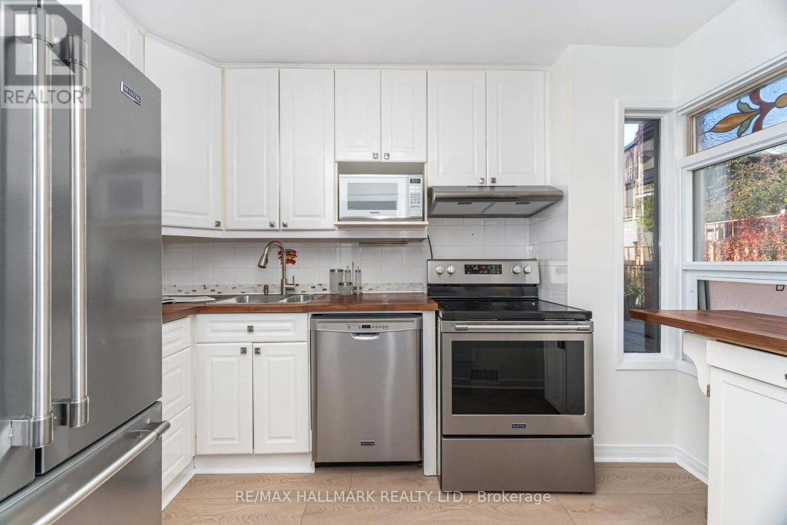 Cross Streets: S.Of Queen/Lake. ** Directions: Queen and Woodbine. Steps to Queen Street and the Boardwalk! This stunning, sun-filled Victorian-style townhome south of Queen captures the very best of Beach living. With exceptional curb appeal, manicured gardens, and a bright, airy interior, this residence seamlessly blends character, comfort, and modern updates. Soaring 11-foot ceilings in the living room, a cozy wood-burning fireplace, skylight, and elegant French doors create a warm, inviting atmosphere. The lower level offers versatile additional space ideal for a family room, home office, or gym. Featuring all-new flooring throughout, freshly painted interiors, and beautifully renovated bathrooms and kitchen, every detail has been thoughtfully refreshed. The private, gated south-facing garden oasis provides the perfect setting for entertaining, family BBQs, or unwinding with a glass of wine. Just steps to Queen Streets boutiques, cafés, and the iconic Boardwalk, this home delivers the ultimate in urban beach living. (id:27476)