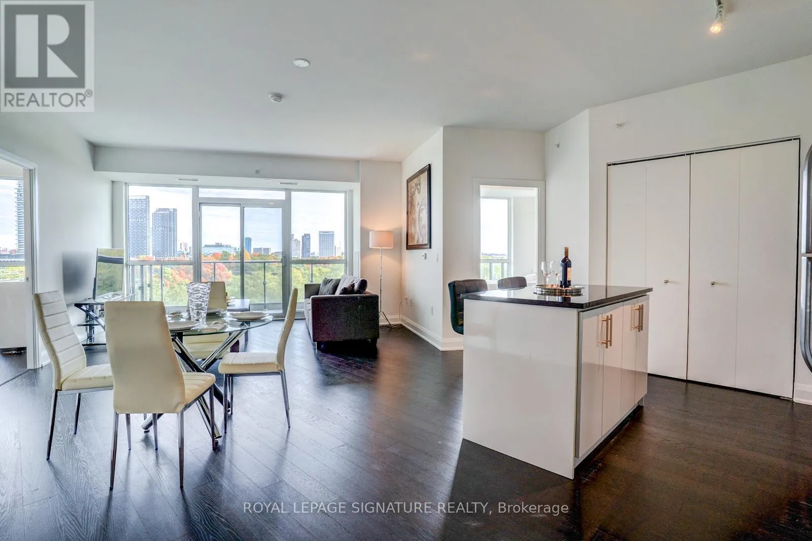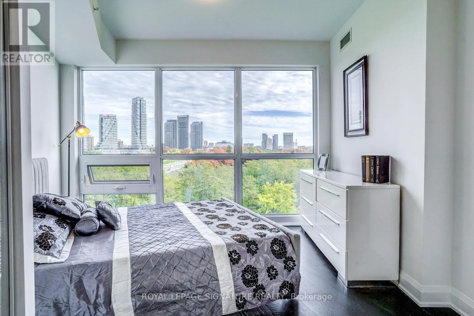 Eglinton & Leslie Discover urban oasis living in this stunning East York high-rise condo. This Sun filled, East Facing condo is Nestled amidst lush greenery. This modern unit offers breathtaking city and park views through floor-to-ceiling windows. The open-concept layout features sleek dark hardwood floors, a contemporary kitchen with stainless appliances, and a spacious living area perfect for entertaining. Enjoy the building's luxurious amenities, including a stylish lobby and fireplace lounge. Step outside to find yourself surrounded by nature, with easy access to parks, trails, and the Don Valley. Yet you're just minutes from vibrant shops, restaurants, and transit options. Experience the best of city living with a tranquil escape - your sanctuary in the sky awaits. (id:27476)