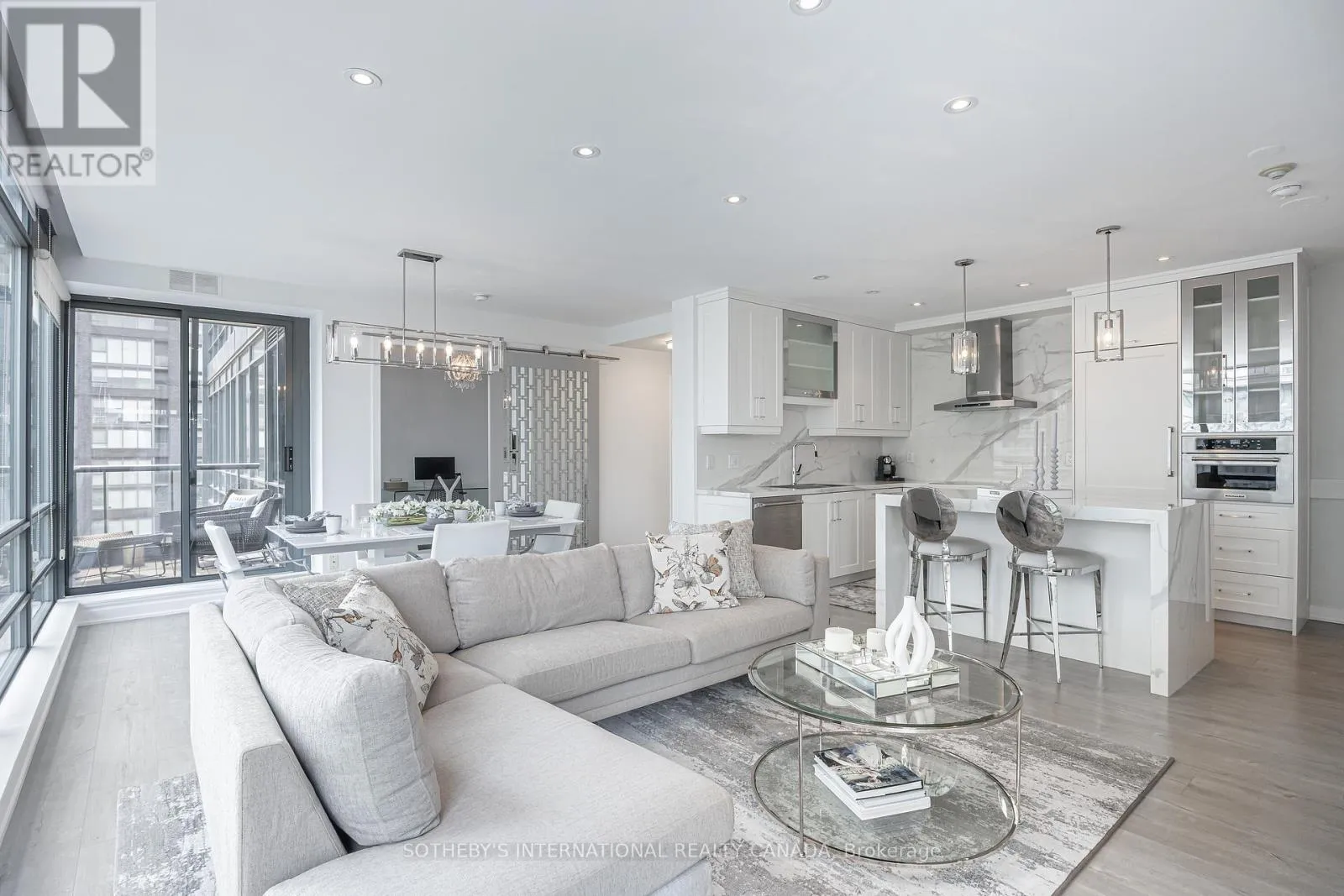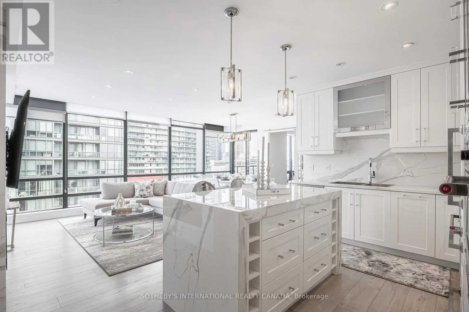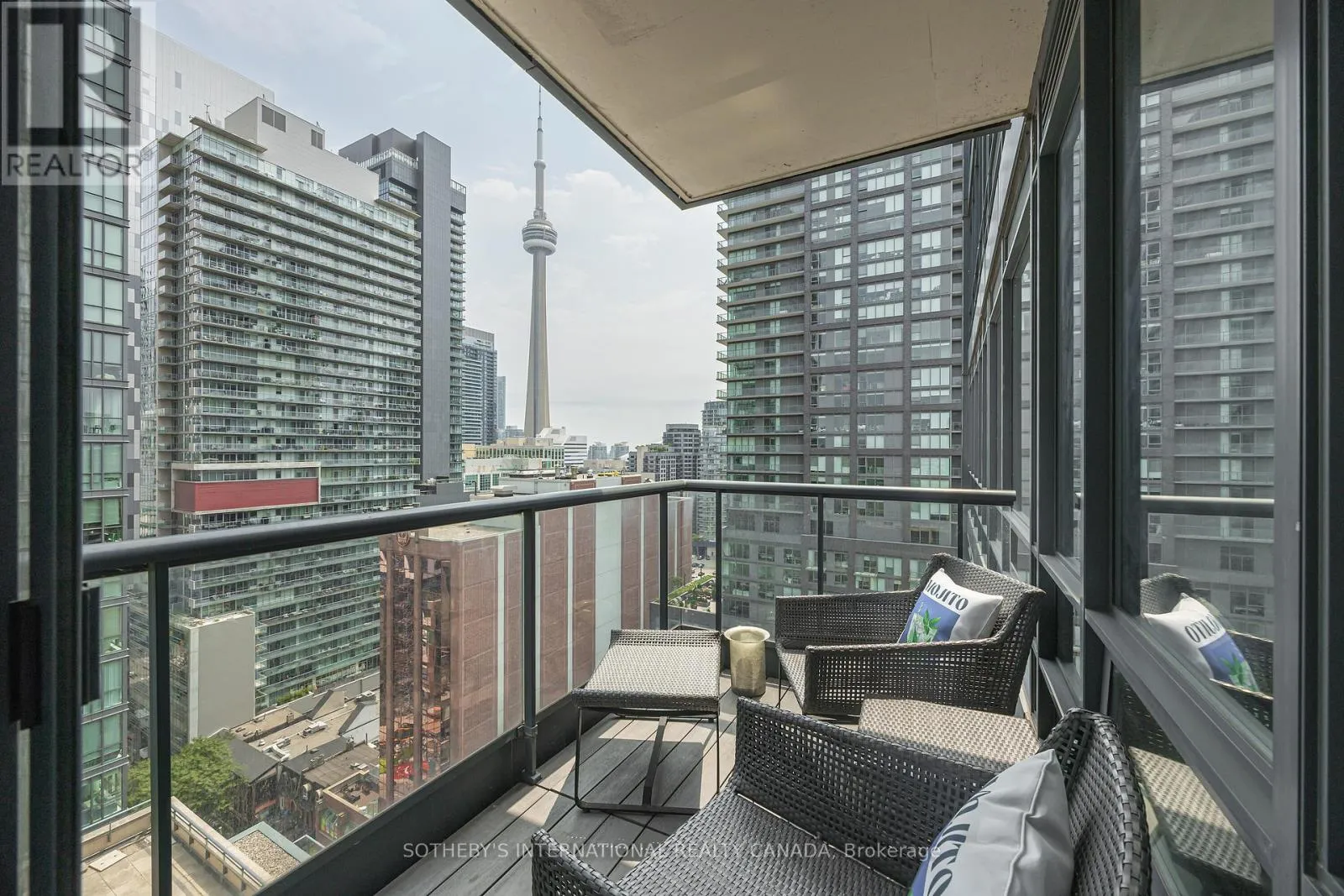 Cross Streets: King and Spadina. ** Directions: Please follow your GPS. The 'Hudson' On King Street West and This Wonderful Fully Renovated And Furnished Suite. Featuring Floor-To-Ceiling/Wall-To-Wall Windows & Two Balconies. East And South Facing View. 9 Foot Ceilings .No Expenses Spared On This Reno With High End FinishesThroughout - Ideal For Entertaining. Huge Breakfast Bar. 2 Separate Balconies. First Class Building. Walk To Financial & Entertainment Districts, Theaters and Restaurants. (id:27476)