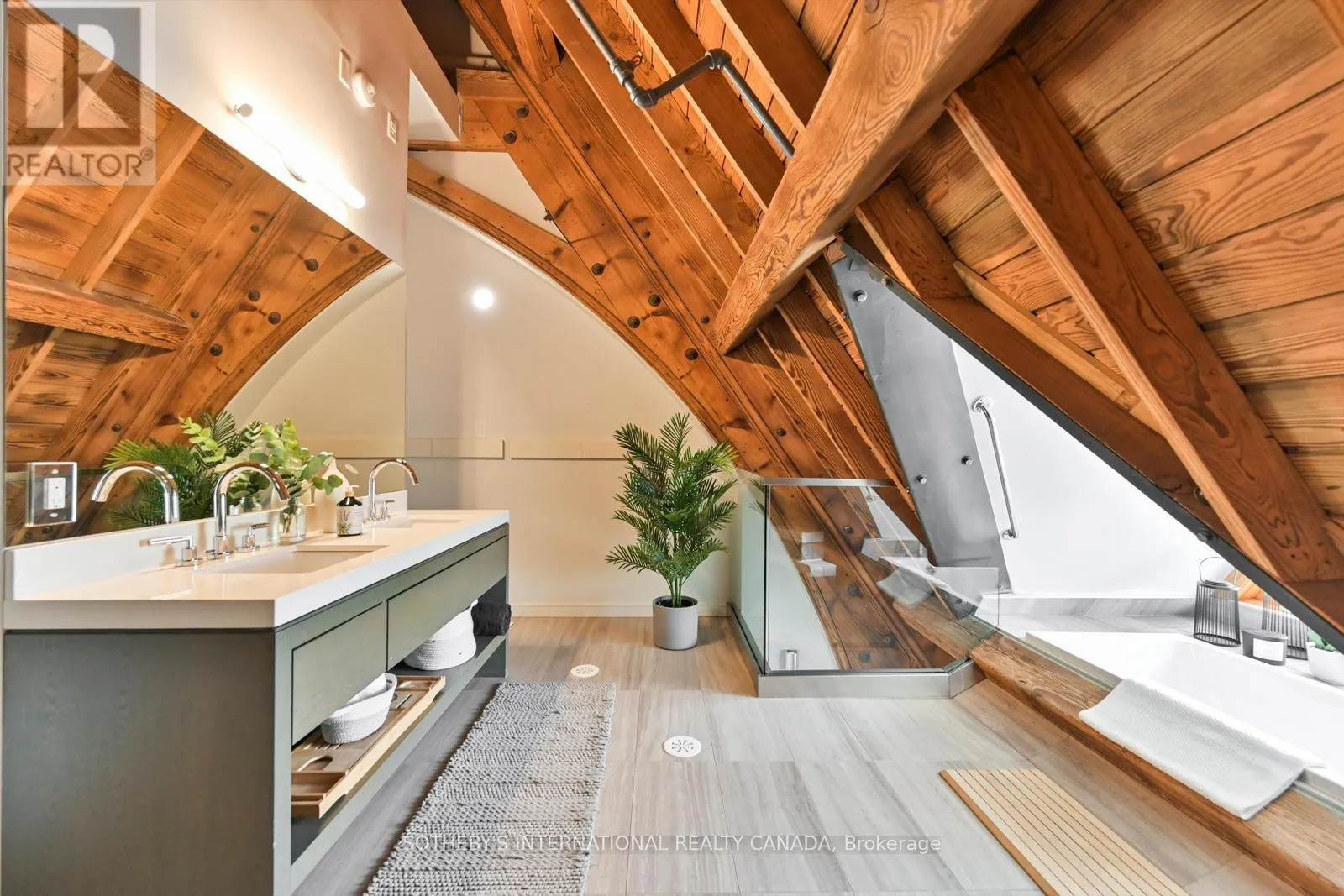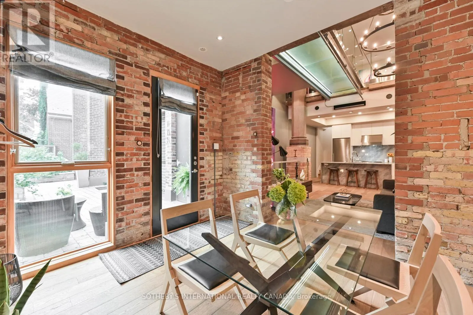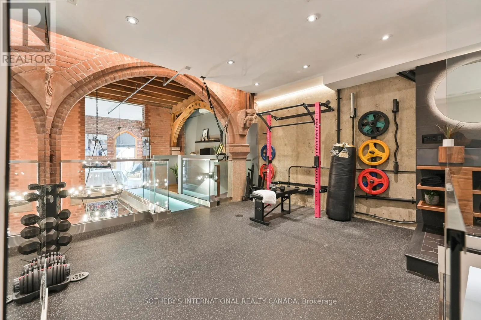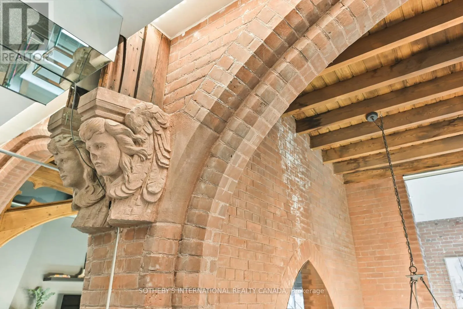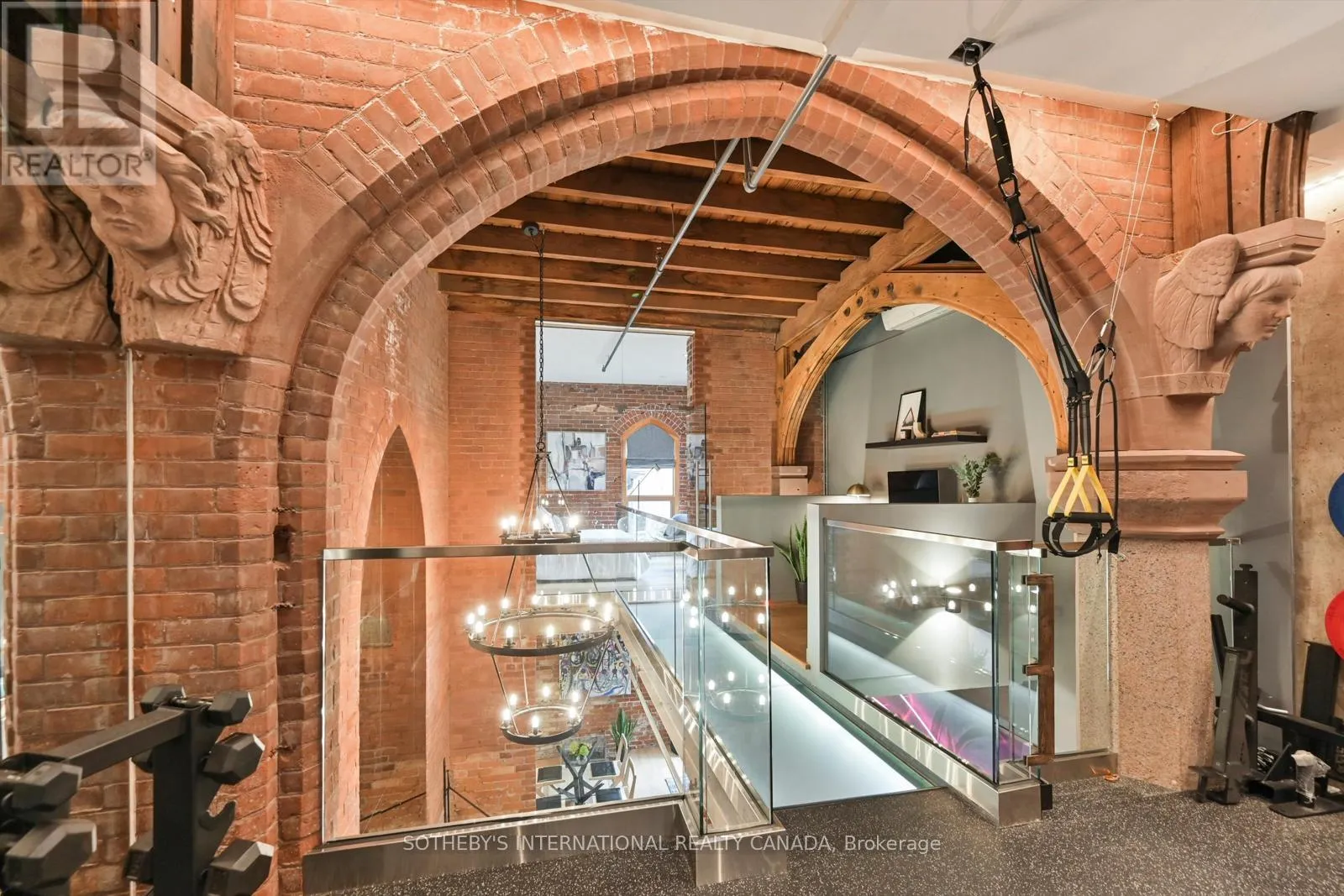 Cross Streets: Bloor & Dovercourt. ** Directions: Please, follow your GPS. Magnificent 4 storey Townhome carved from a 1914 Neo-Gothic Church, creating one of Toronto's most spectacular landmark Church conversions. Meticulously restored, preserving the historical details while incorporating modern updates, this Heritage property is a true masterpiece. Even the old bell tower was preserved! Tucked away in a discreet courtyard, Townhome 7 offers soaring cathedral ceilings, original intricate wooden details, exposed original brick masonry, wooden trusses, stone columns, gothic brick arches, an illuminated custom catwalk, workout area with ensuite shower, spacious Primary 3rd floor bedroom, a luxurious 4th floor 5 piece ensuite and custom built-in storage spaces. The Lower Level has a Mud Room/Storage area with direct access to the private, underground oversized parking space set up for electric charging. This unit was built to be the most secluded within the development and there is little to no neighbouring noise. There is nothing to compare to this special space! **EXTRAS** Just steps to the popular neighbourhood of Bloor & Dovercourt, the infamous Ossington Strip, local shops, restaurants, public transportation, and easy access to Downtown. This is a rare opportunity to own a piece of Toronto history. Please, note there are highly co-operative tenants who are leaving in a month.* (id:27476)