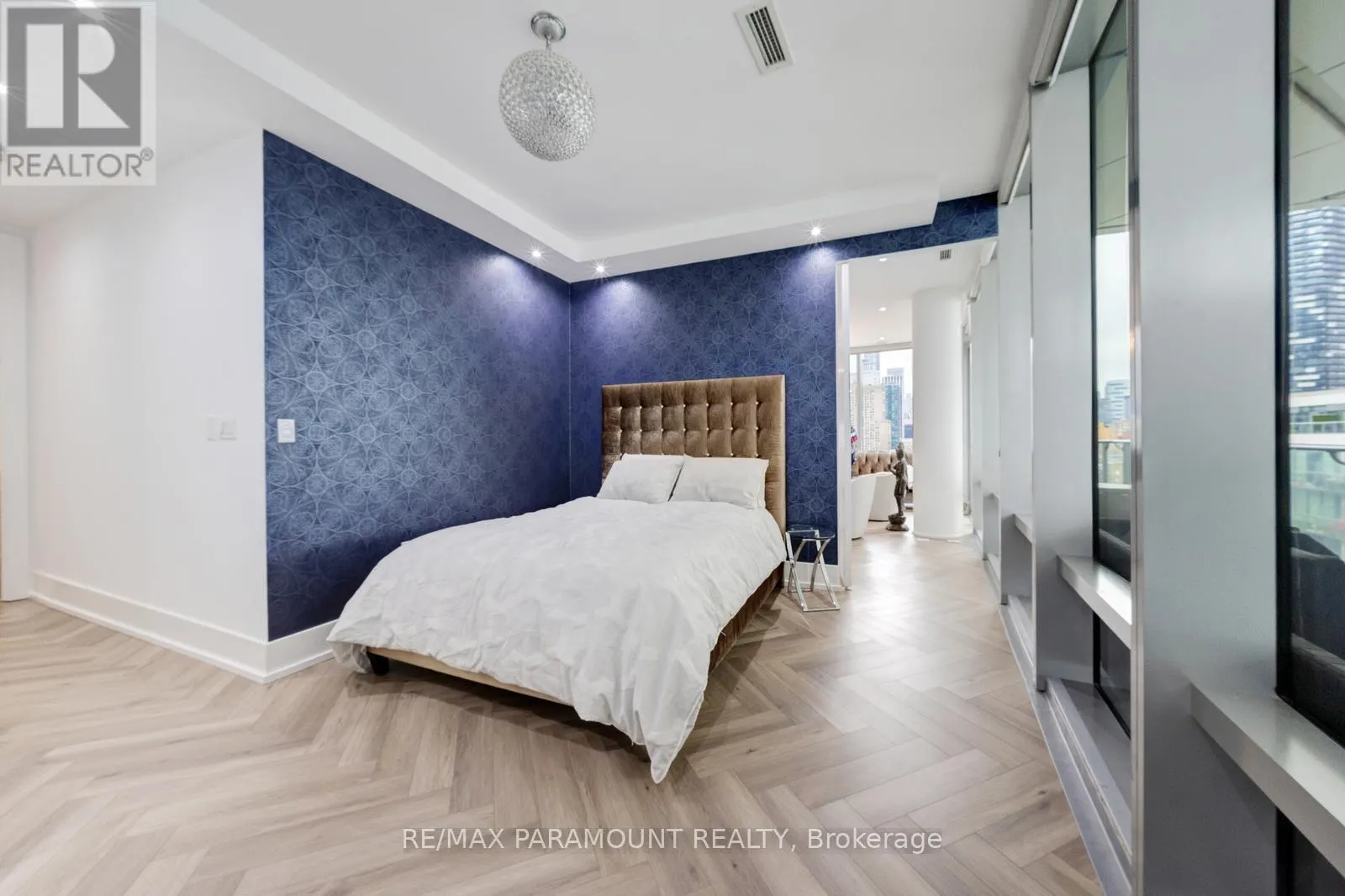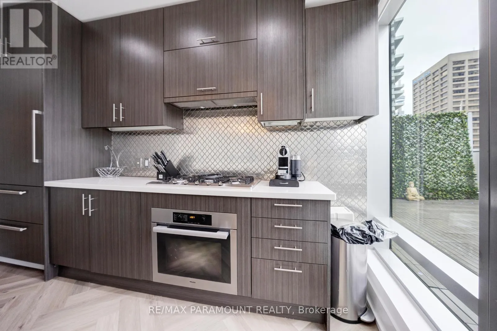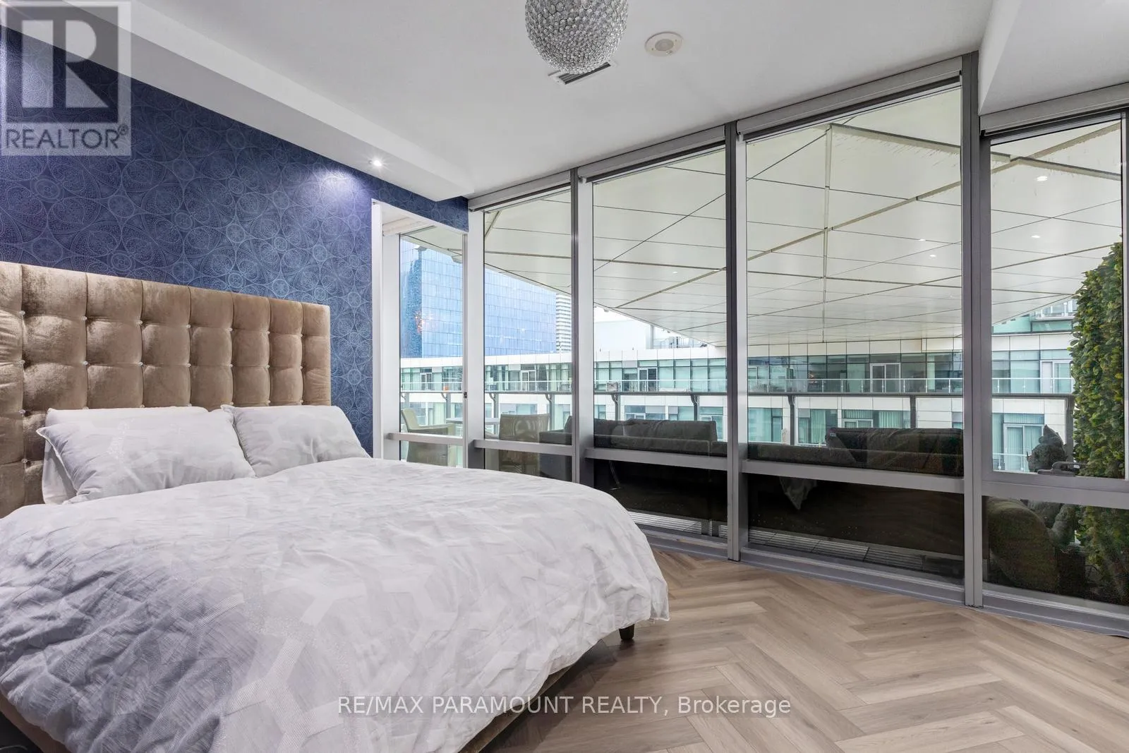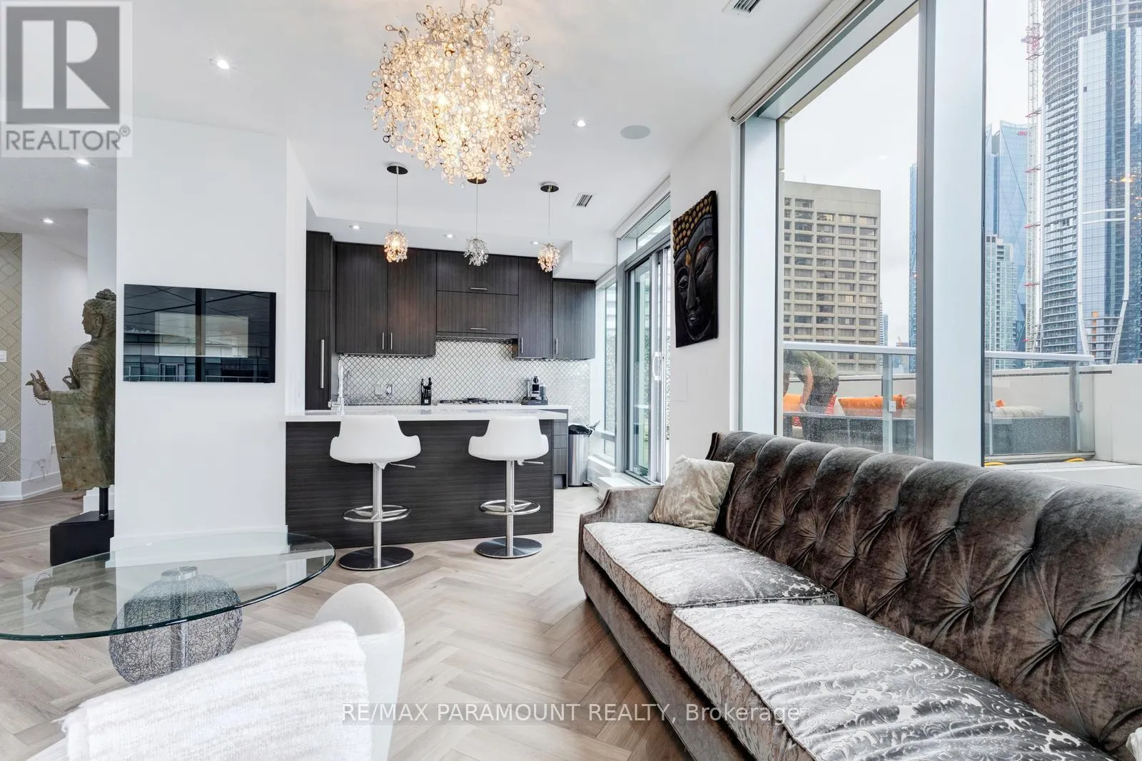 Yonge St & Queens Quay E Stunning Designer Residence with Private Terraces & Smart Home Features. Step into this spectacular, upgraded home featuring a grand living room illuminated by elegant pot lights and enhanced with automated floor-to-ceiling curtains. Soak in the natural light from expansive windows, and enjoy seamless indoor-outdoor living with a walk-out to your large private terrace. The modern chef-inspired kitchen is a true show stopper equipped with a Downsview Kitchen, sleek modern-profile cabinetry, Miele appliances, gas cooking, granite countertops, and a stylish breakfast bar perfect for entertaining or everyday living. Enjoy 10-foot ceilings and newly installed pre-engineered herringbone hardwood flooring throughout the home, adding warmth and sophistication to every room. Live luxuriously with Control4 Smart Home automation, allowing you to manage lighting, temperature, blinds, and entertainment from your smartphone. Brand new TVs are included, and a high-end built-in sound system delivers an immersive audio experience. All bathrooms are outfitted with automated heated Everest toilets, and custom-made furniture throughout the home is thoughtfully designed and included in the sale. The oversized den offers a perfect, separate space for your home office ideal for remote work or creative pursuits. Both balconies feature elegant LED lighting, creating a magical ambiance in the evenings. Enjoy resort-style amenities, including indoor and outdoor pools, sauna, games room, billiards room, and scenic boardwalk access. Located just minutes from the Financial District, QEW, and DVP, convenience meets lifestyle in this exclusive offering. Bonus: Seller is open to Vendor Take Bank Financing with just 5% down. A Rare Opportunity!!! (id:27476)