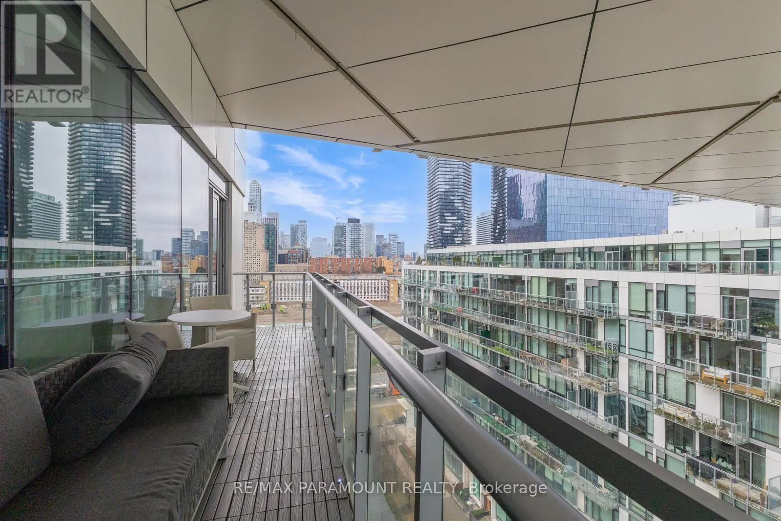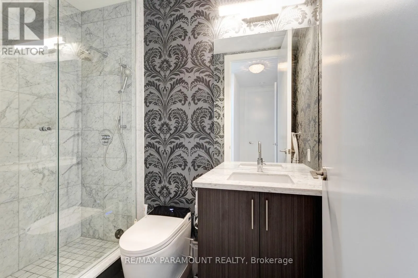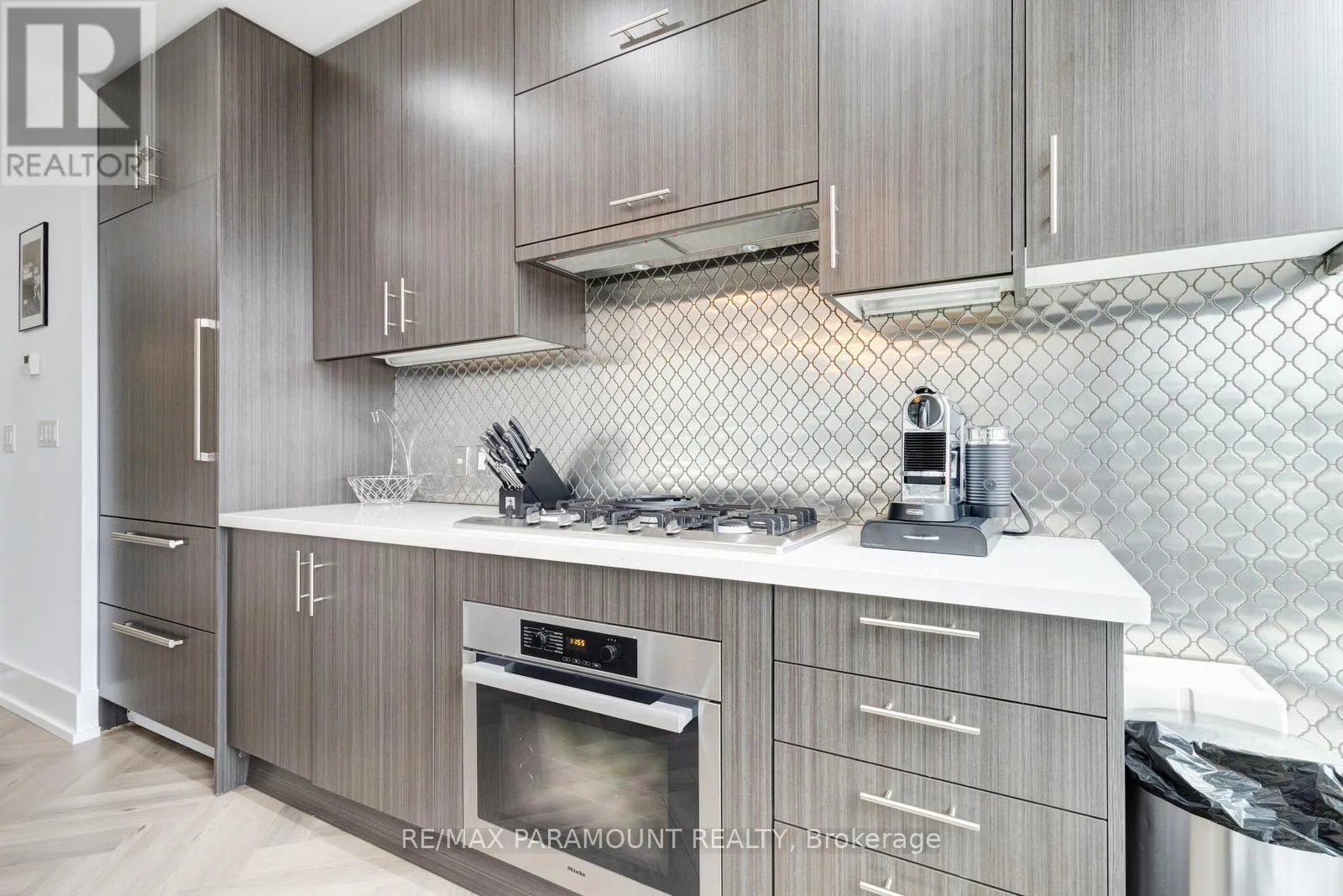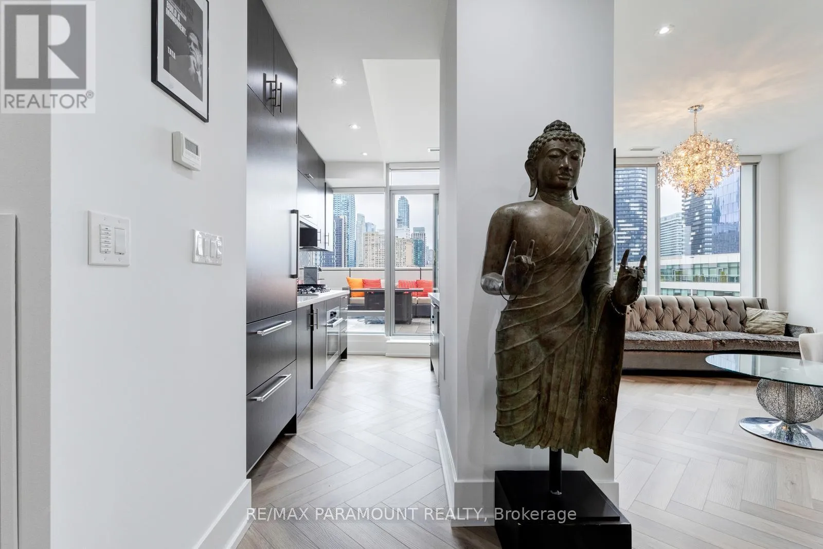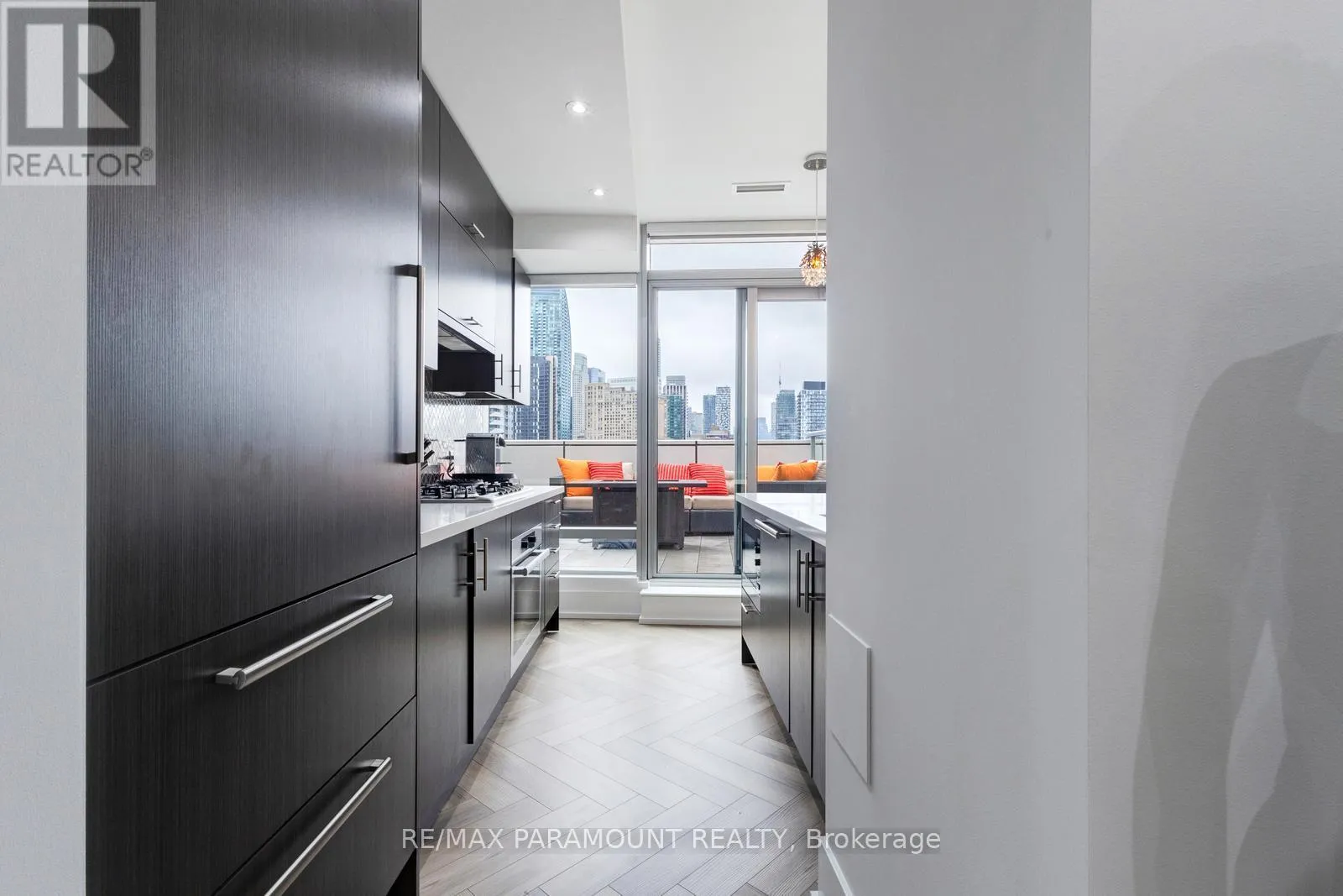 Yonge St & Queens Quay E Stunning Designer Residence with Private Terraces & Smart Home Features. Step into this spectacular, upgraded home featuring a grand living room illuminated by elegant pot lights and enhanced with automated floor-to-ceiling curtains. Soak in the natural light from expansive windows, and enjoy seamless indoor-outdoor living with a walk-out to your large private terrace. The modern chef-inspired kitchen is a true show stopper equipped with a Downsview Kitchen, sleek modern-profile cabinetry, Miele appliances, gas cooking, granite countertops, and a stylish breakfast bar perfect for entertaining or everyday living. Enjoy 10-foot ceilings and newly installed pre-engineered herringbone hardwood flooring throughout the home, adding warmth and sophistication to every room. Live luxuriously with Control4 Smart Home automation, allowing you to manage lighting, temperature, blinds, and entertainment from your smartphone. Brand new TVs are included, and a high-end built-in sound system delivers an immersive audio experience. All bathrooms are outfitted with automated heated Everest toilets, and custom-made furniture throughout the home is thoughtfully designed and included in the sale. The oversized den offers a perfect, separate space for your home office ideal for remote work or creative pursuits. Both balconies feature elegant LED lighting, creating a magical ambiance in the evenings. Enjoy resort-style amenities, including indoor and outdoor pools, sauna, games room, billiards room, and scenic boardwalk access. Located just minutes from the Financial District, QEW, and DVP, convenience meets lifestyle in this exclusive offering. Bonus: Seller is open to Vendor Take Bank Financing with just 5% down. A Rare Opportunity!!! (id:27476)