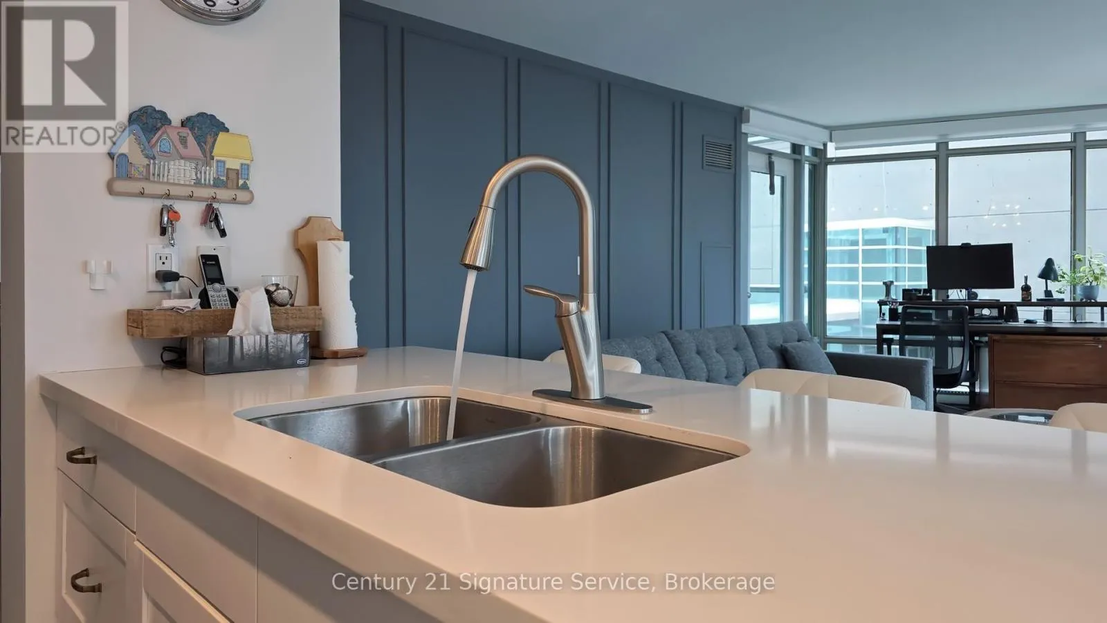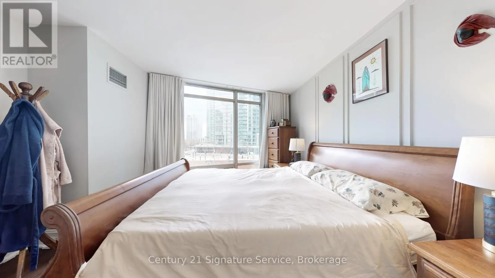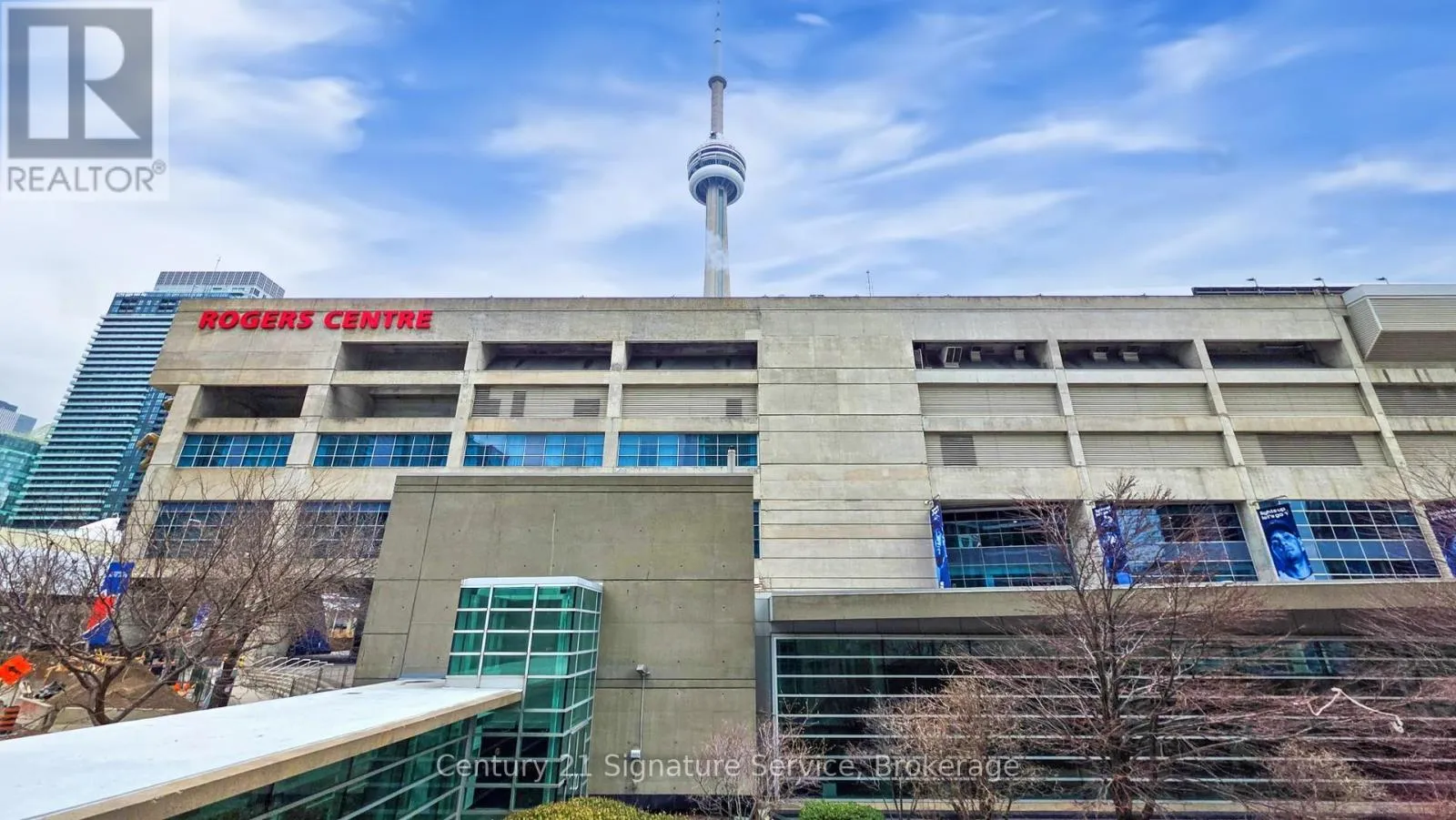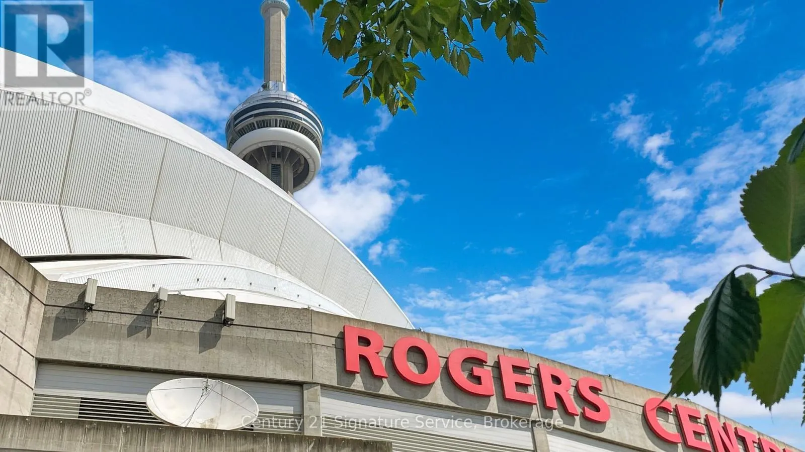 Spadina Ave. & Bremner Blvd. Rarely offered - the largest unit in the Optima Condos! Enter through the sleek lobby with 24-hour concierge service for security and seamless delivery handling.Welcome to Suite 315, a bright, open-concept living space wrapped in floor-to-ceiling windows with unobstructed southeast views of the city skyline and Lake Ontario. Natural light fills the unit throughout the day, complemented by new automated blinds (2024) for effortless ambiance control.The modern kitchen features a large centre island perfect for dining or entertaining, quartz countertops, generous cabinetry, and a custom built-in extension. New engineered hardwood floors (2024) and fresh paint (2025) create a warm, contemporary feel throughout.The primary bedroom fits a king bed and includes a spacious closet plus a private 3-piece ensuite. The second bedroom features two built-in closets and a large window overlooking the balcony, ideal for morning coffee or evening relaxation. A versatile den offers flexibility-ideal as a home office, reading nook, or easily converted into a third bedroom with French doors.Attention baseball fans! The Rogers Centre is just steps away-catch every game without worrying about traffic or parking. With the waterfront, King West, and Queen West nearby, enjoy endless restaurants, shops, and entertainment all within walking distance.This suite offers a flawless mix of spaciousness, style, and prime downtown convenience. (id:27476)