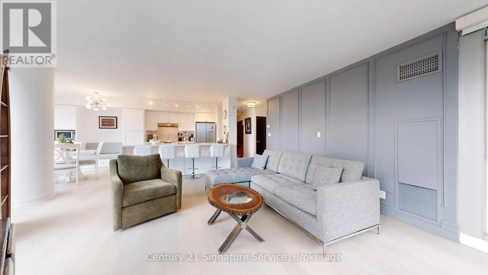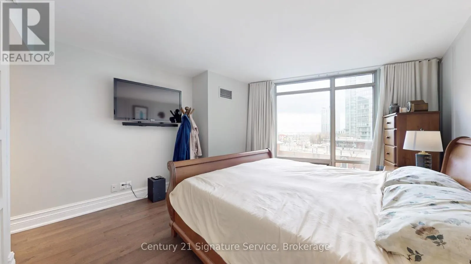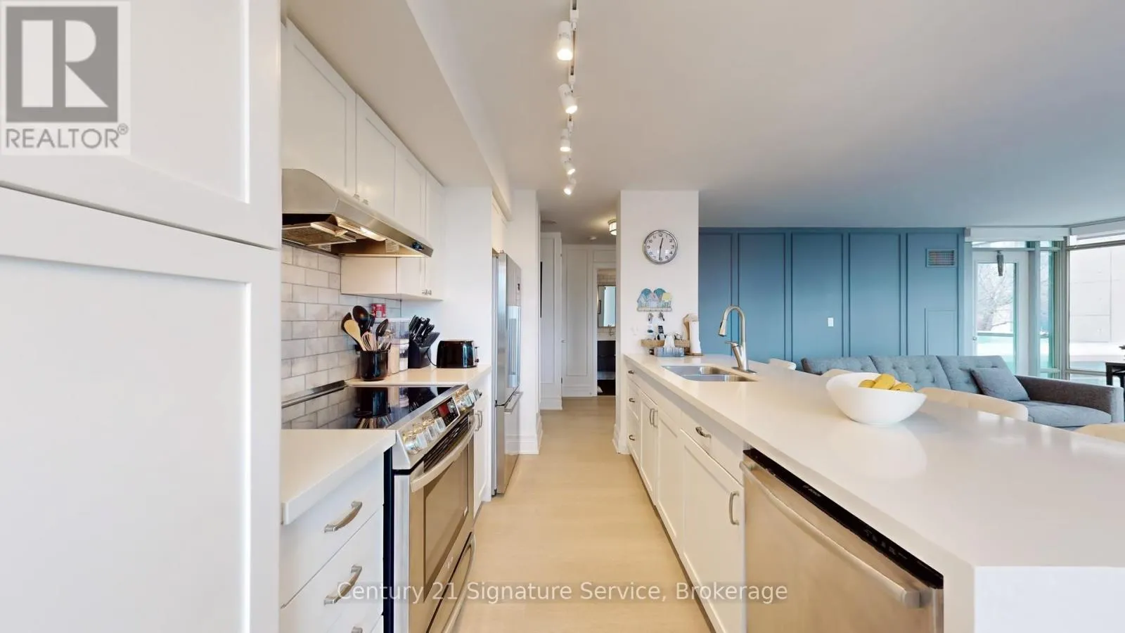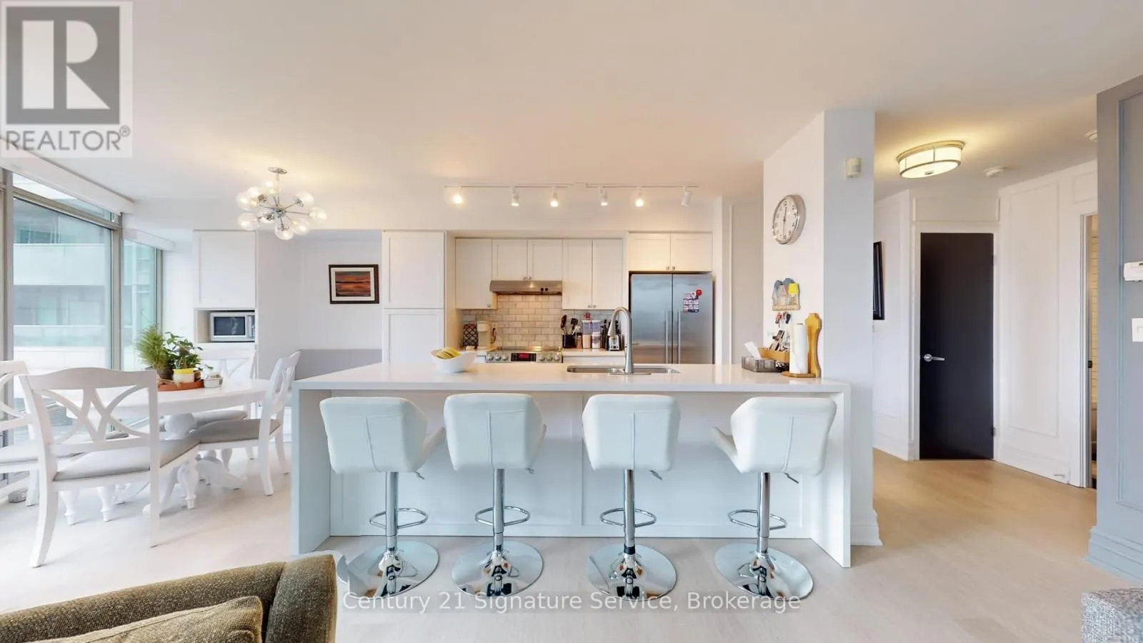 Spadina Ave. & Bremner Blvd. Rarely offered - the largest unit in the Optima Condos! Enter through the sleek lobby with 24-hour concierge service for security and seamless delivery handling.Welcome to Suite 315, a bright, open-concept living space wrapped in floor-to-ceiling windows with unobstructed southeast views of the city skyline and Lake Ontario. Natural light fills the unit throughout the day, complemented by new automated blinds (2024) for effortless ambiance control.The modern kitchen features a large centre island perfect for dining or entertaining, quartz countertops, generous cabinetry, and a custom built-in extension. New engineered hardwood floors (2024) and fresh paint (2025) create a warm, contemporary feel throughout.The primary bedroom fits a king bed and includes a spacious closet plus a private 3-piece ensuite. The second bedroom features two built-in closets and a large window overlooking the balcony, ideal for morning coffee or evening relaxation. A versatile den offers flexibility-ideal as a home office, reading nook, or easily converted into a third bedroom with French doors.Attention baseball fans! The Rogers Centre is just steps away-catch every game without worrying about traffic or parking. With the waterfront, King West, and Queen West nearby, enjoy endless restaurants, shops, and entertainment all within walking distance.This suite offers a flawless mix of spaciousness, style, and prime downtown convenience. (id:27476)
