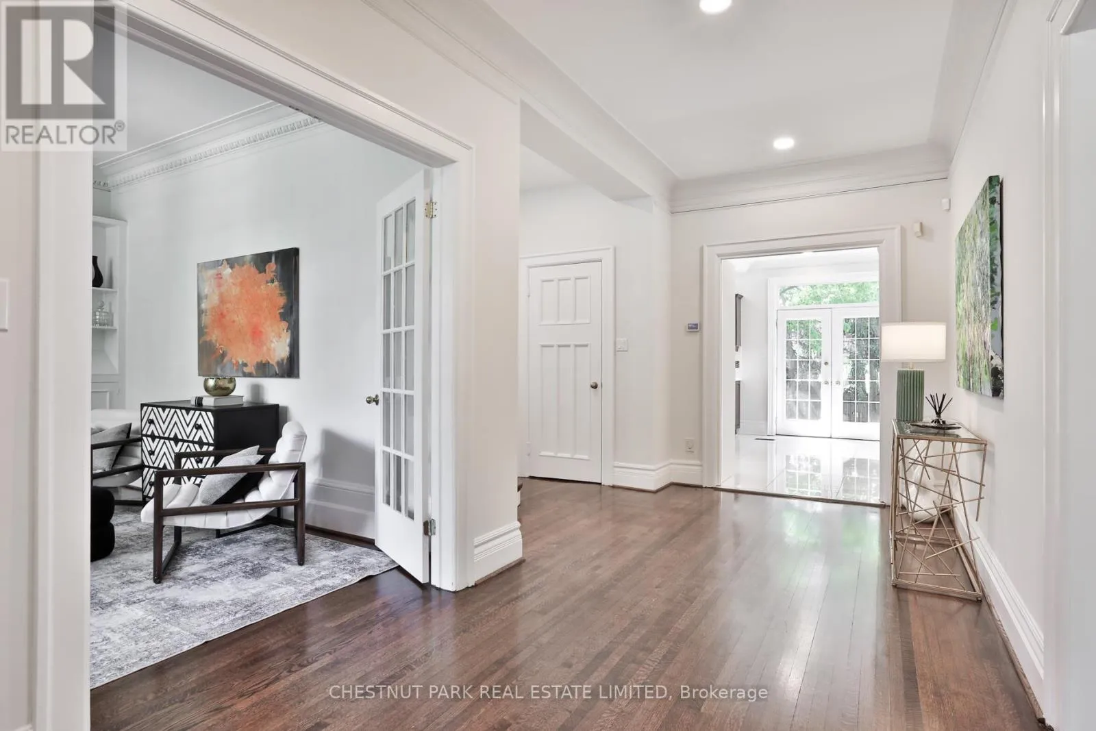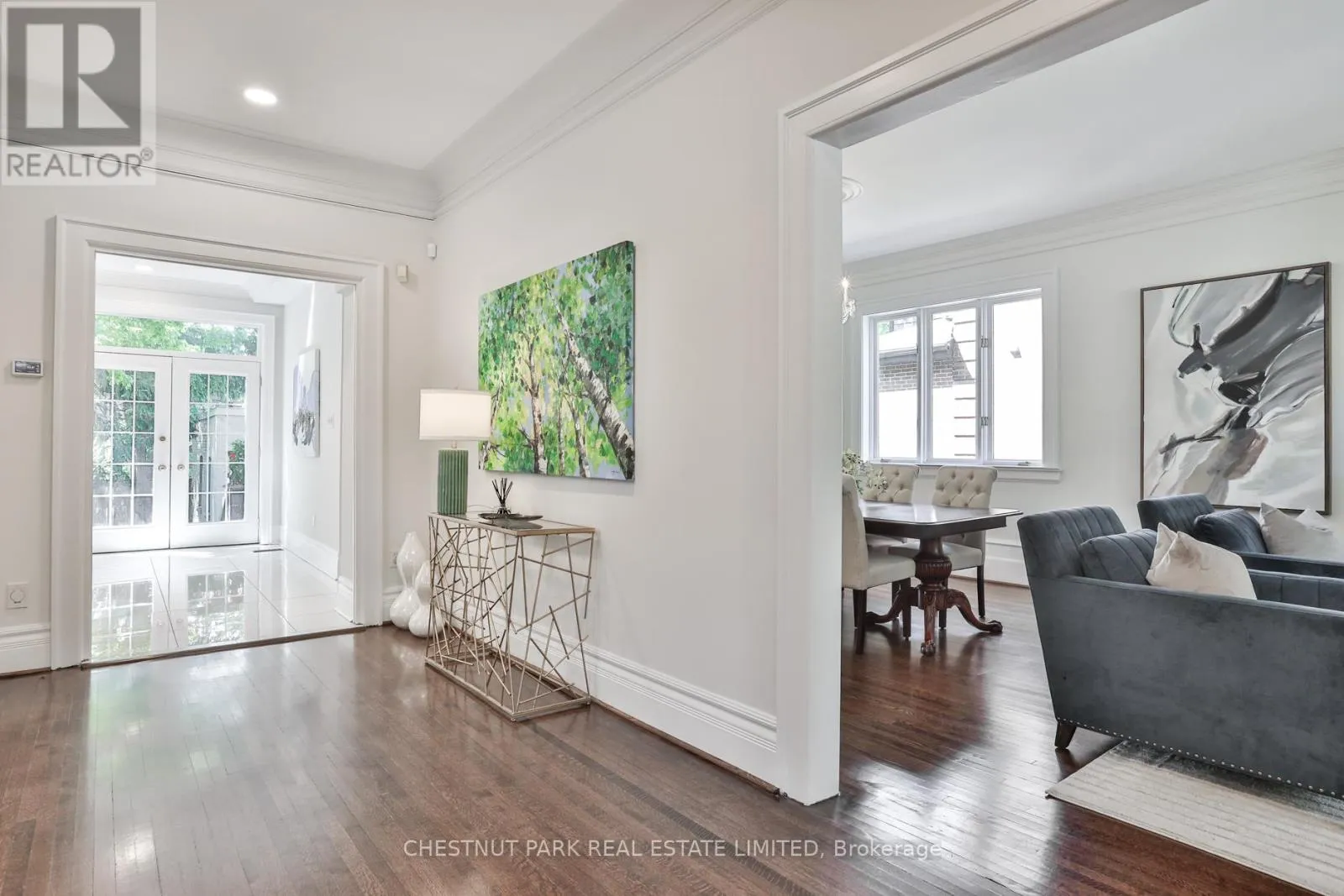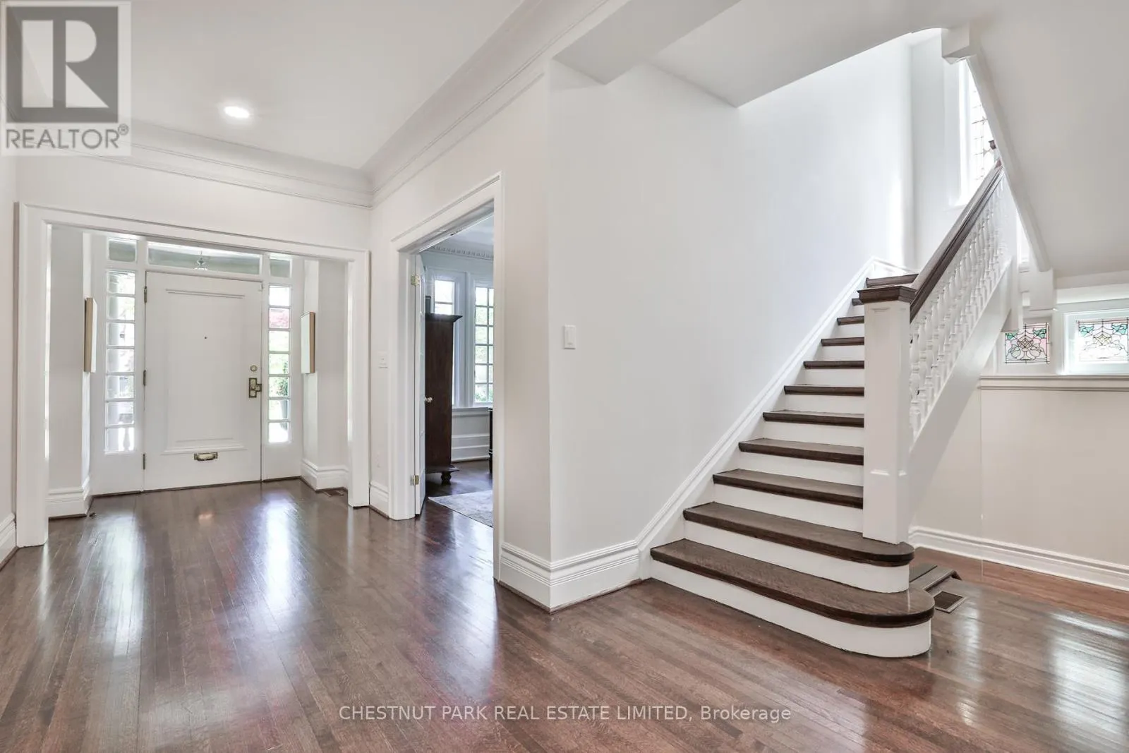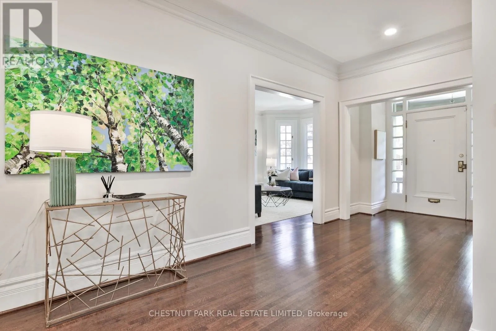 Cross Streets: West of Glen Road at Roxborough Drive. ** Directions: Glen Road at Roxborough Drive. Welcome to a timeless and handsome detached 3 storey heritage Georgian home in the heart of North Rosedale where classic elegance meets everyday comfort. This prestigious area surrounded by parks and ravines in close proximity to excellent private and public schools and access to downtown is ideal for those choosing a healthy family lifestyle. The beautifully landscaped front garden features stone paths flanked by beech trees, boxwood, and yews. Inside, high ceilings along with crown mouldings and two main floor wood-burning fireplaces create a warm, refined atmosphere. The main level showcases a formal living room and dining room, a family room, library and a bright eat-in kitchen and a main floor bathroom. Stained glass windows add beauty and character to the central staircase. The sunlit primary suite offers a fireplace, spacious dressing area and a luxurious 6-piece ensuite featuring a Bagno Italia soaker tub and a walk-in shower for 2! A second floor study with a fireplace and an additional bedroom with an ensuite bathroom complete this second level. The third level includes two generously sized bedrooms and an oversized bathroom. The lower level has a recreation room, fitness area, wine storage, and laundry. A private driveway with decorative pavers runs alongside the home, leading to a detached two-car garage at the rear. Enjoy the fenced south-facing garden with a spacious deck perfect for outdoor entertaining. Steps to Chorley Park, Rosedale Park, and Summerhill Market. Please click on virtual tour for a drone aerial view. (id:27476)