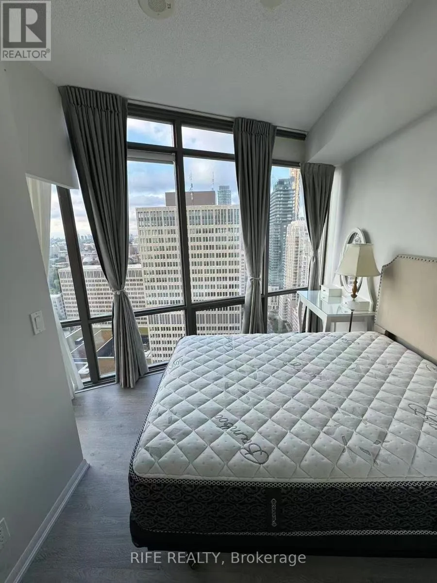 Bay & College Gorgeous Split 2 Bedroom Corner Unit At Burano Condos. 843 Sq Ft. 9'' Ceiling. Floor-To-Ceiling Windows And Wood Flooring Throughout. Wake Up To A Unobstructed North And West Panoramic Cn Tower And Downtown Views. Everything At Your Door Steps. 5 Min Walk To U Of T. Close To Bloor Shopping District & Yorkville, Financial District, Downtown Core. Students are welcomed.New Curtain and new floor , New Fridge, Furnished, Just Move In! (id:27476)