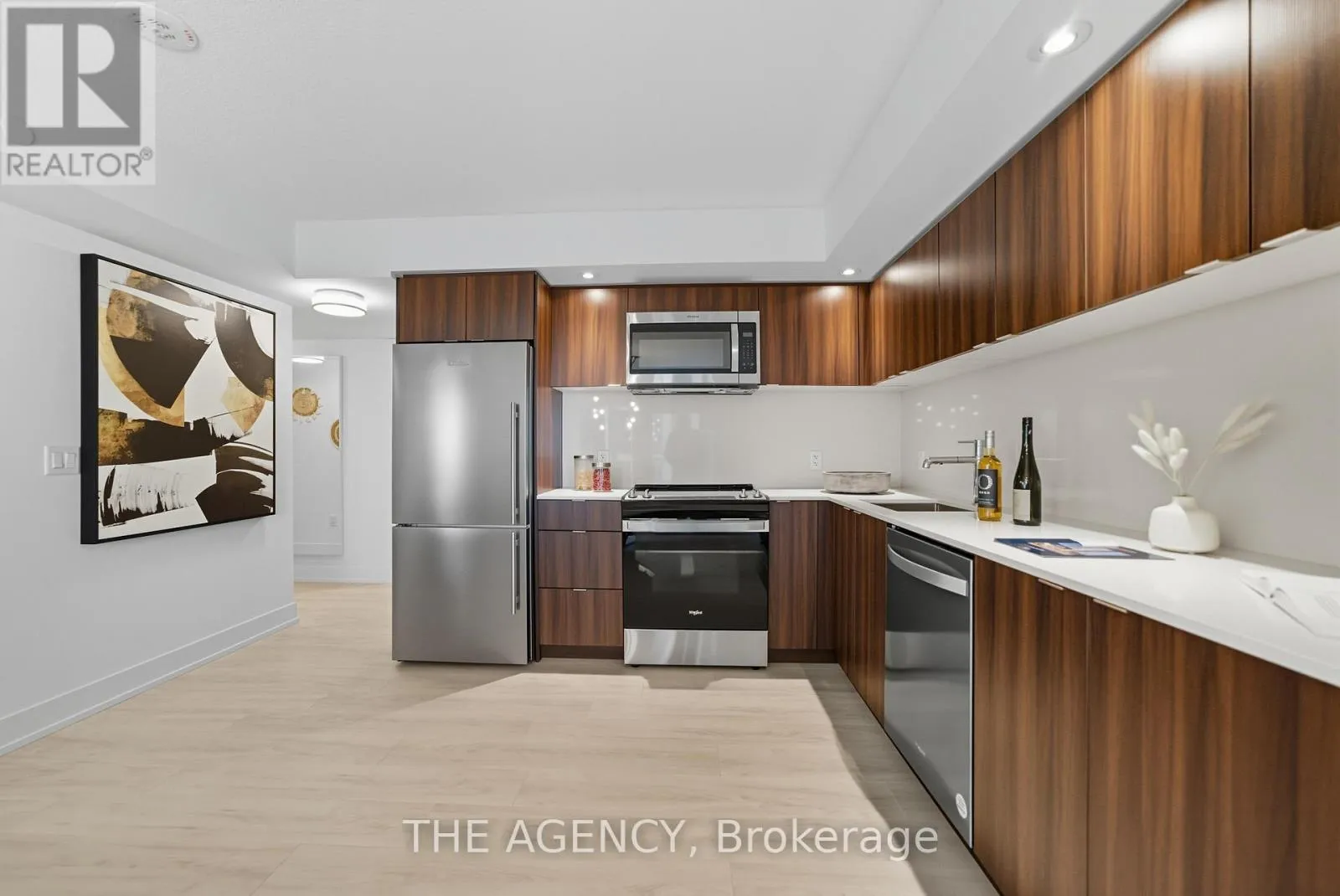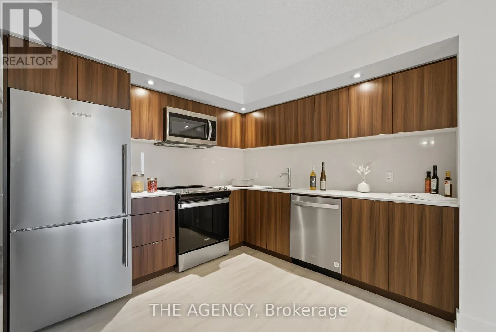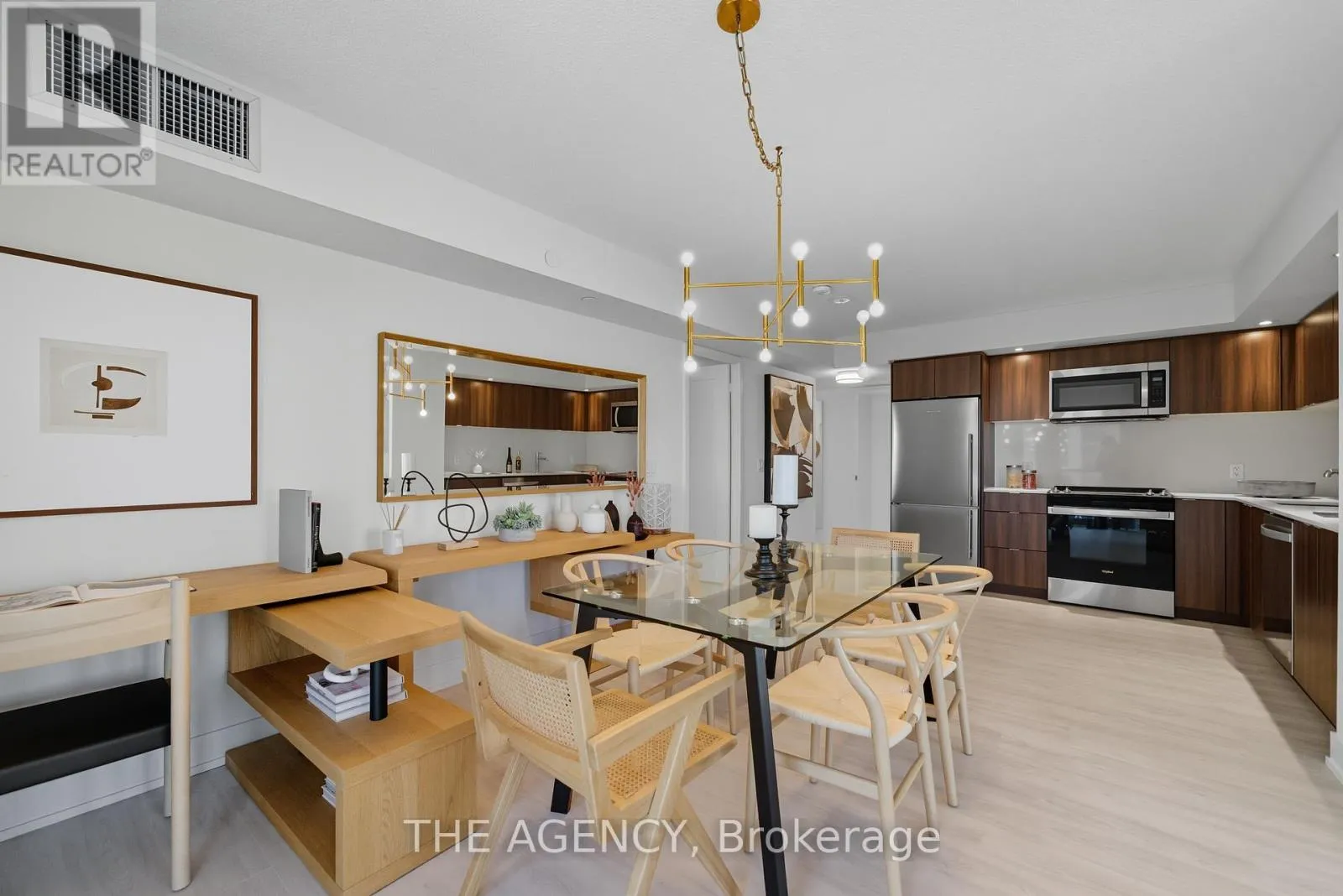 Hwy 427 & Eva Rd Welcome to 10 Eva Road #508, part of Tridel's highly sought-after Evermore at West Village community. This beautifully designed 2-bedroom, 2-bath suite offers a functional open-concept layout with well-defined spaces for dining, relaxing, and entertaining. A welcoming front foyer leads into the bright, open living area, highlighted by floor-to-ceiling windows and a seamless flow to the large balcony, perfect for morning coffee or evening downtime.The modern kitchen features sleek cabinetry, stainless steel appliances, and custom built-ins for added storage and style. The split-bedroom design provides privacy, with a spacious primary suite complete with a walk-in closet and ensuite, while both bathrooms showcase modern finishes and thoughtful details throughout. Residents enjoy access to exceptional amenities, including a state-of-the-art fitness centre, party rooms, a rooftop terrace, and a children's playground - offering something for every lifestyle. Ideally situated with easy access to Highway 427, the Gardiner, and beyond, Evermore delivers the perfect balance of comfort, convenience, and contemporary living. (id:27476)
