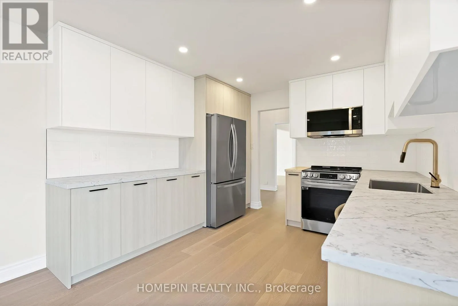 Cross Streets: Steeles Ave / Birchmount Rd. ** Directions: Refer to map. Rarely Offered Fully Renovated 4,200 + Sq Ft Residence with In-Law Suite & Income Potential! Set on an oversized pie-shaped lot in a quiet, family-friendly neighbourhood, this redesigned home features 4 + 3 bedrooms, 4 full bathrooms, and a versatile layout with 5 separate entrances-including a main entry, side walk-up, and 3 walkouts. Ideal for multi-generational families or investors seeking strong rental potential. Inside, discover 7-inch white oak hardwood floors, smooth ceilings, modern lighting, and a bright neutral palette. Enjoy two upgraded kitchens with quartz countertops, soft-close cabinetry, black hardware, and all-new stainless-steel appliances. Bathrooms showcase quartz counters and custom finishes with frameless glass showers. Three laundry areas feature built-ins with new washers and dryers. Perfectly located near Agincourt GO, Hwy 401/404, parks, schools, community centres, and shopping. An exceptional move-in-ready home in a prime Toronto location. (id:27476)