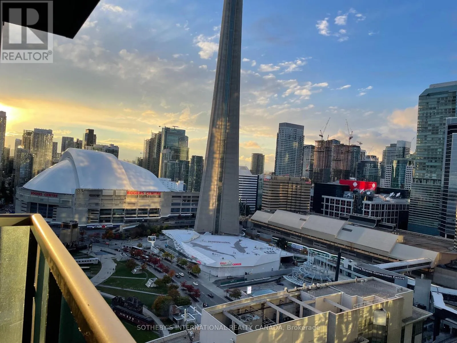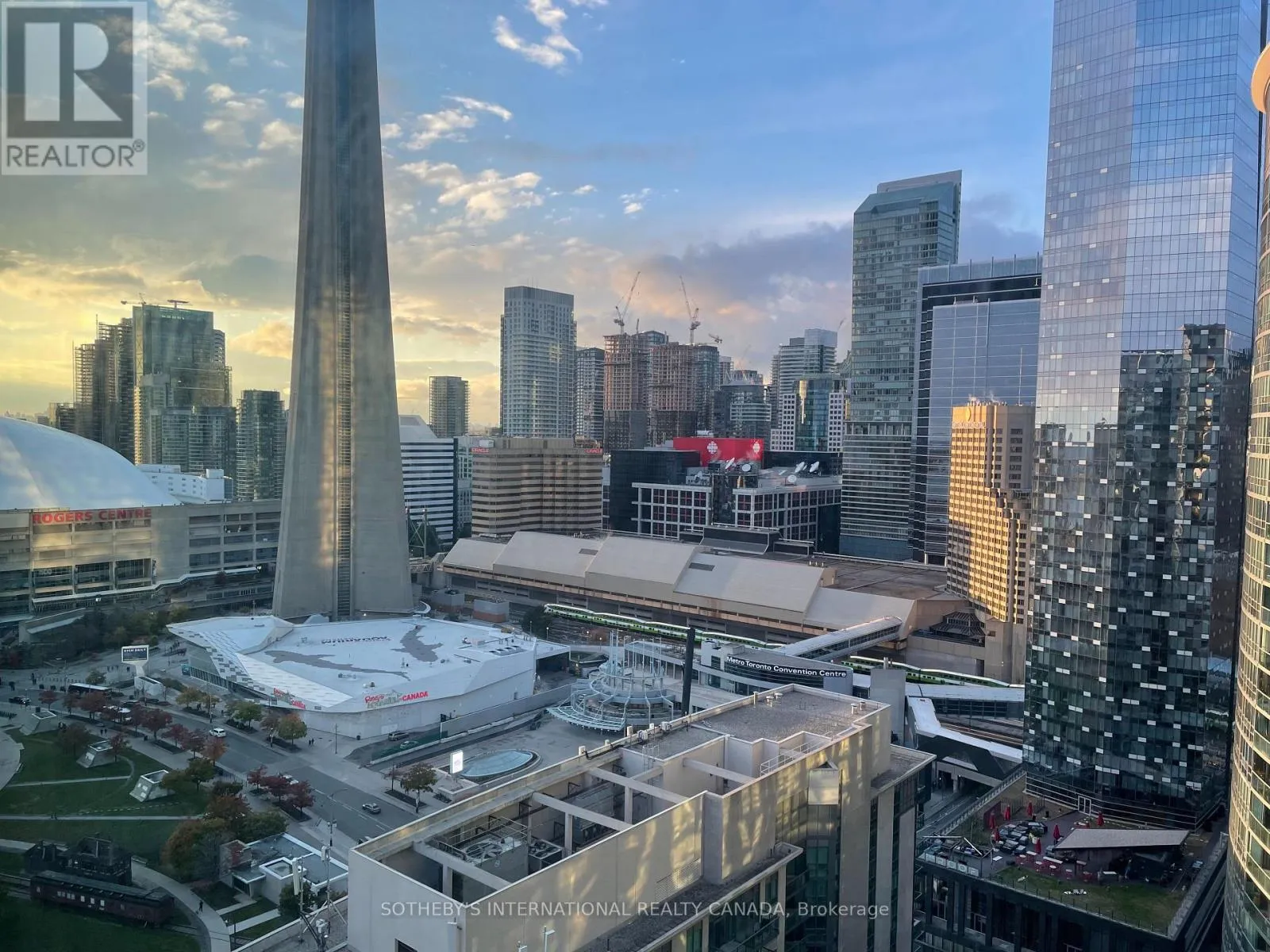 Lower Simcoe & Grand Trunk Downtown Executive Living: This executive one-bedroom plus den unit offers stunning views of the city skyline and the CN Tower from ahigh floor, providing an abundance of natural light. The spacious and functional floor plan, which includes a separate den, is perfect for a home office or extra living space. The building provides a range of amenities, including an exercise room, indoor pool, games room, and guest suites. There is also a BBQ garden/deck, lounge, and a basketball court Located in the heart of downtown Toronto, this property is within a five-minute walk of major attractions and conveniences, including the Scotiabank Arena, Union Station, grocery stores, and a variety of restaurants. A storage locker is also included. (id:27476)