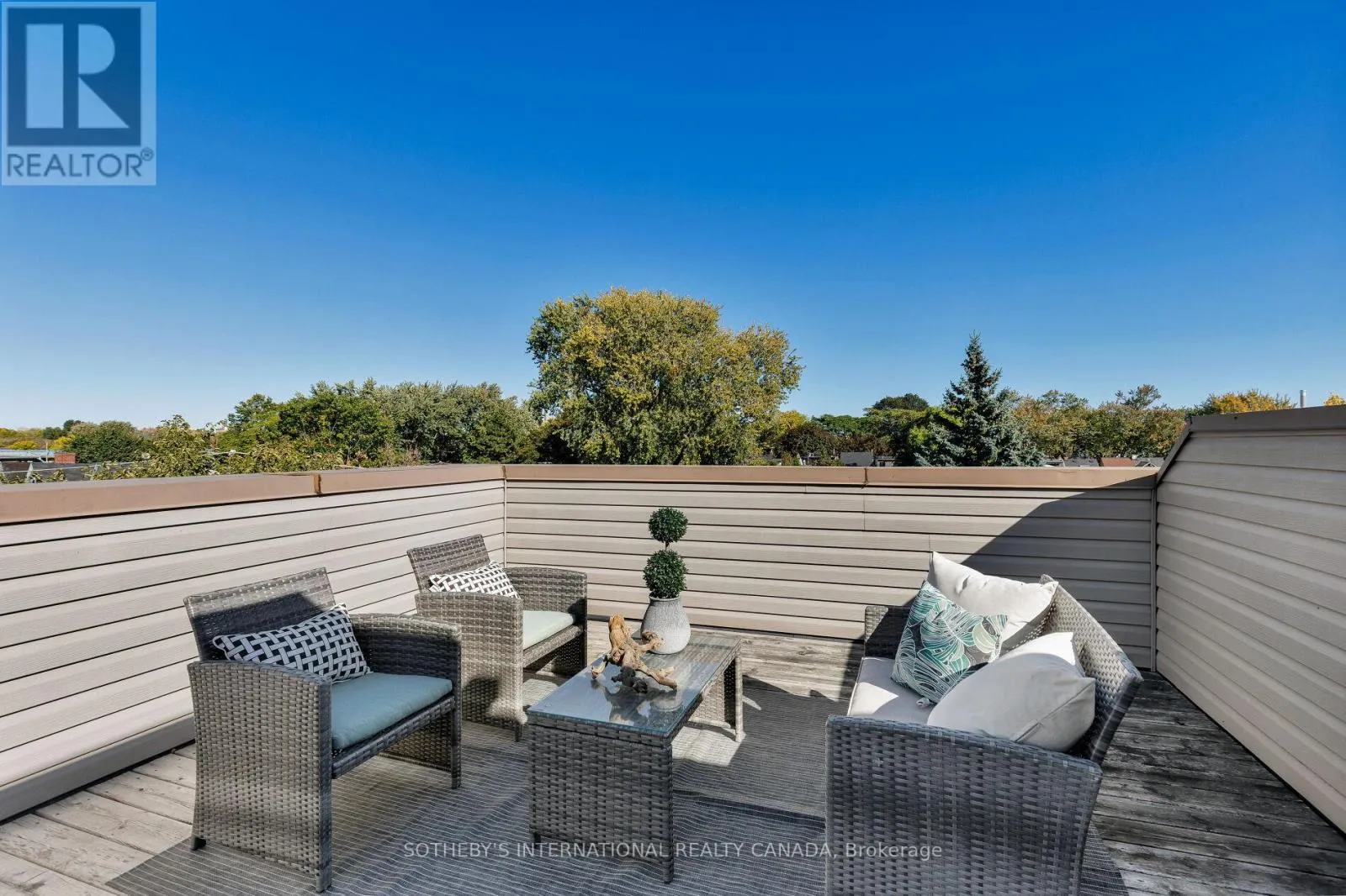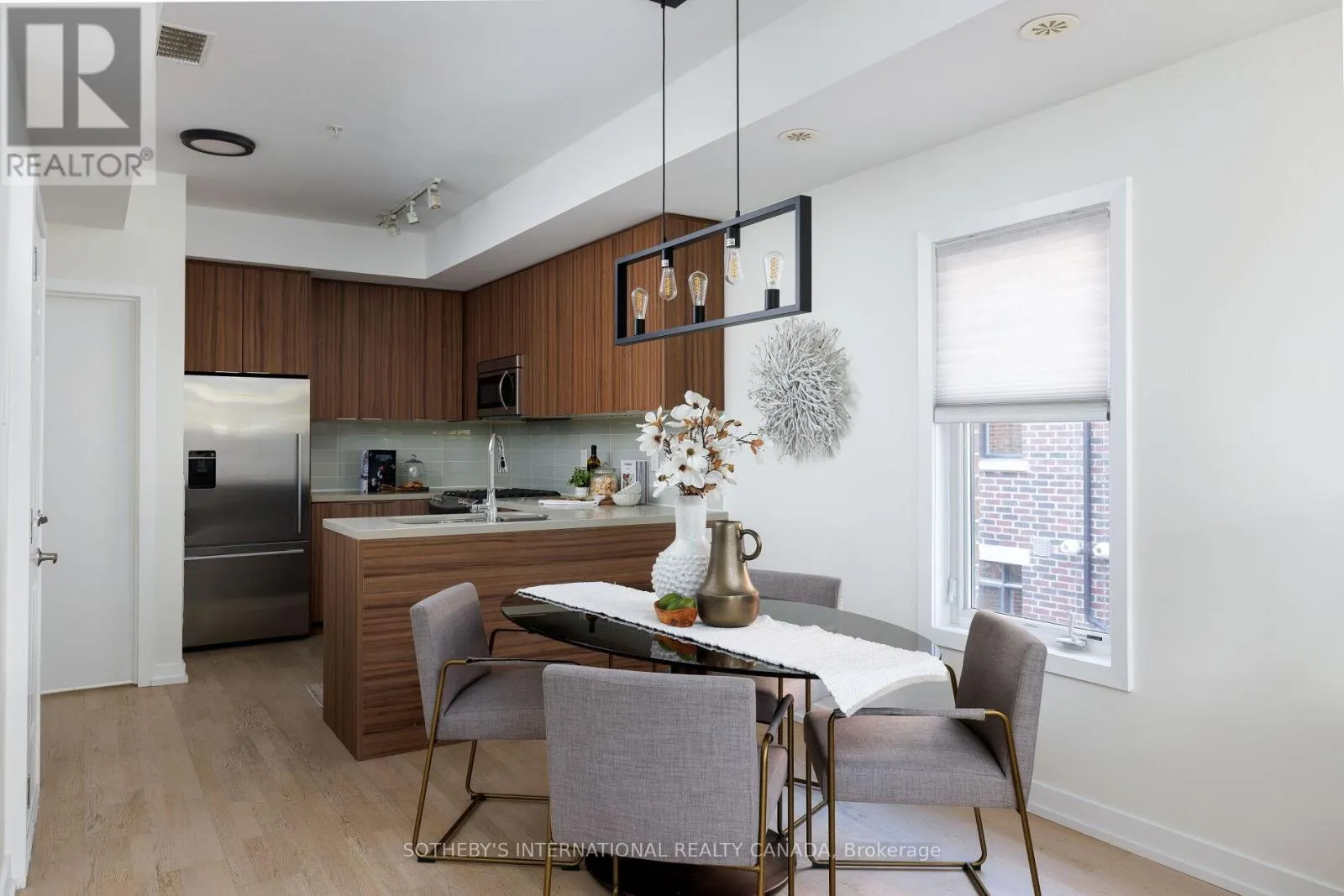 Broadview and Queen Stunning Brownstone walk-up in the heart of family friendly Leslieville, blends the timeless charm of a classic townhouse with the sleek comfort of modern design. Enjoy direct street access from Broadview and your own expansive rooftop terrace perfect for morning coffee or sunset gatherings with panoramic city views and all day sun. Inside, a functional yet stylish layout with beautiful natural light beaming into the wide floor plan, two spacious bedrooms and two elegant washrooms. The luxury kitchen dazzles with high-end Fisher & Paykel appliances, including a fridge with built-in water dispenser. Every utility is owned no rentals, no worries. Warm character meets urban sophistication with arched windows, and more natural light. Nestled in one of Toronto's liveliest neighbourhoods, you're steps from top restaurants, trendy shops, cozy cafés, nightlife hotspots...the Seller recommends The Comrade as the best neighbourhood Bar. Boutique grocers in the area include Rowe Farms, The Source and Hooked BC Fish Monger. This is a Pet friendly complex next door to a city park and easy to get to one of Toronto's most iconic, Riverdale Park. This is downtown living at it's best but with less congestion and effortless access for getting around the rest of the city. (id:27476)
