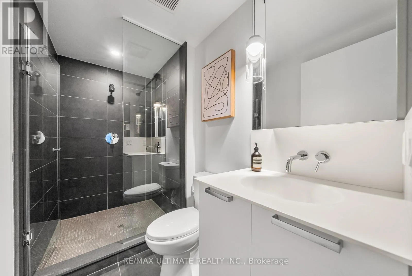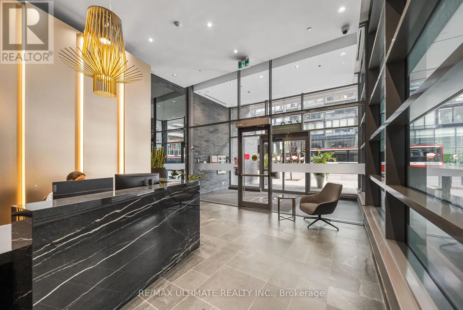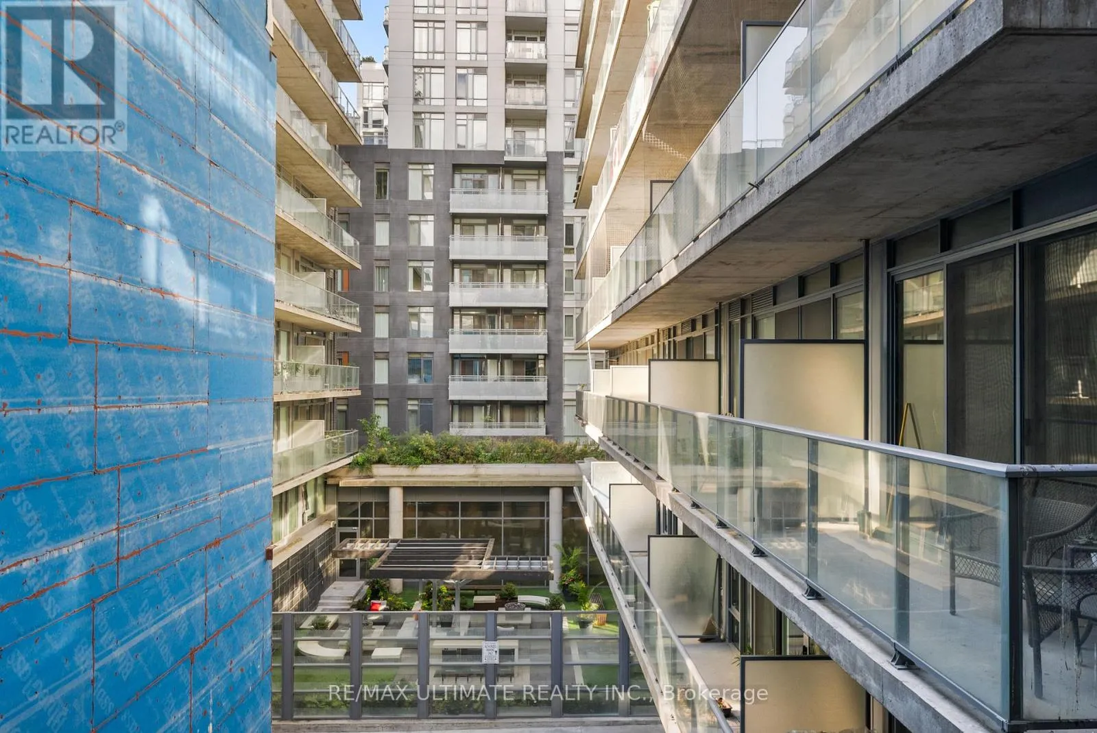King ST. W / Bathurst Experience boutique modern urban living in this stunning 1,086 sq ft 2 bedroom - 2 bathroom suite in the heart of King West. 991 sq ft of meticulously designed interior space and a generous 95 sq ft balcony. Designed with 9-ft exposed concrete ceilings and floor-to-ceiling windows, this home blends modern style with functional comfort. The open-concept kitchen includes an extra-wide marble-topped island, stainless steel appliances, and ample storage ideal for everyday cooking and effortless entertaining. The open-concept living and dining area extends seamlessly to a bright balcony, perfect for outdoor dining or unwinding with a view over the courtyard. The king-sized primary suite offers a peaceful retreat with a walk-in closet and a sleek glass-enclosed en-suite shower. The second bedroom provides flexibility for guests, a home office, or creative space, and is complemented by a full second bathroom. Additional highlights include in-suite laundry and generous storage throughout. This pet- friendly building offers premium amenities including a 24-hour concierge, a fully equipped gym, and an inner courtyard green space. 1 priority parking spot is included. Located steps from the King Streetcar, the upcoming Ontario Line, parks, restaurants, cafés, galleries, and shops, this is a rare opportunity to own a split layout condo in one of Toronto's most vibrant neighbourhoods. (id:27476)