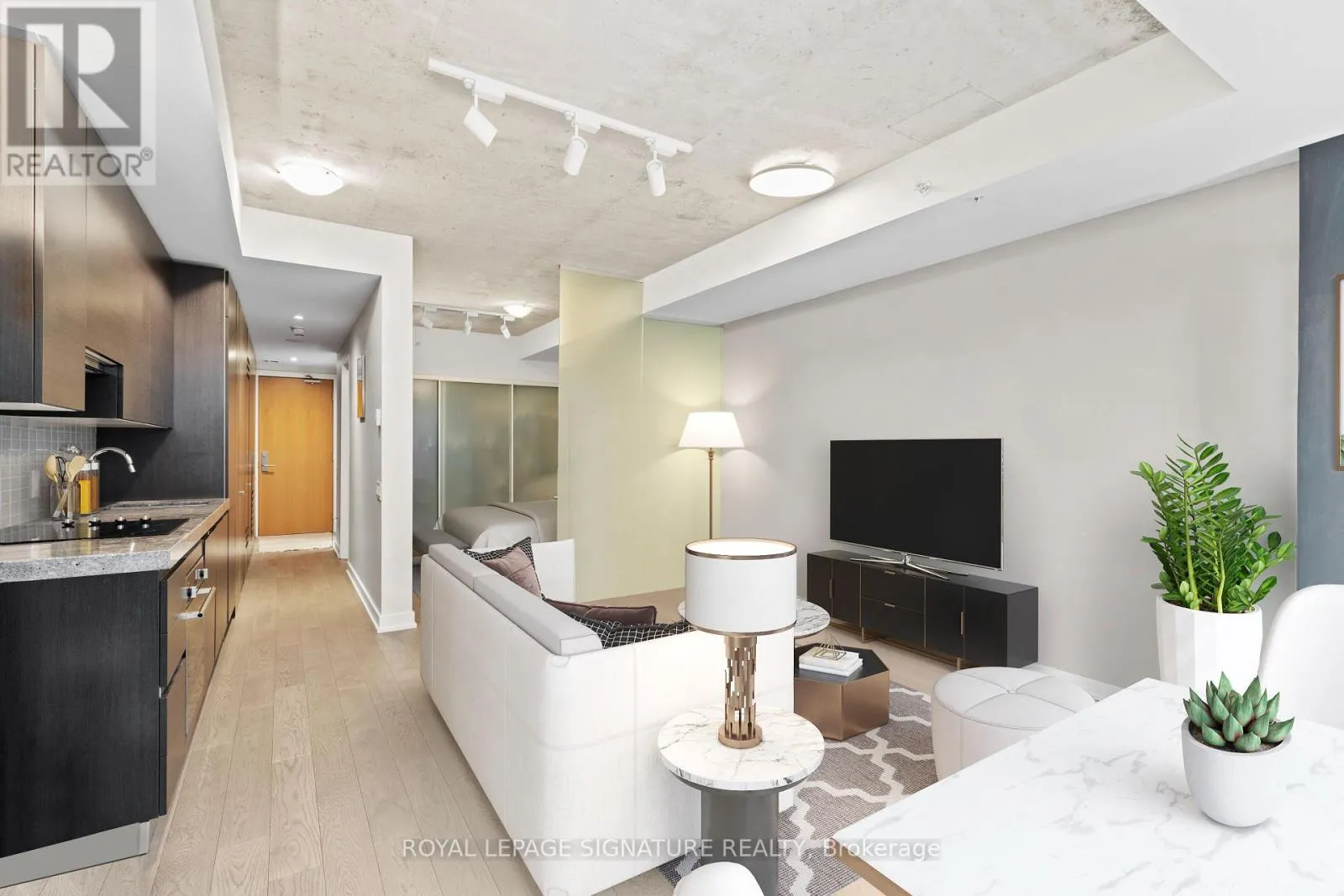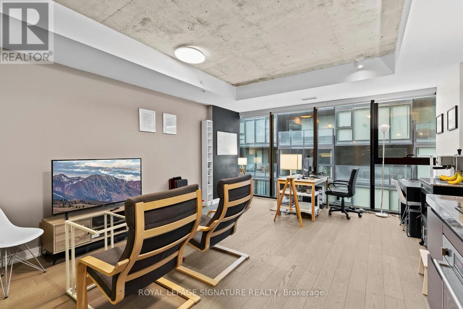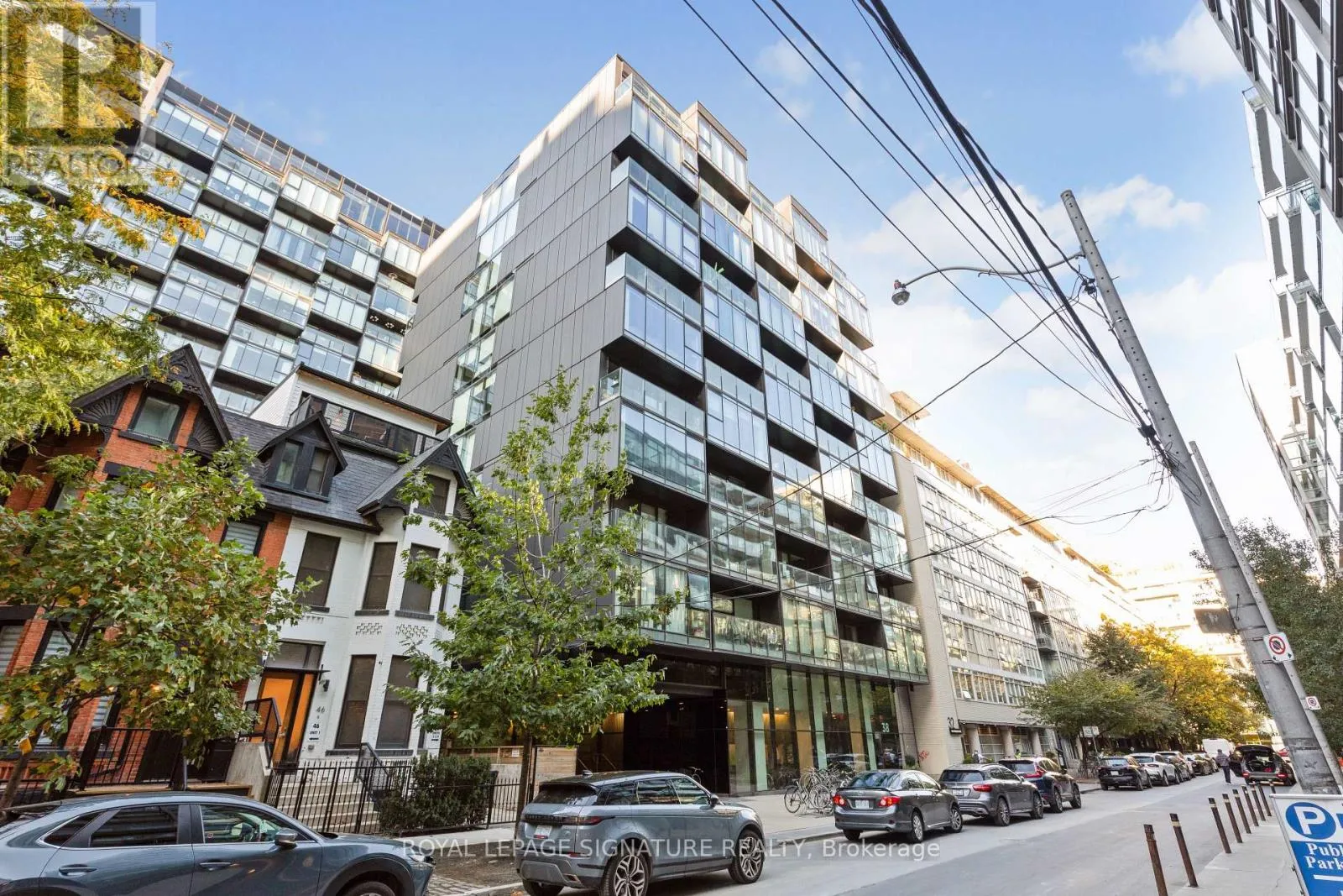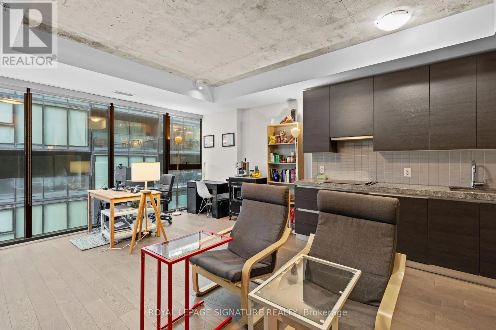 King & Bathurst Welcome to Unit 406 at the Thompson Residences, ideally situated in the heart of Toronto's iconic King West neighbourhood. This boutique one-bedroom suite is the perfect opportunity for a first-time buyer or investor looking for style, space, and location. One of the largest one-bedroom layouts in the building, it offers 583 square feet of functional living space with floor-to-ceiling windows and custom coverings, a sleek Scavolini kitchen with Euro-style appliances, exposed 9-foot concrete ceilings, beautiful engineered hardwood flooring, and a spa-inspired bathroom with a rain shower. Ample in-suite storage and a dedicated locker provide practical convenience. The open-concept living and dining area is ideal for both everyday living and entertaining. Steps to top restaurants, shopping, parks, and transit, this suite is perfectly positioned to experience everything Toronto has to offer. Priced to sell, don't miss this opportunity! (id:27476)