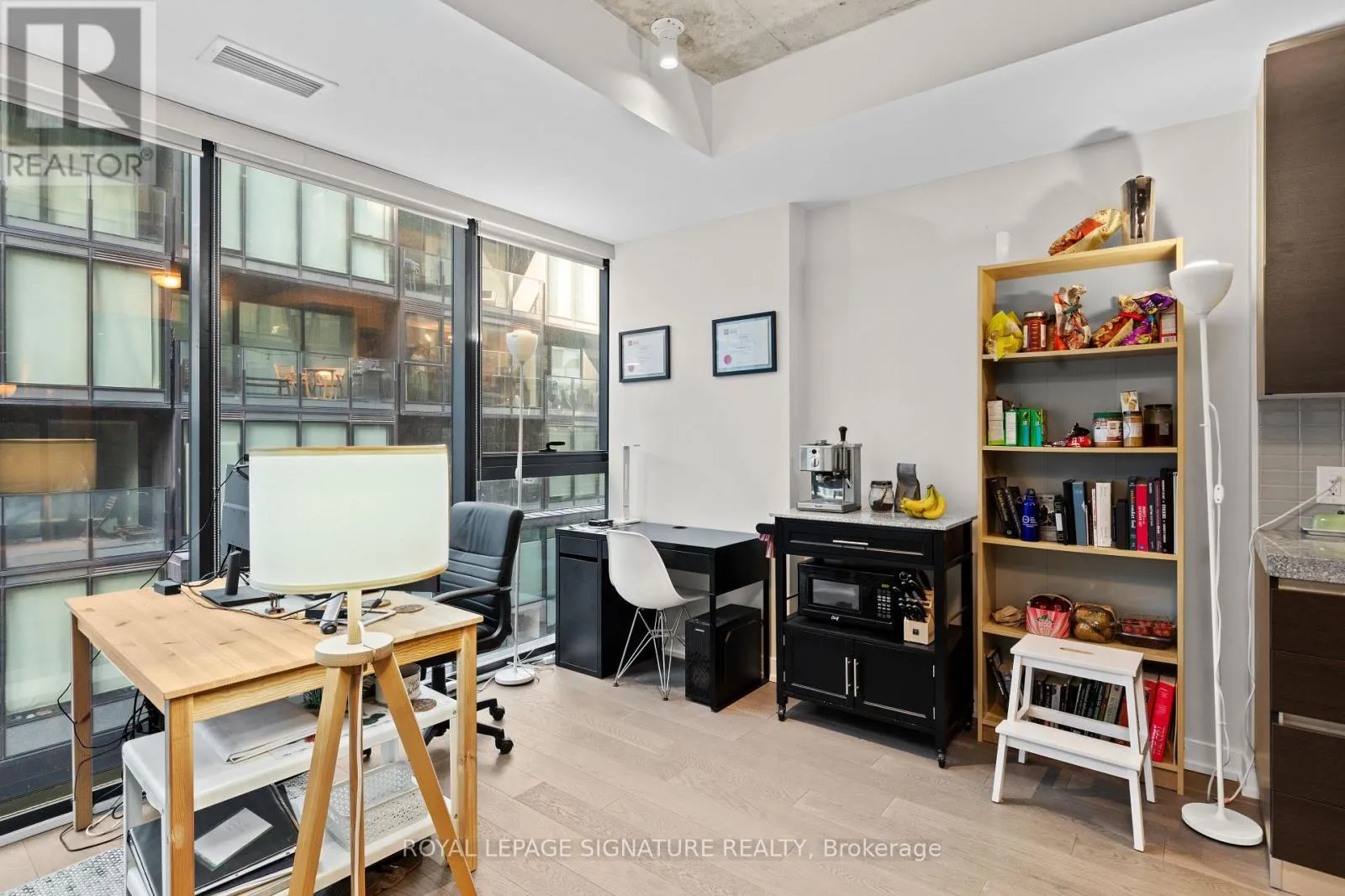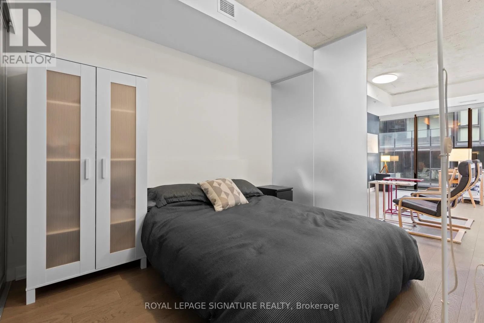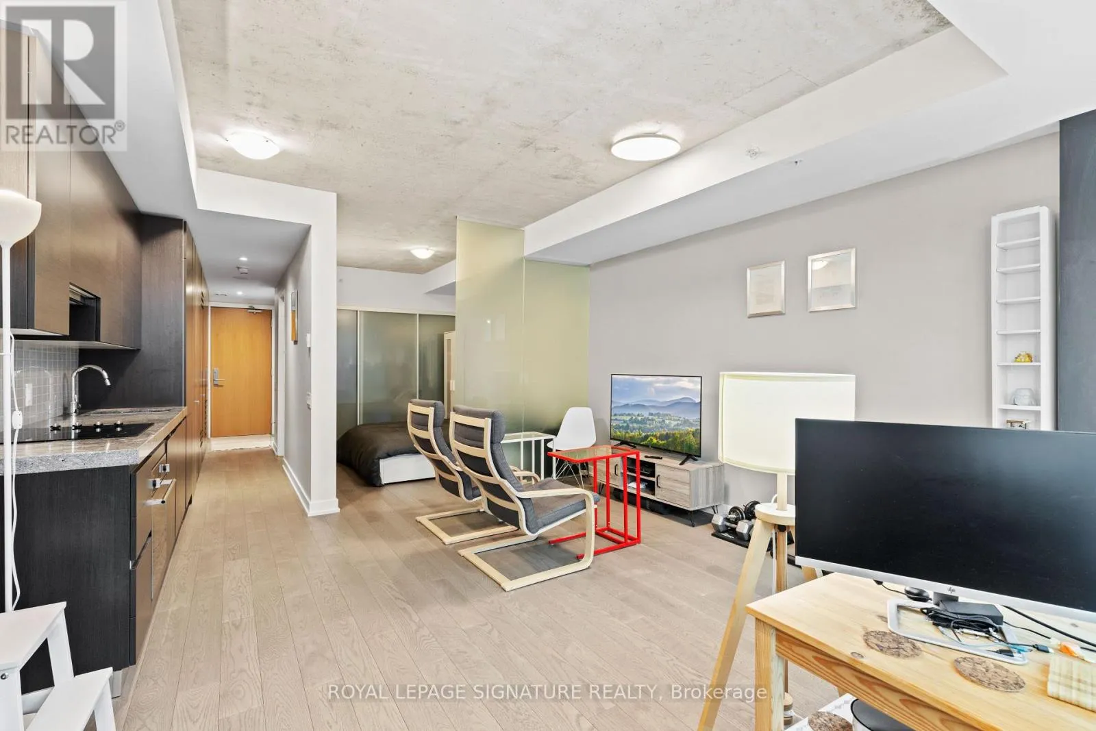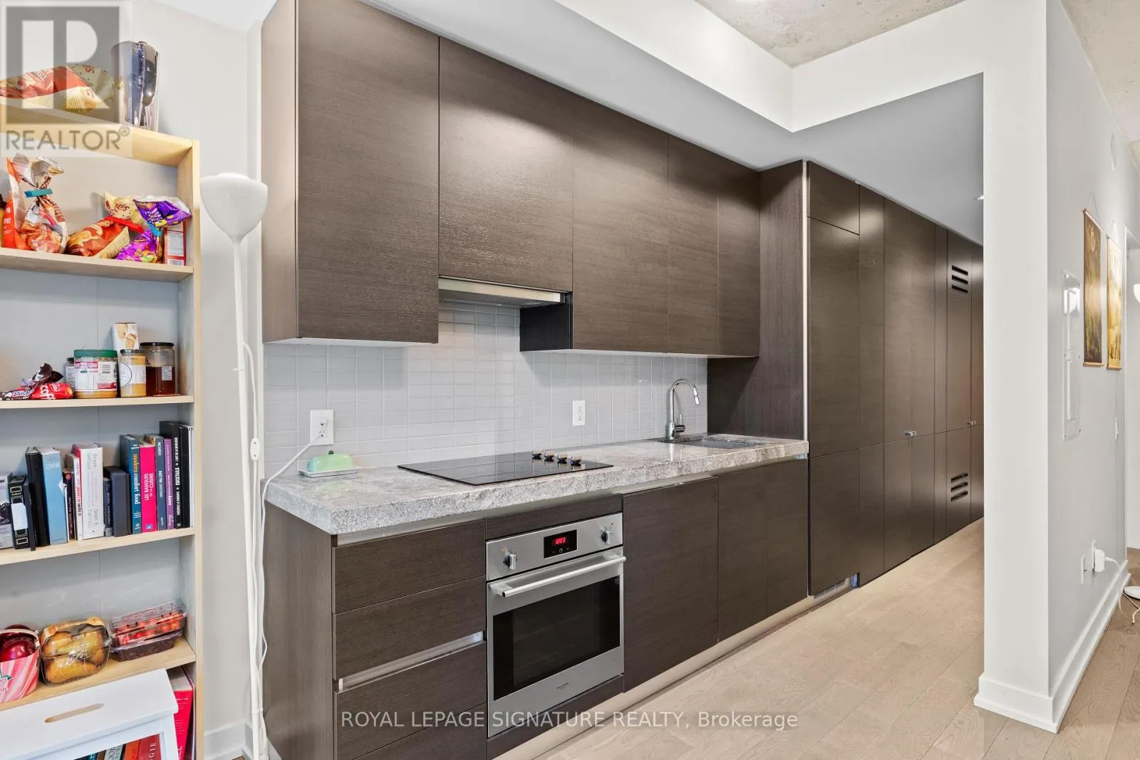 King & Bathurst Welcome to Unit 406 at the Thompson Residences, ideally situated in the heart of Toronto's iconic King West neighbourhood. This boutique one-bedroom suite is the perfect opportunity for a first-time buyer or investor looking for style, space, and location. One of the largest one-bedroom layouts in the building, it offers 583 square feet of functional living space with floor-to-ceiling windows and custom coverings, a sleek Scavolini kitchen with Euro-style appliances, exposed 9-foot concrete ceilings, beautiful engineered hardwood flooring, and a spa-inspired bathroom with a rain shower. Ample in-suite storage and a dedicated locker provide practical convenience. The open-concept living and dining area is ideal for both everyday living and entertaining. Steps to top restaurants, shopping, parks, and transit, this suite is perfectly positioned to experience everything Toronto has to offer. Priced to sell, don't miss this opportunity! (id:27476)